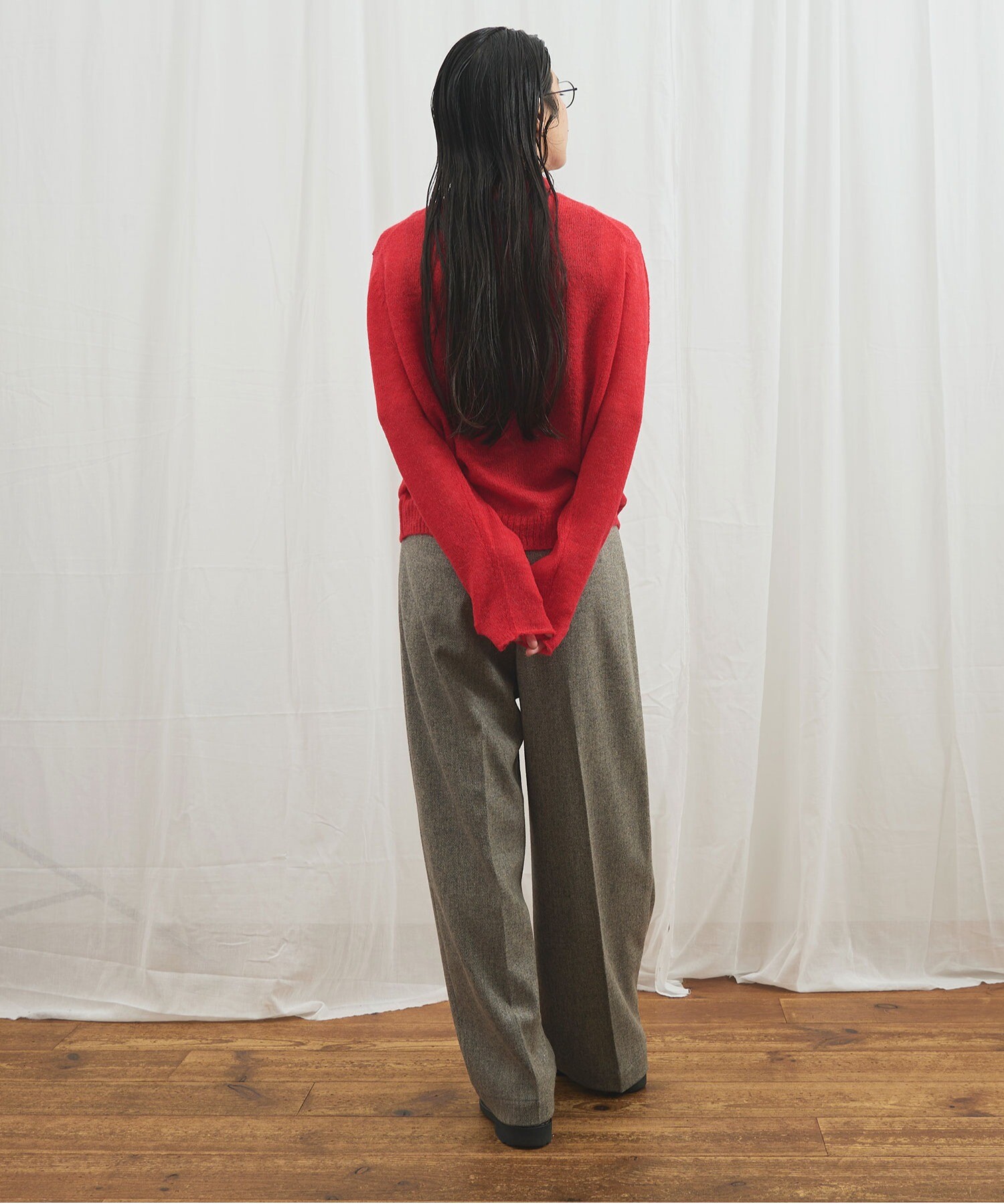 ・この製品は、素材風合いの性質上、着用の際毛羽の細かなもつれが絡み合いピリング(毛玉)が生じやすい為、出来るだけ連続着用は避けて下さい。