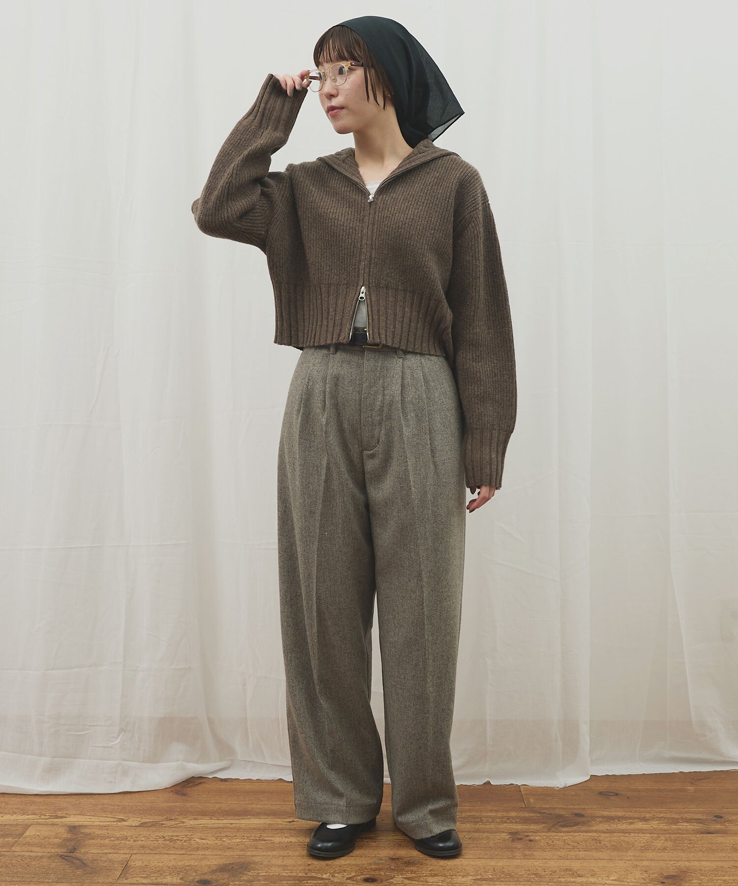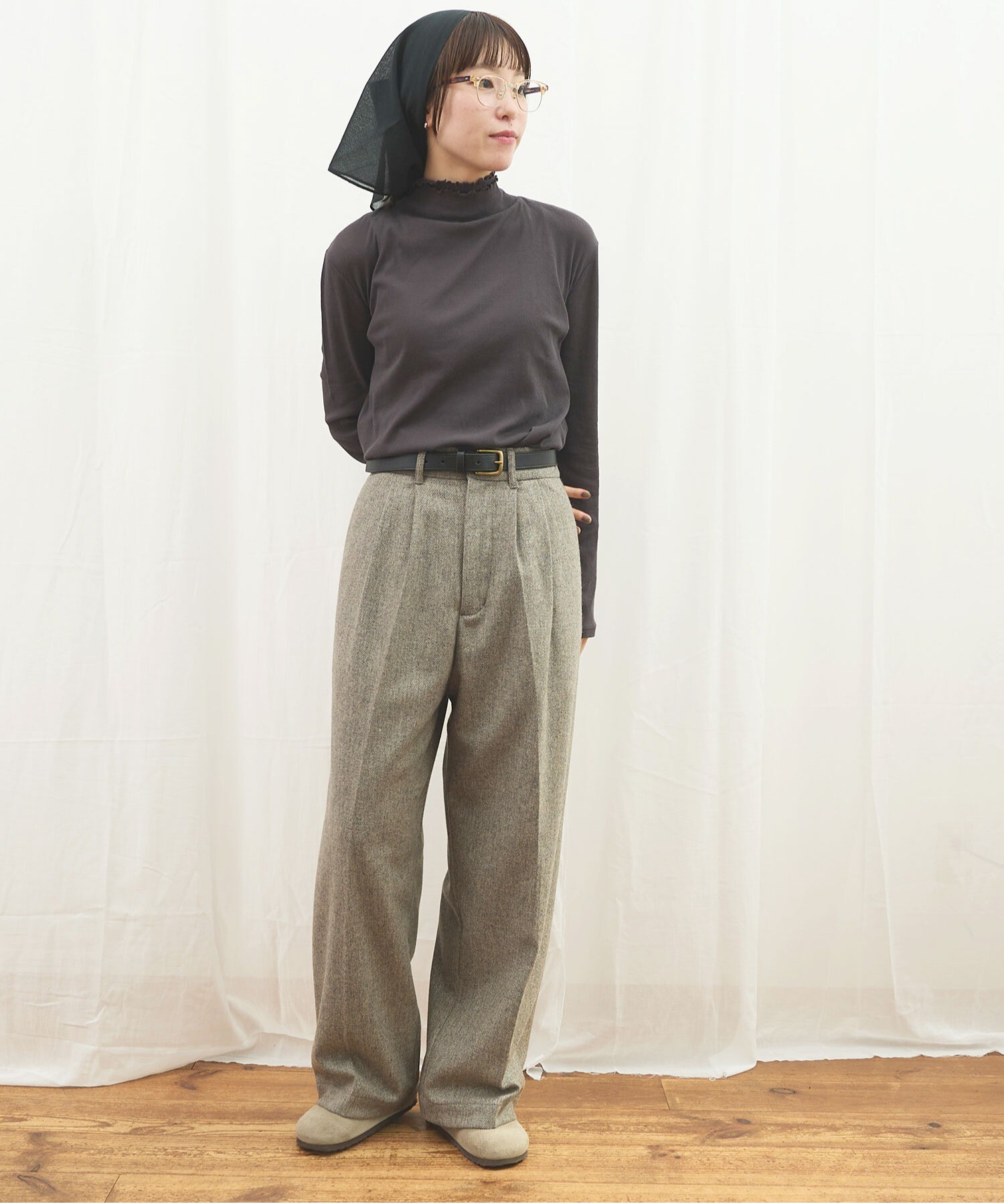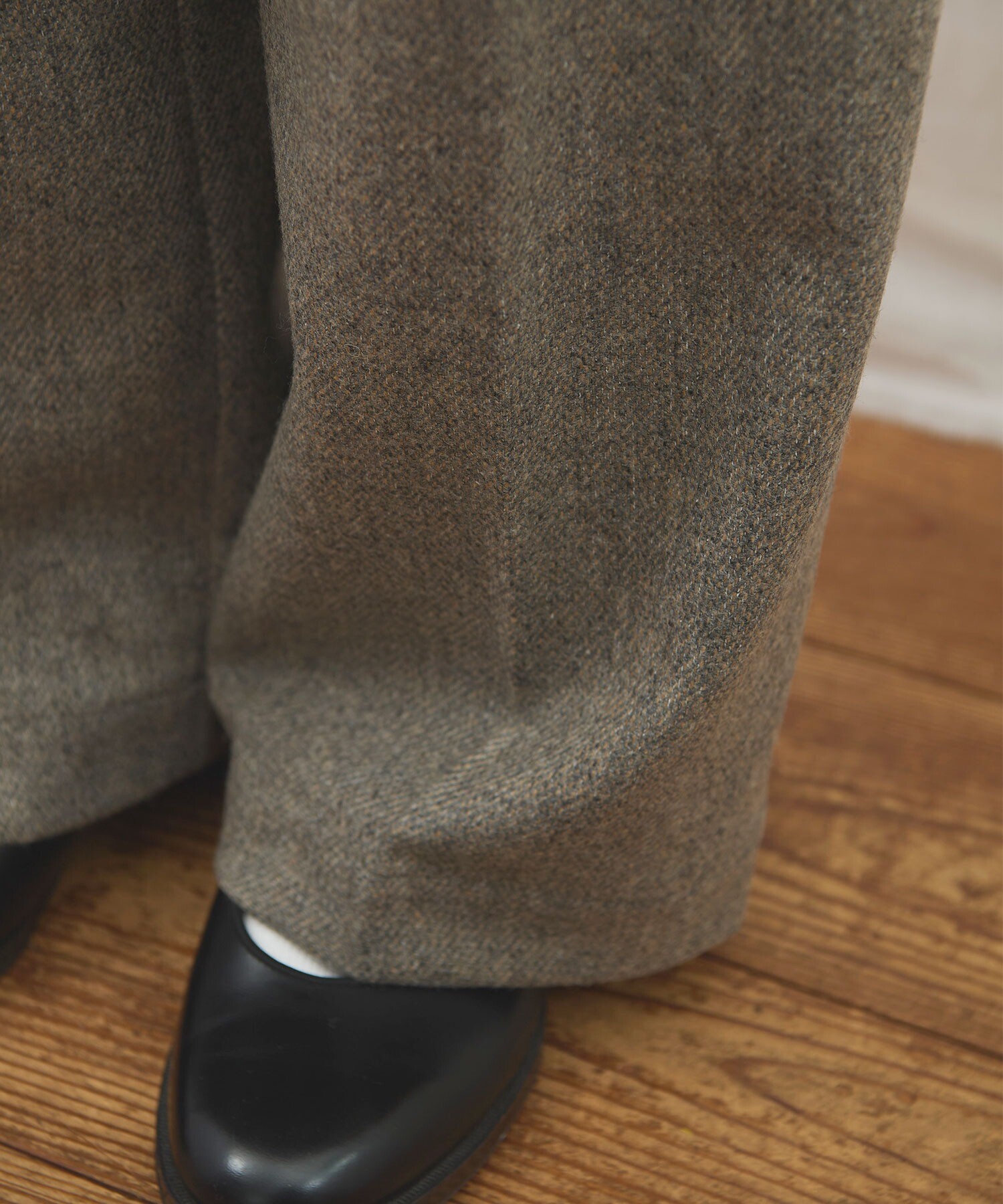 パンツは後ろ姿をすっきりクラシックに仕立て、秋冬の雰囲気を楽しめる1枚。