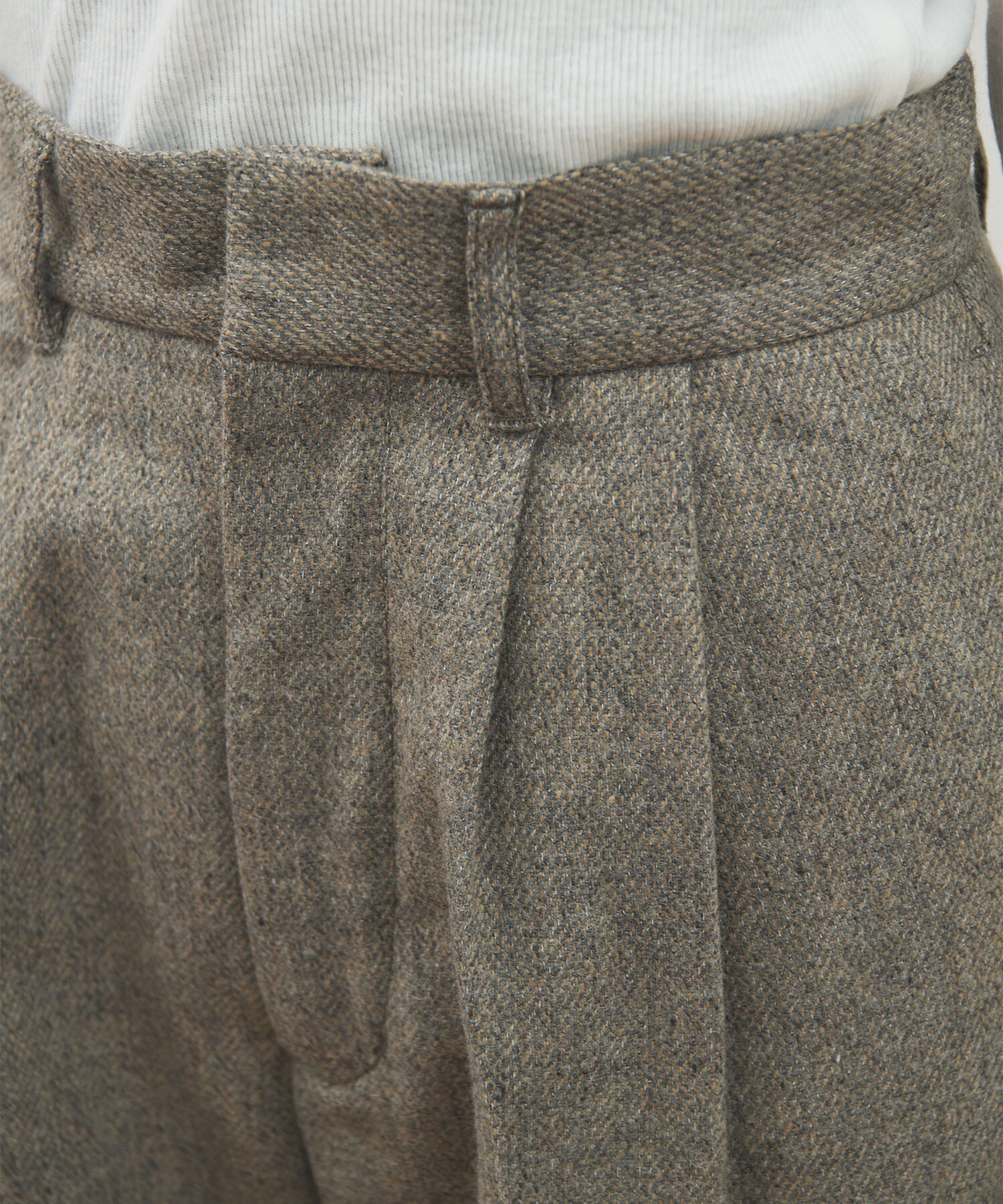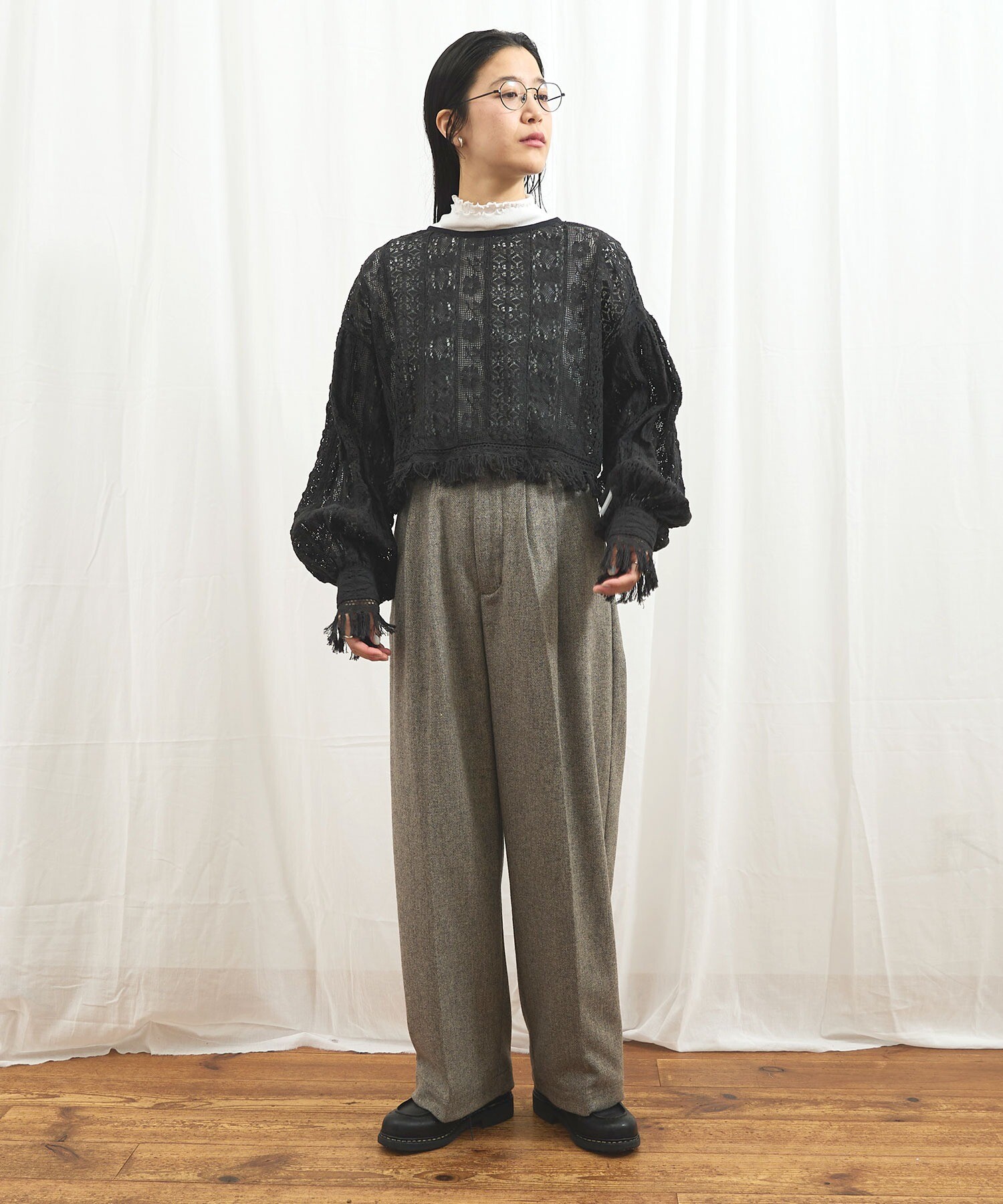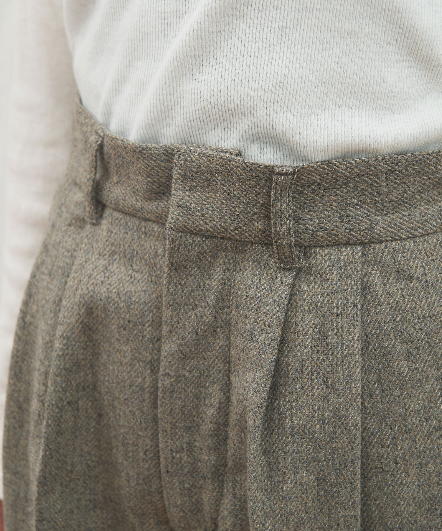 パンツは後ろ姿をすっきりクラシックに仕立て、秋冬の雰囲気を楽しめる1枚。