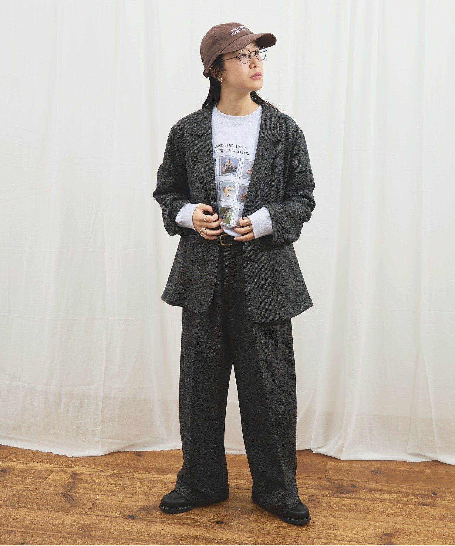 | 素材 | ウール53% , ポリエステル37% ,アクリル6% , ナイロン2% , ポリウレタン1% , レーヨン1% 裏地:ポリエステル100% |