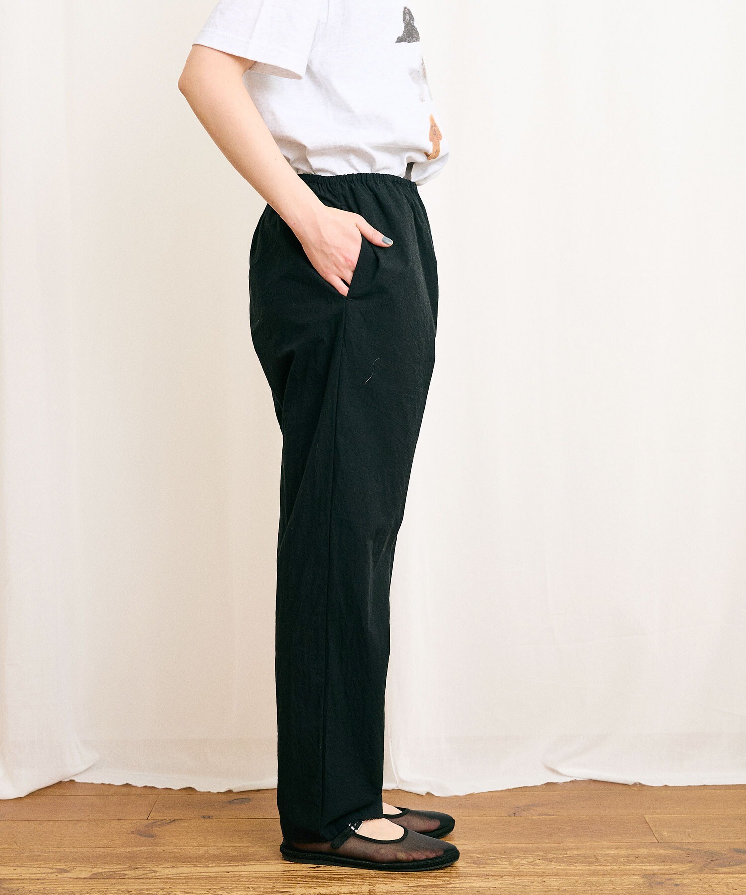 綿素材特有のマットな質感は様々な素材に合わせやすく、静かな存在感のあるアイテムです。