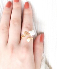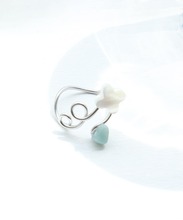 くるくる指にまきつく貝で作ったお花のリング。