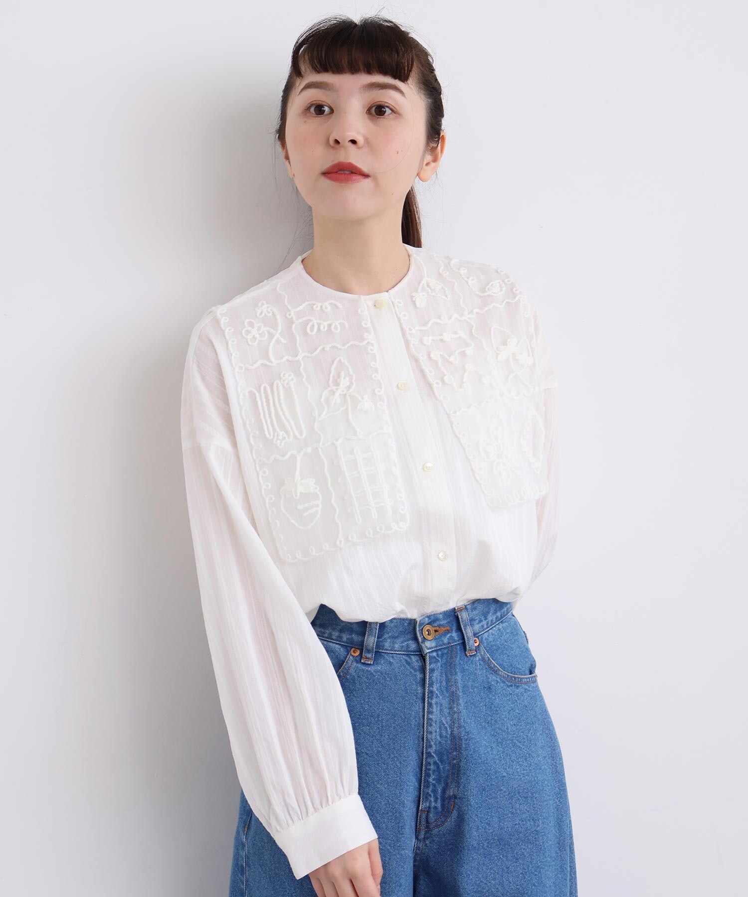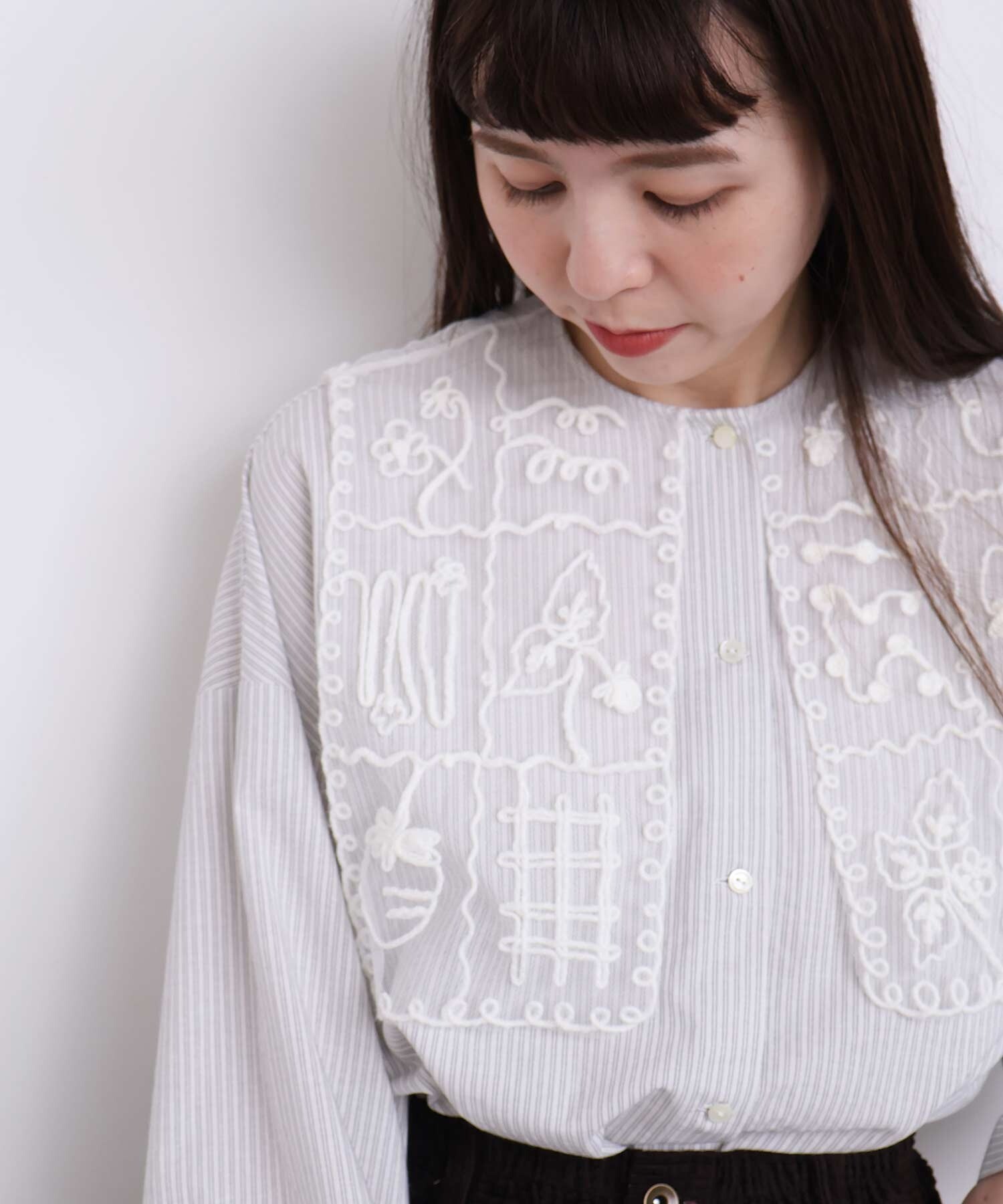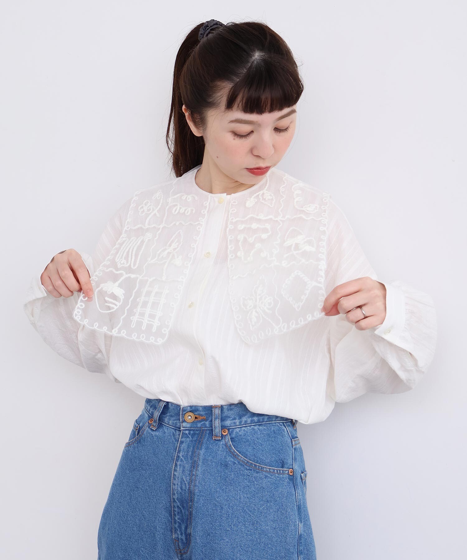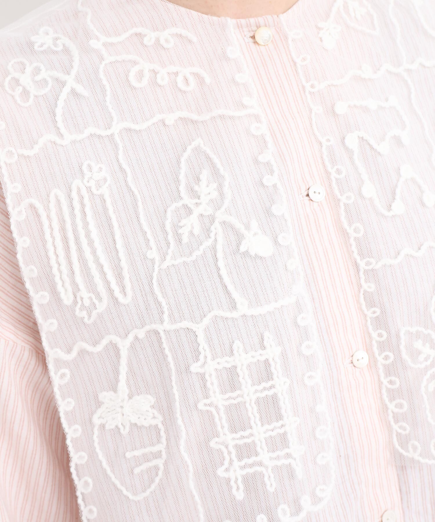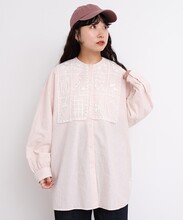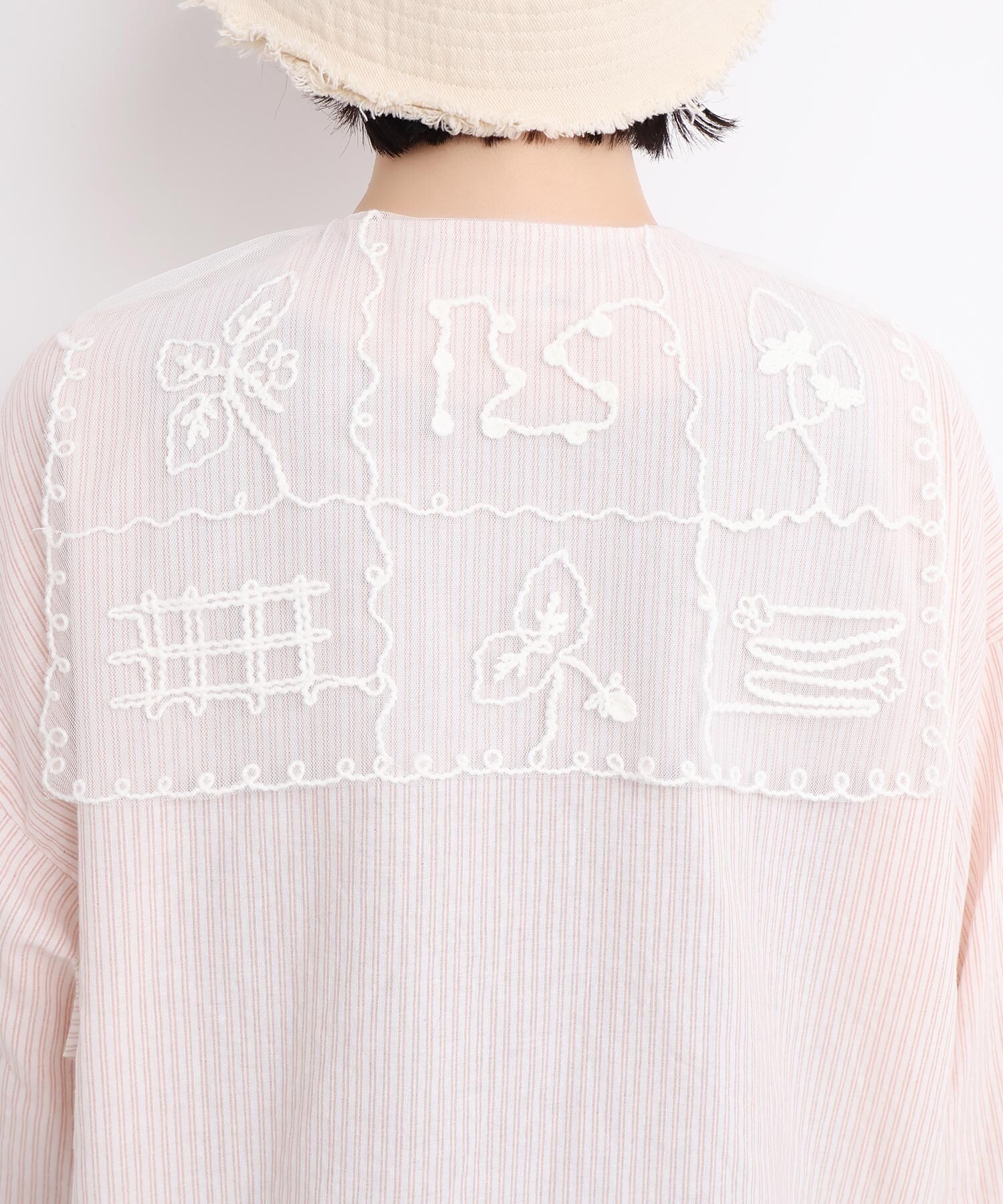 ○いちごコード刺繍 しかく襟チュニックブラウス
