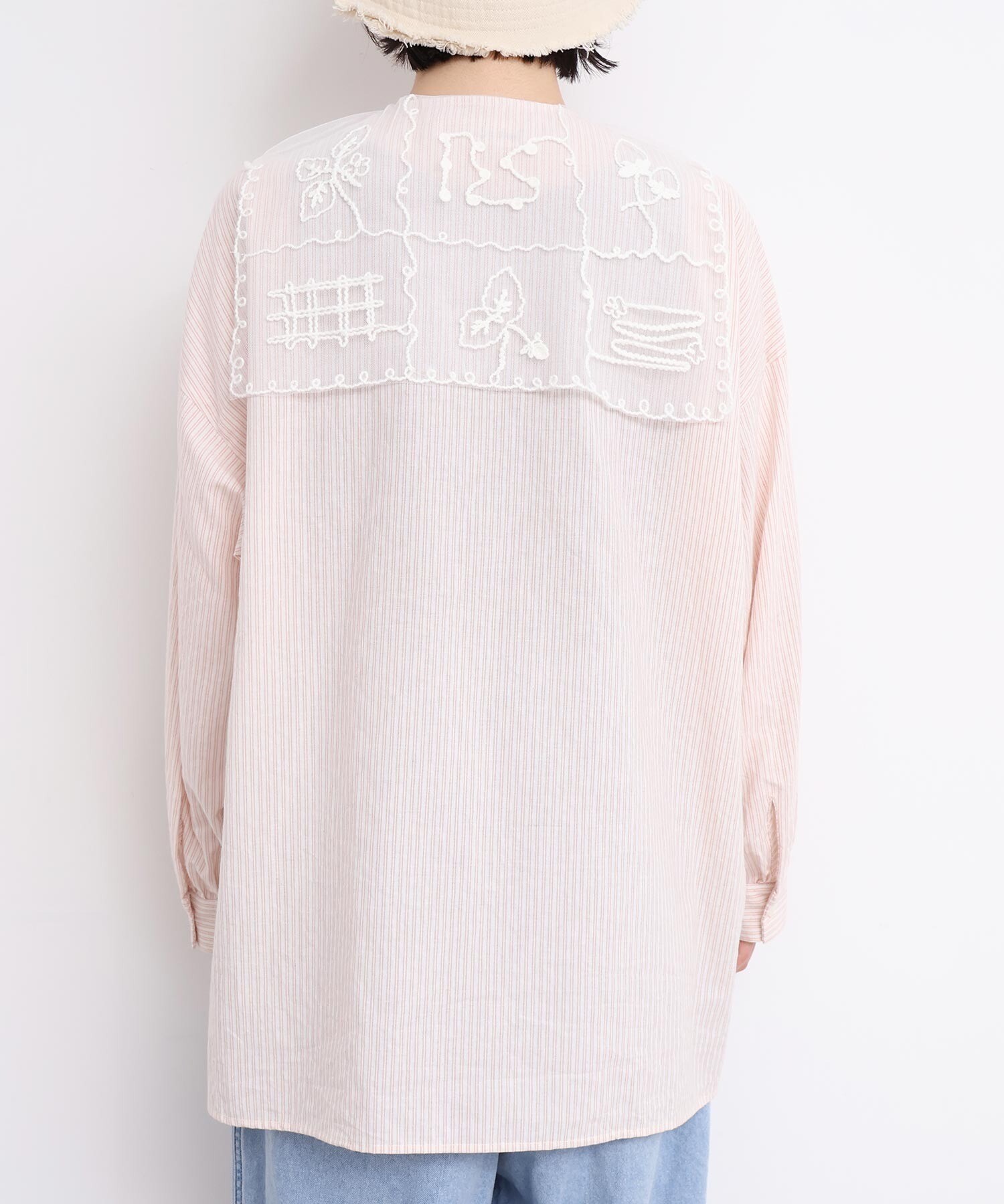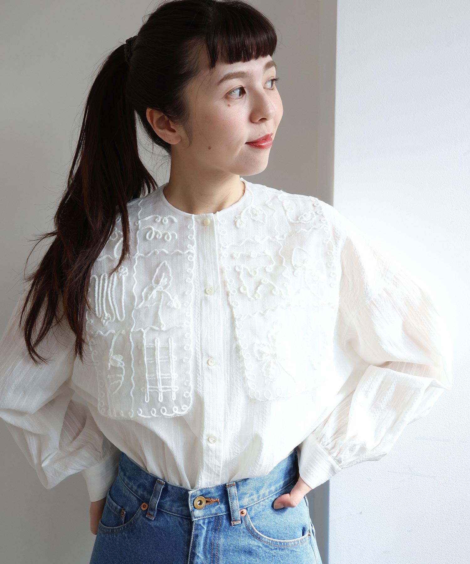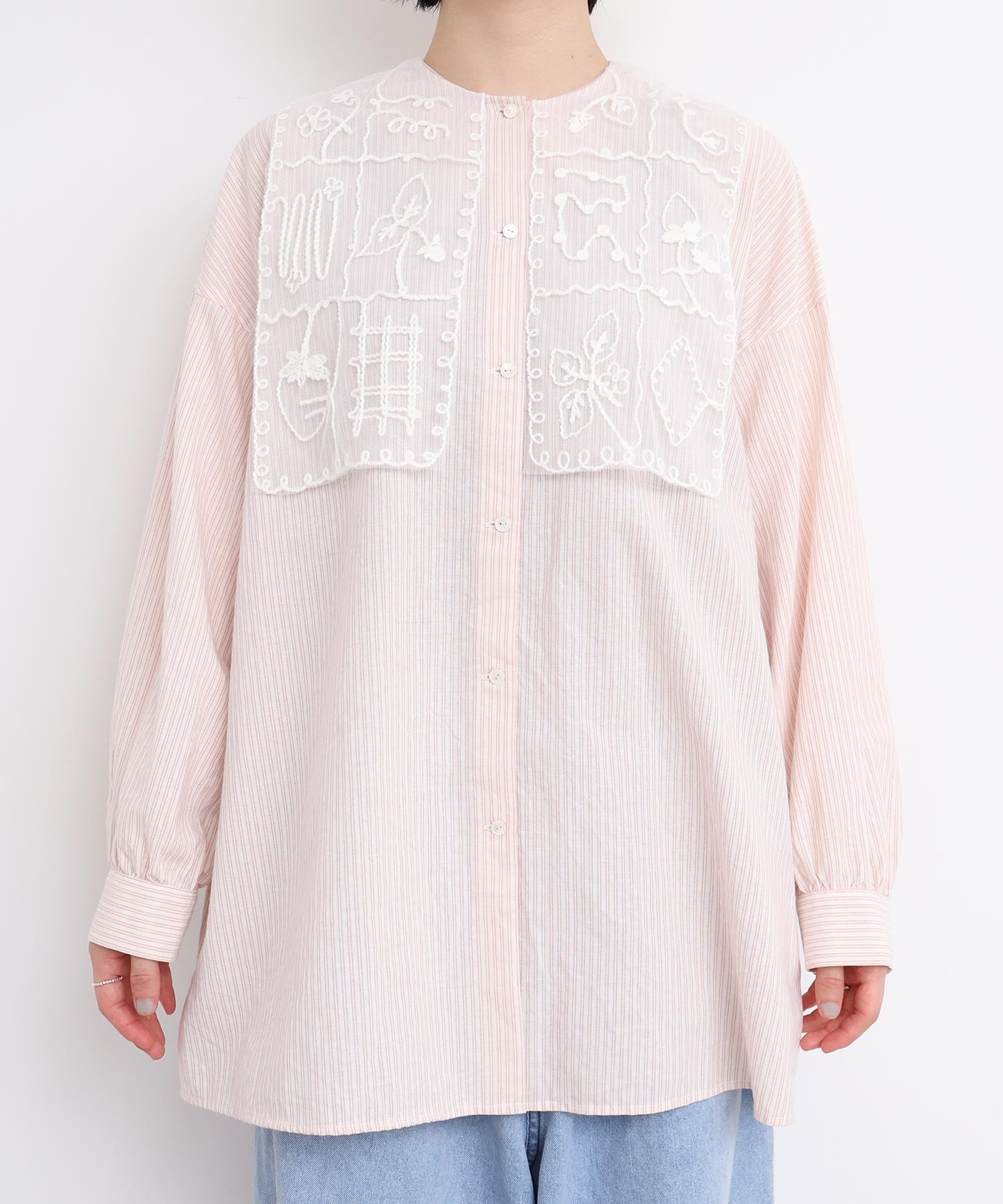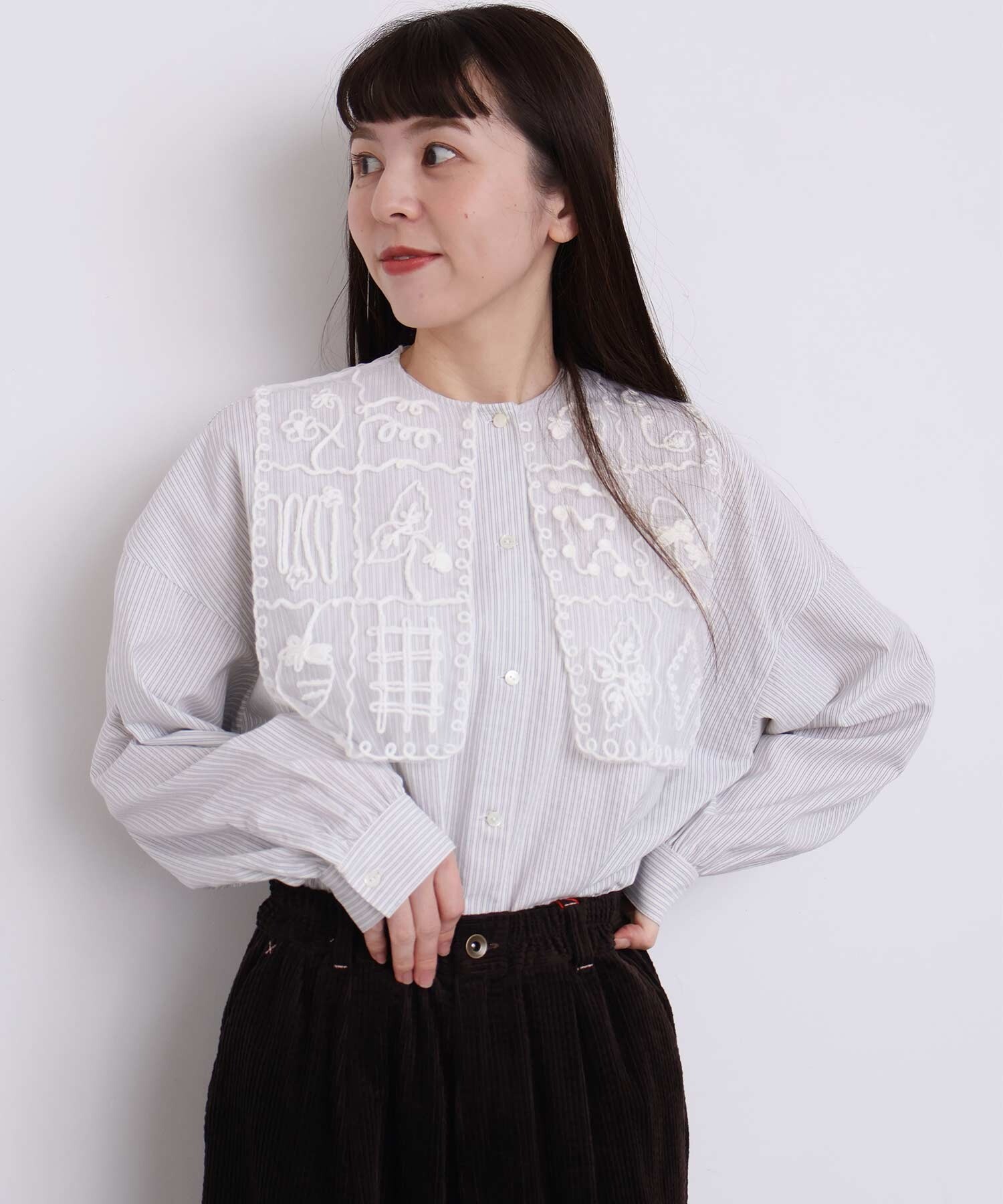 ○いちごコード刺繍 しかく襟チュニックブラウス