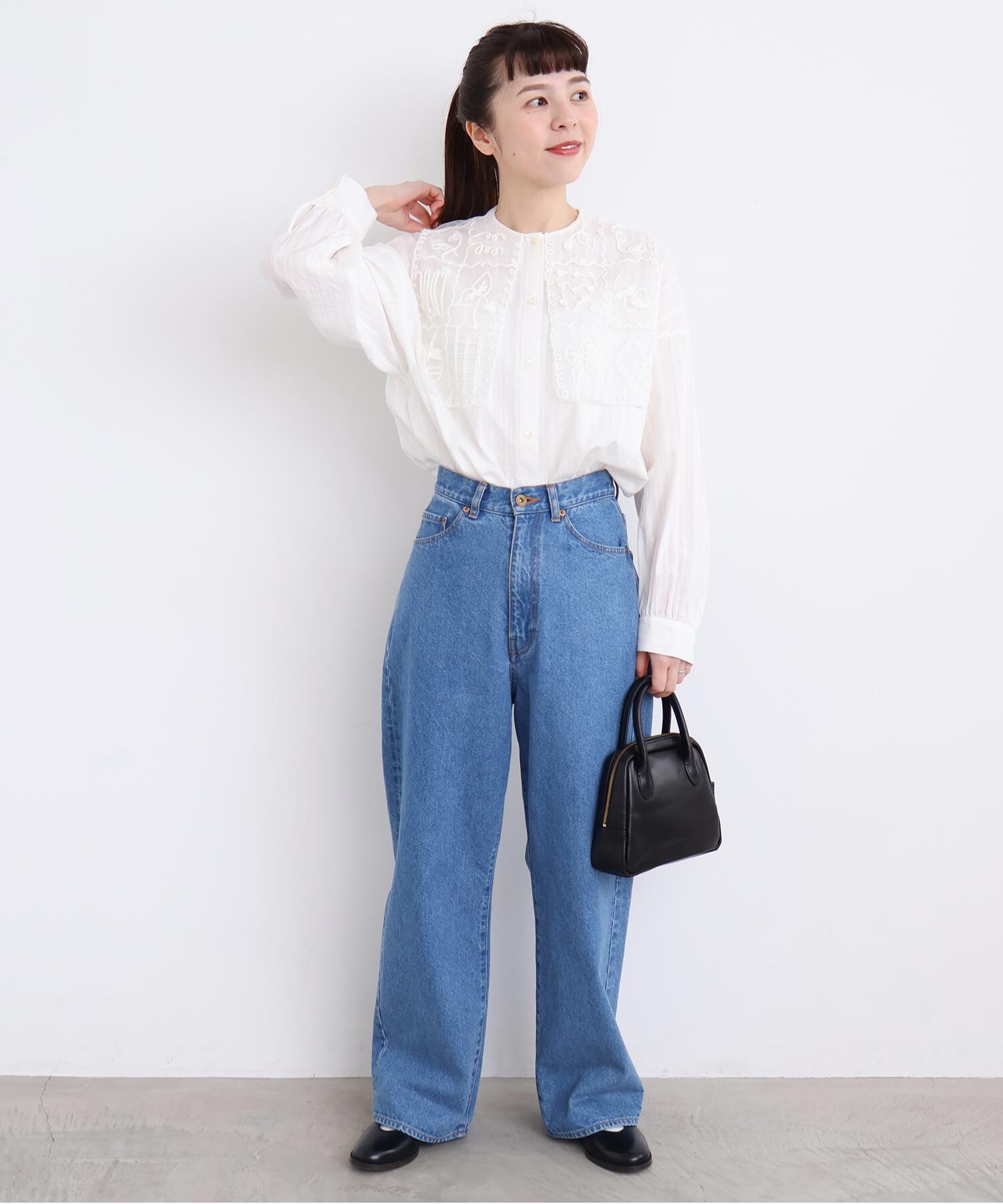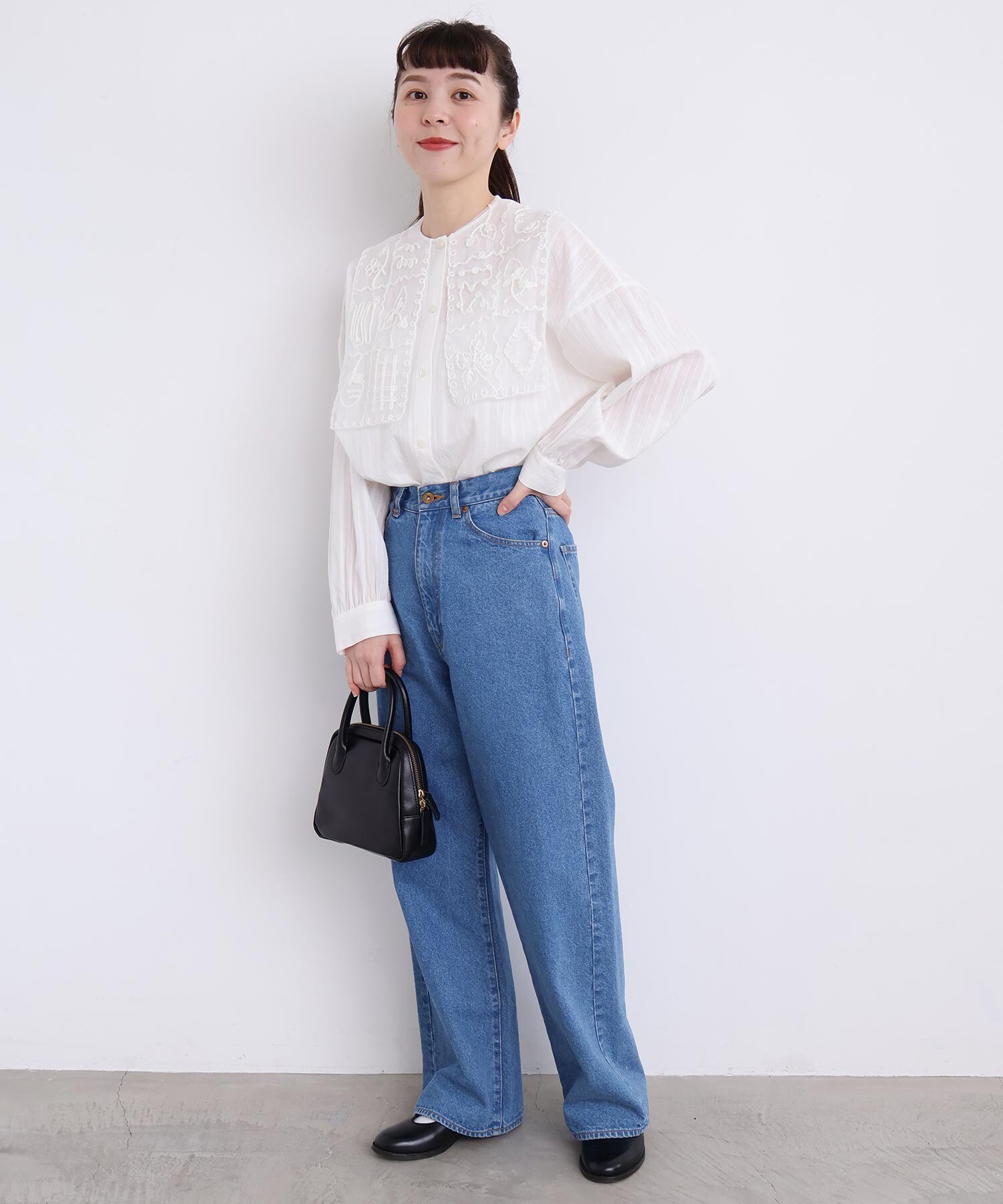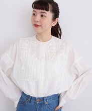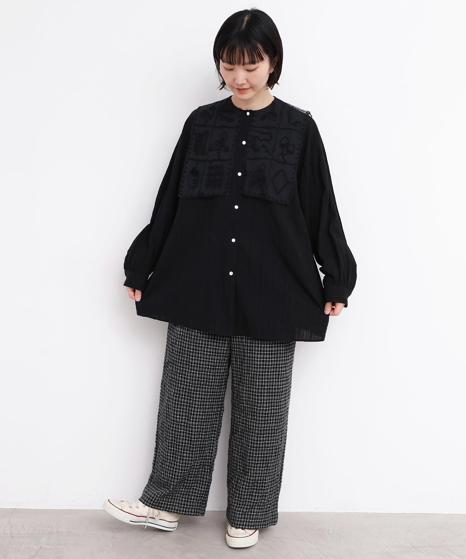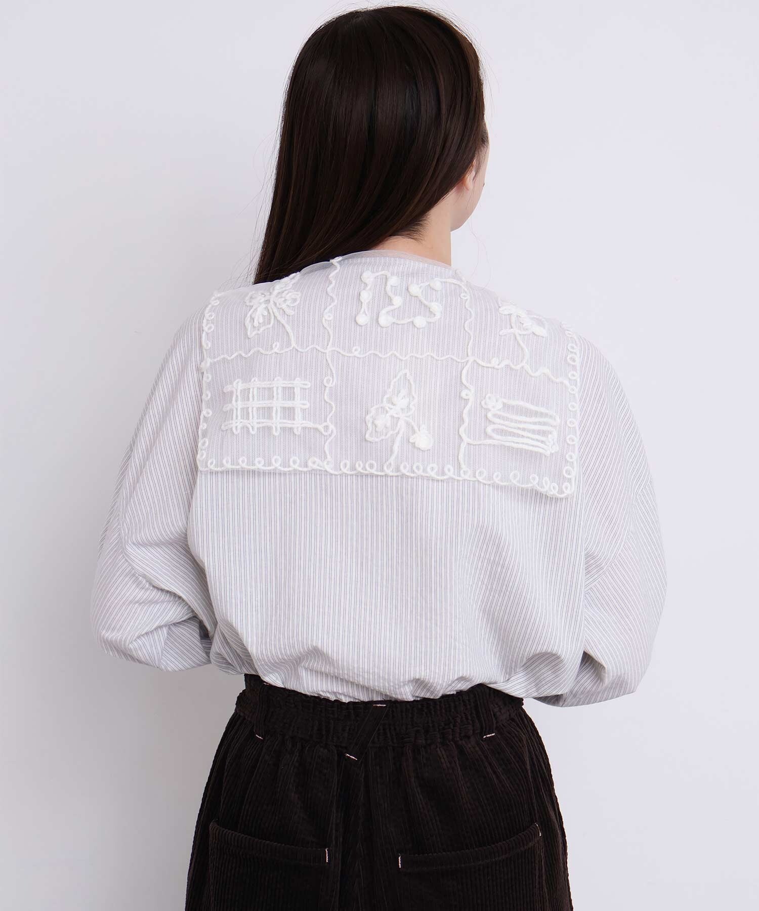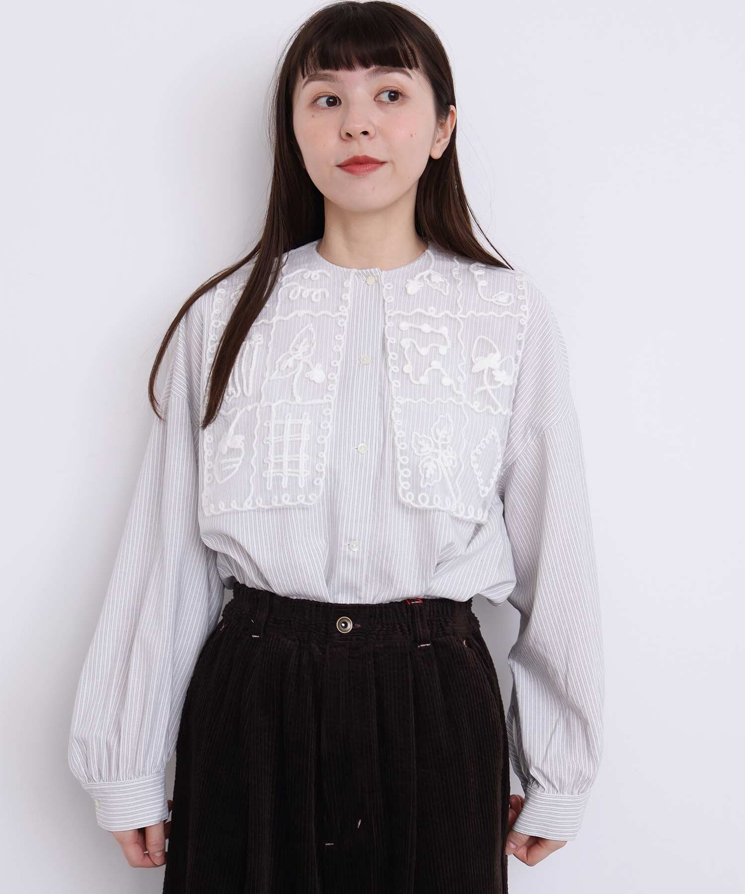 ○いちごコード刺繍 しかく襟チュニックブラウス