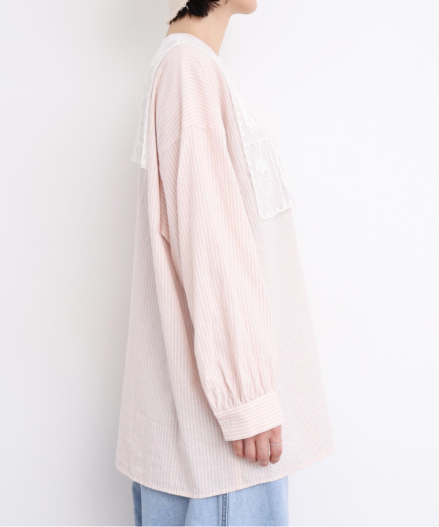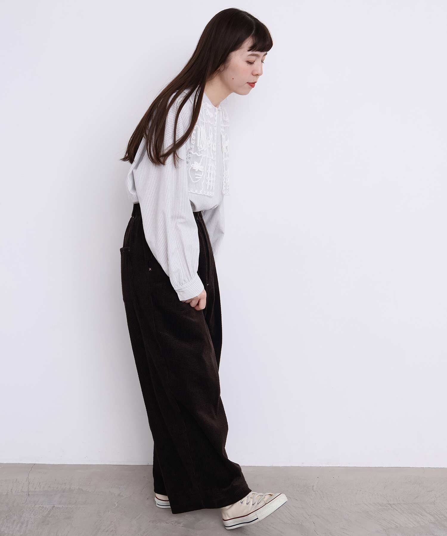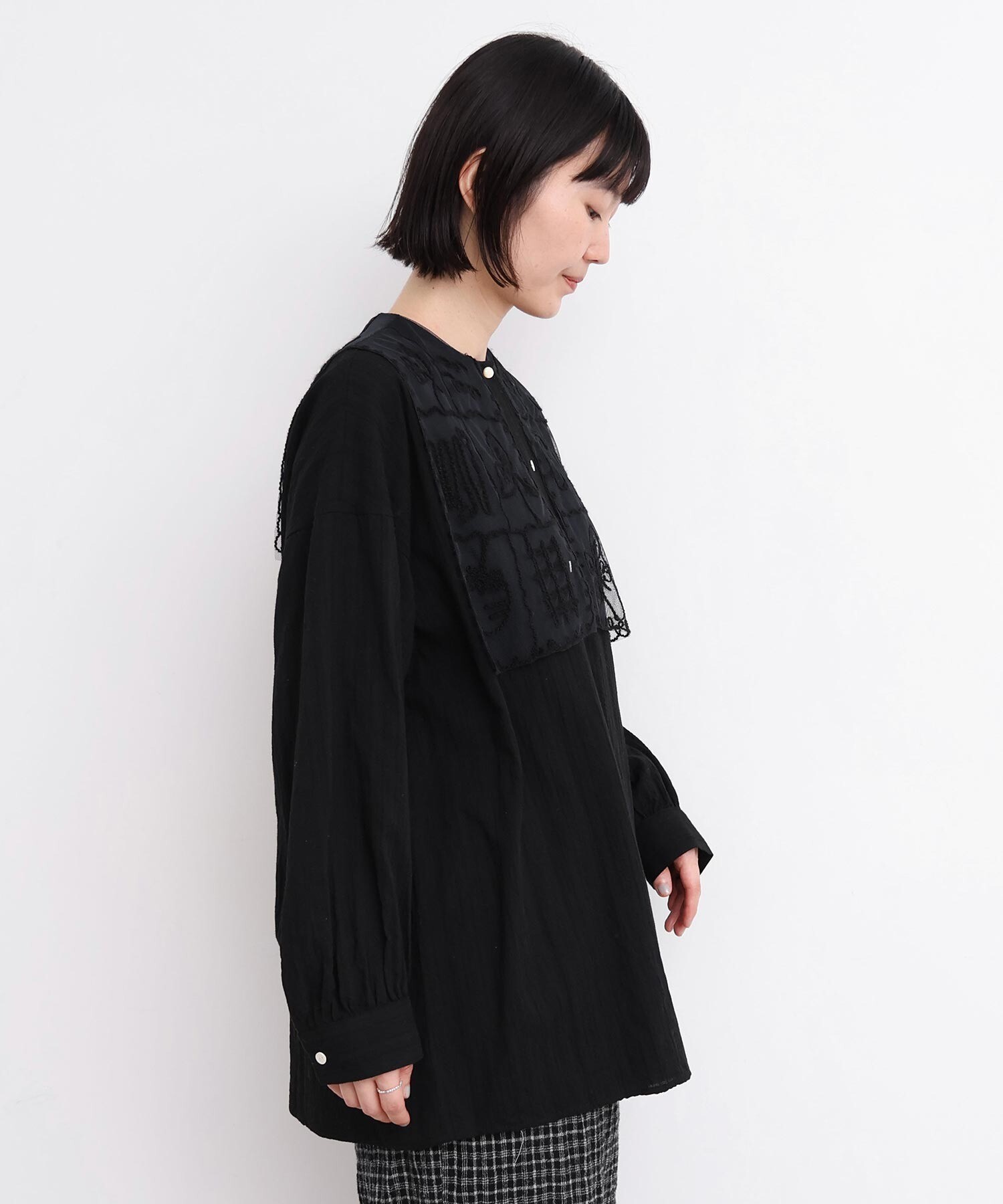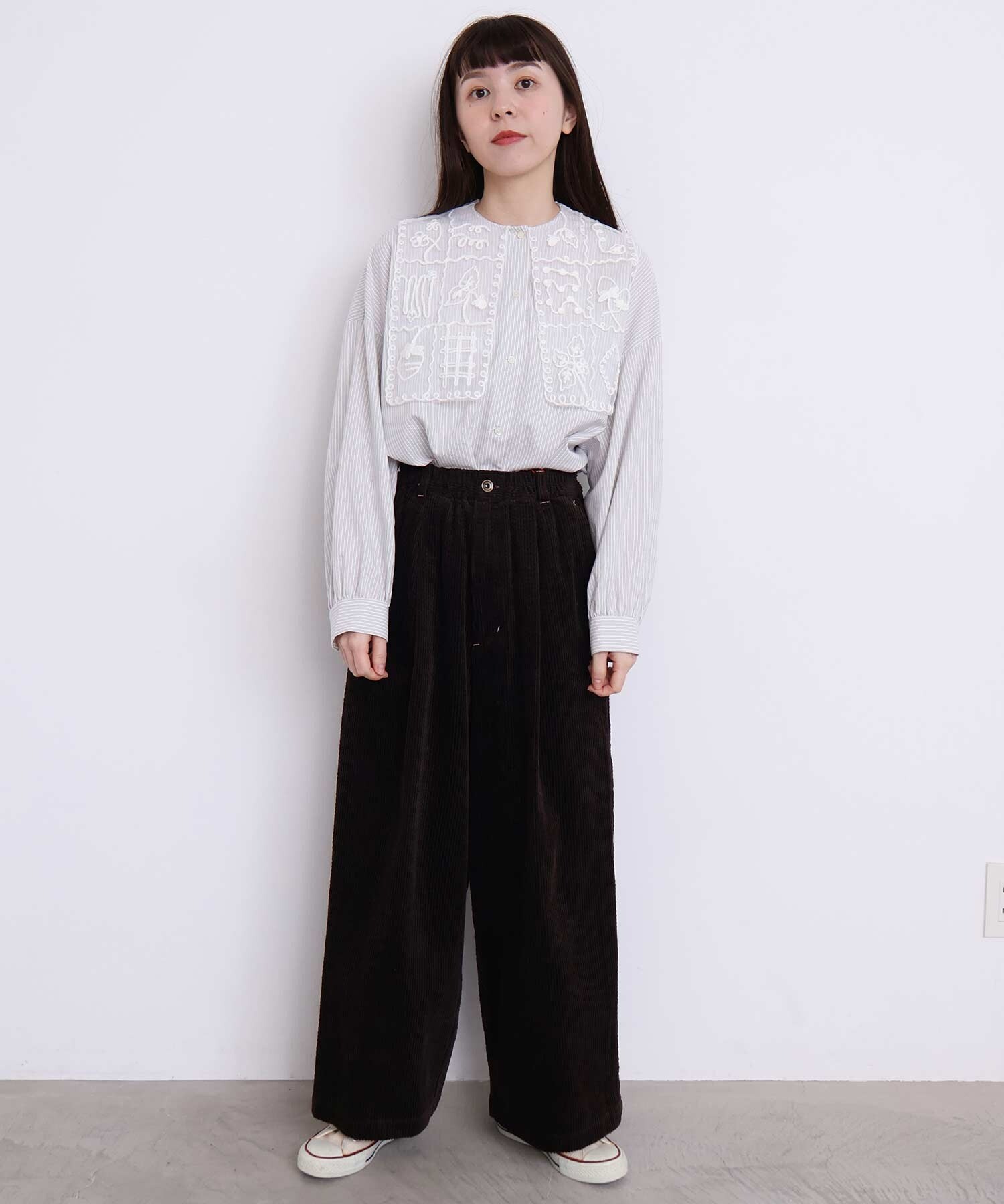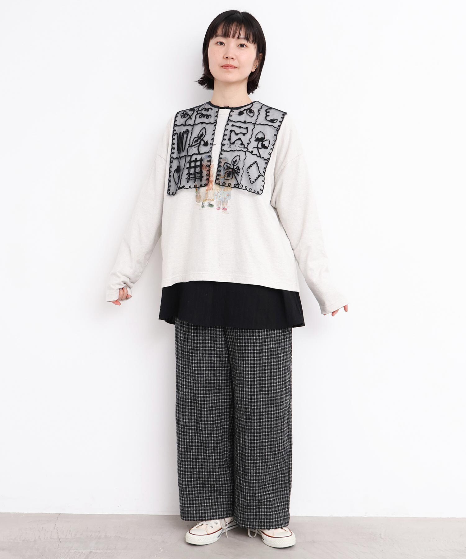 ○いちごコード刺繍 しかく襟チュニックブラウス
