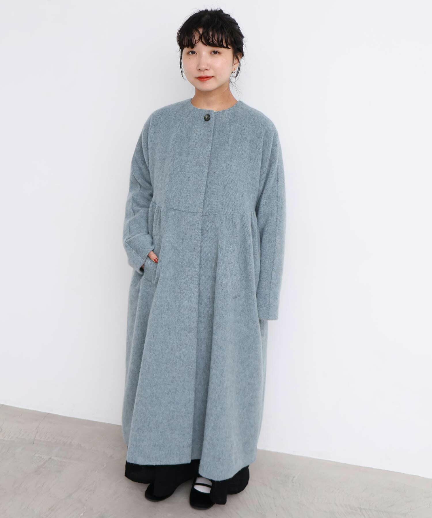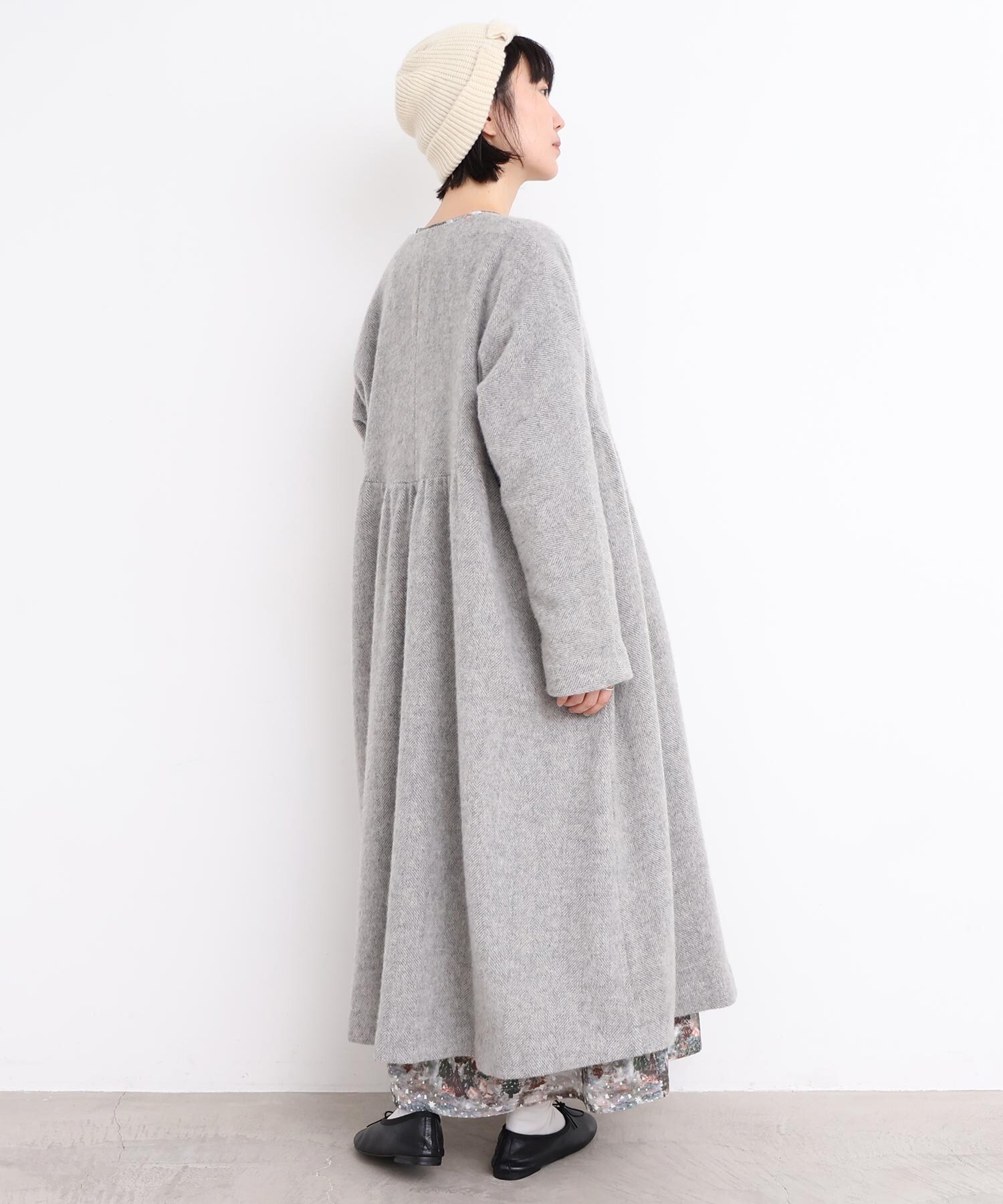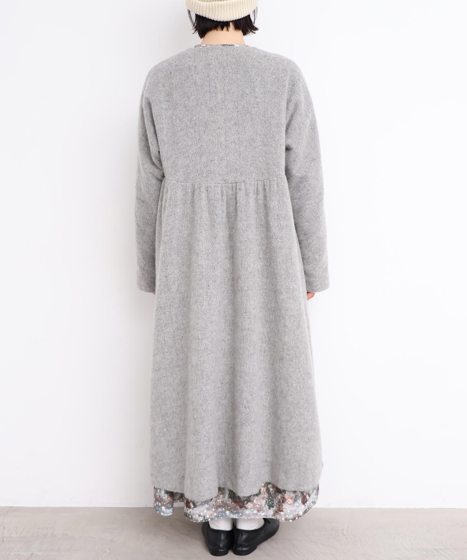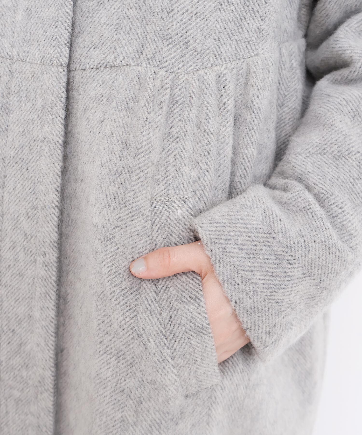 〇ヘリンボーンウール ドルマンギャザーコート