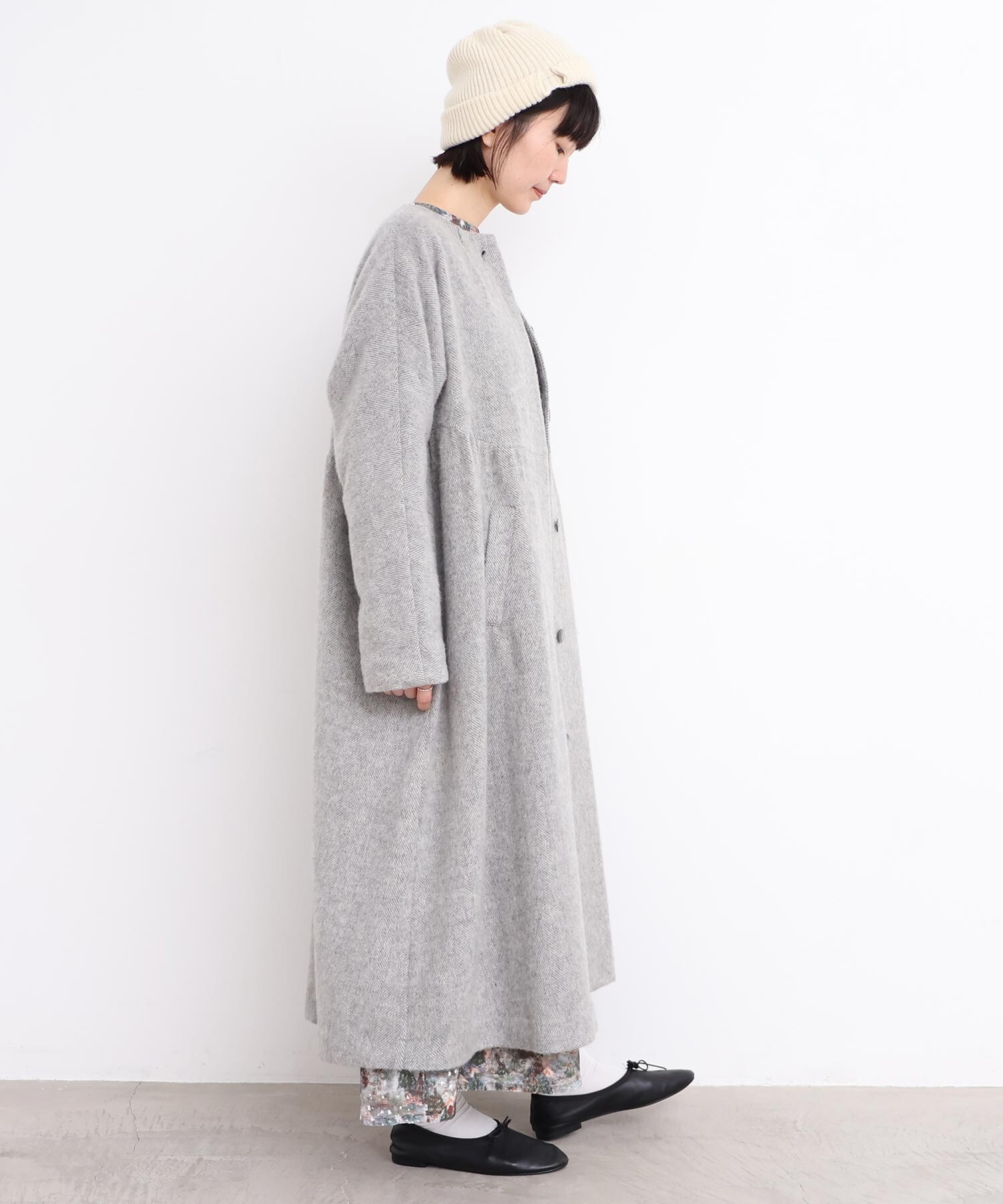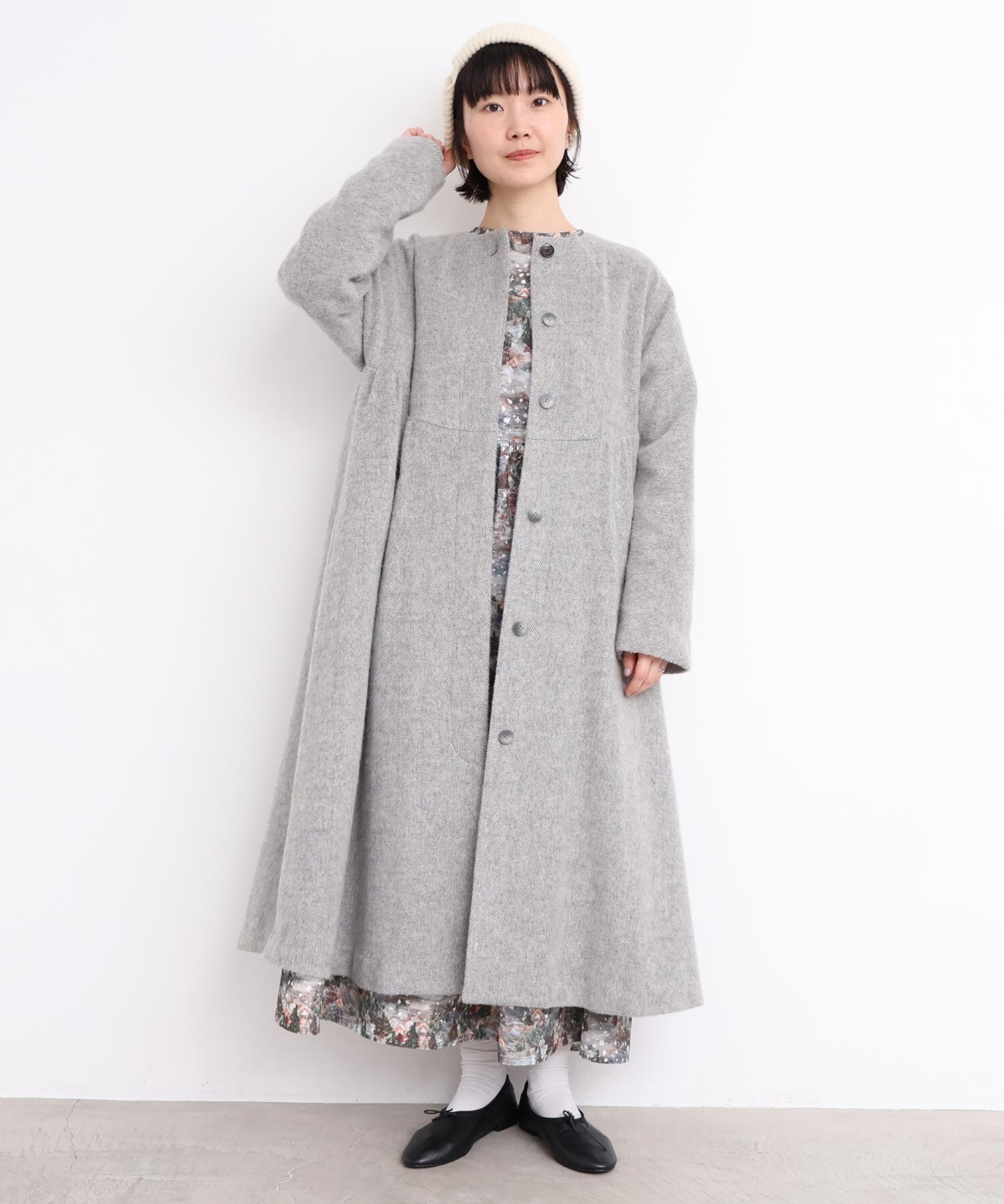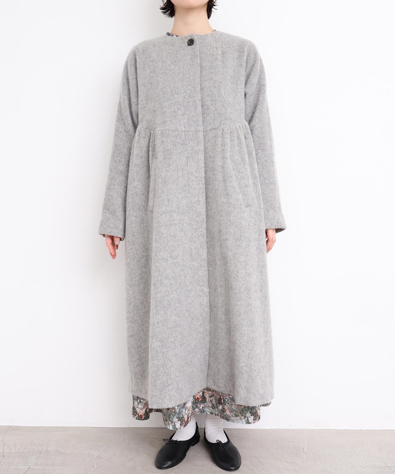 〇ヘリンボーンウール ドルマンギャザーコート