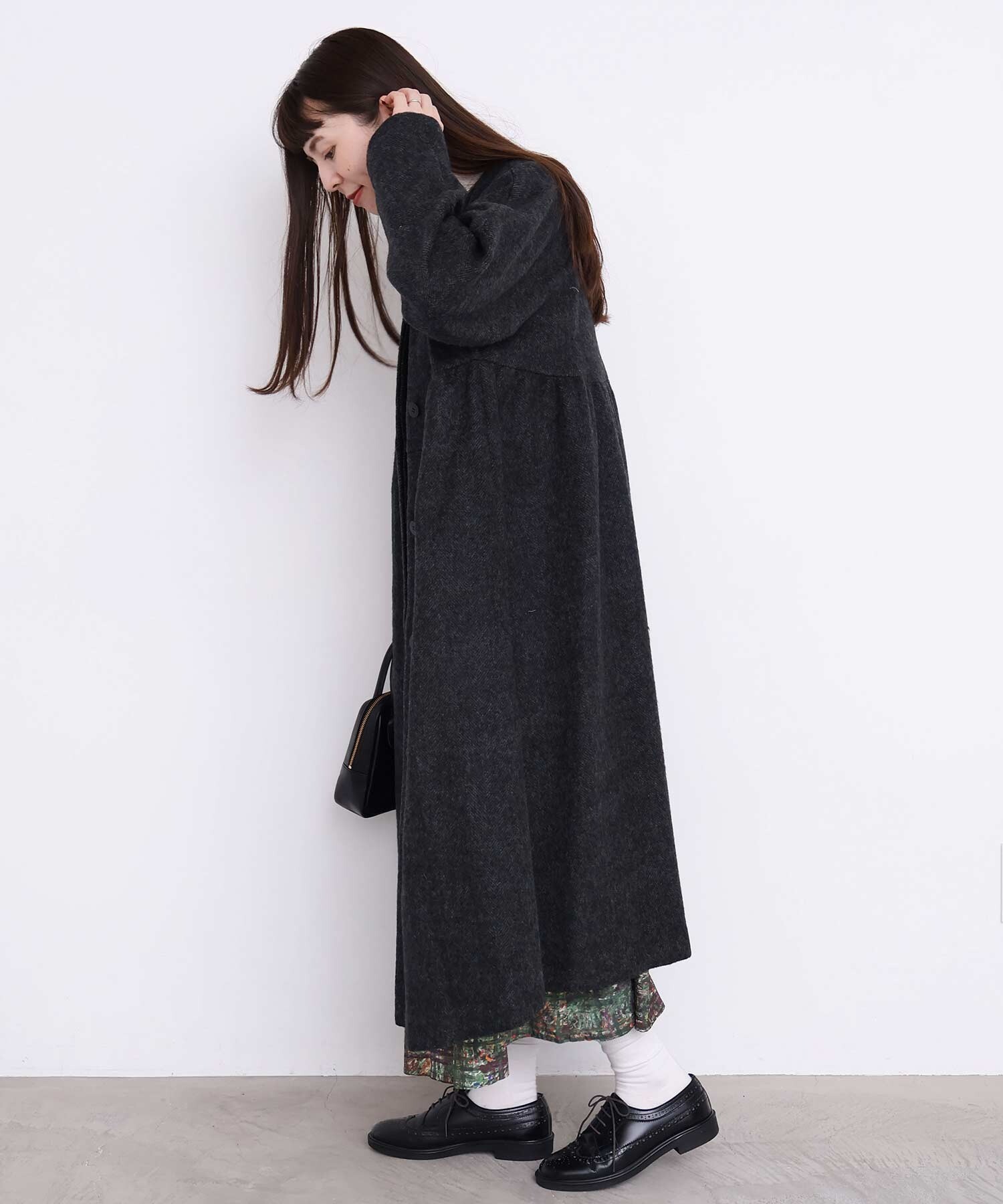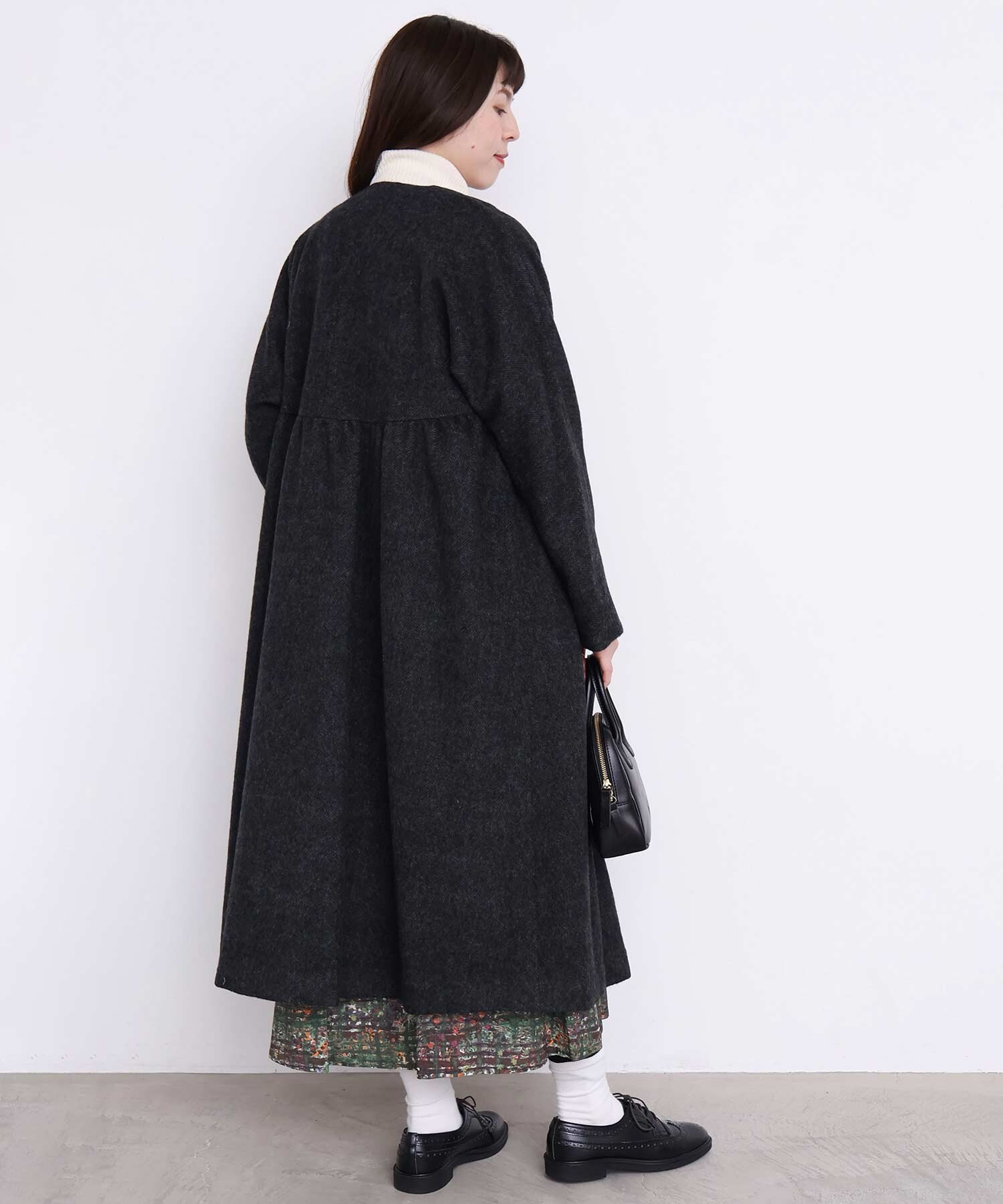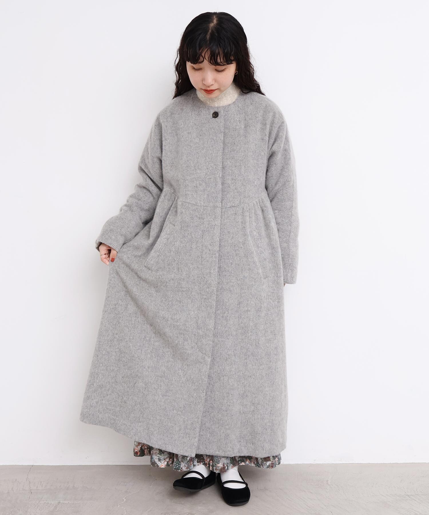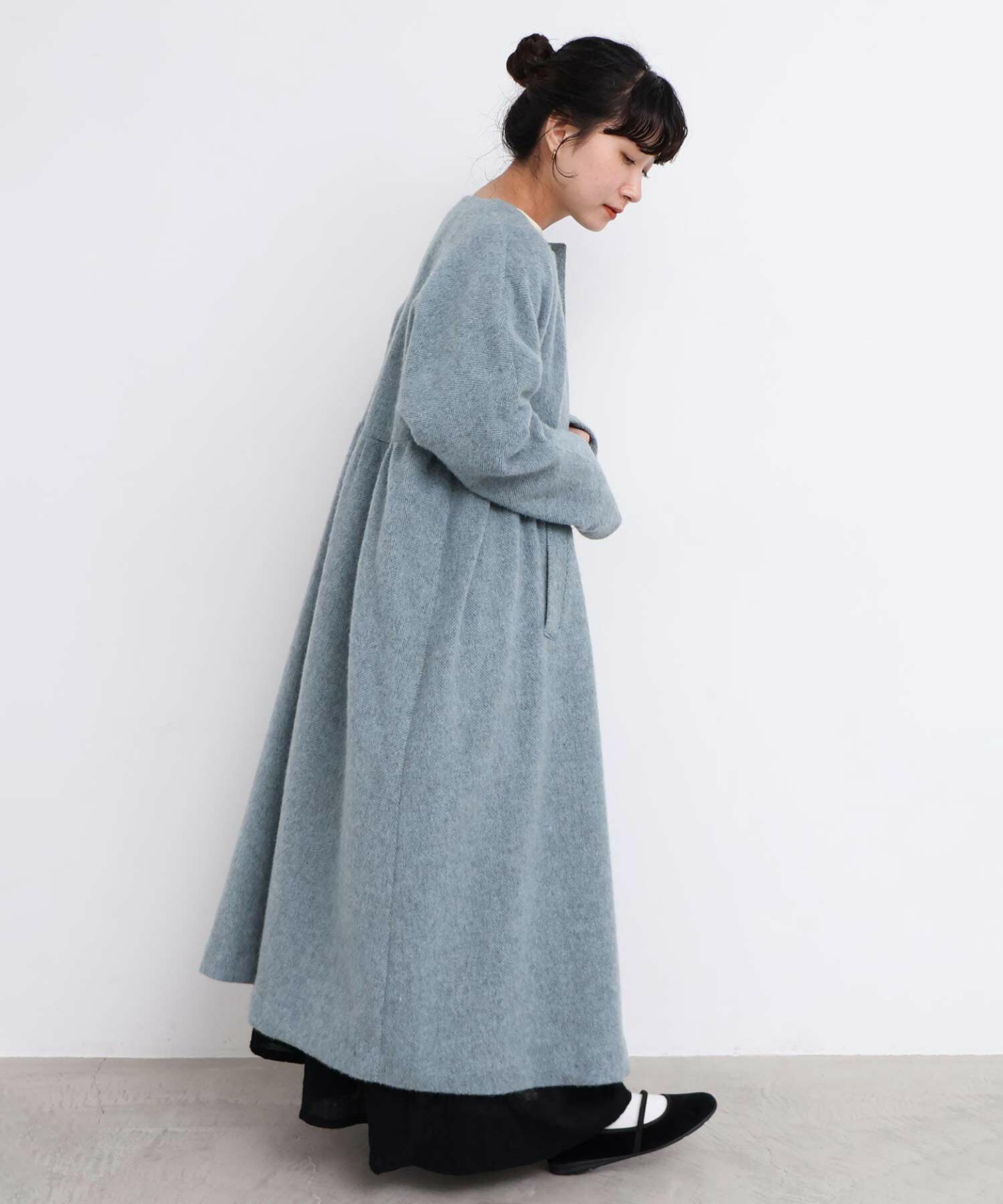 〇ヘリンボーンウール ドルマンギャザーコート