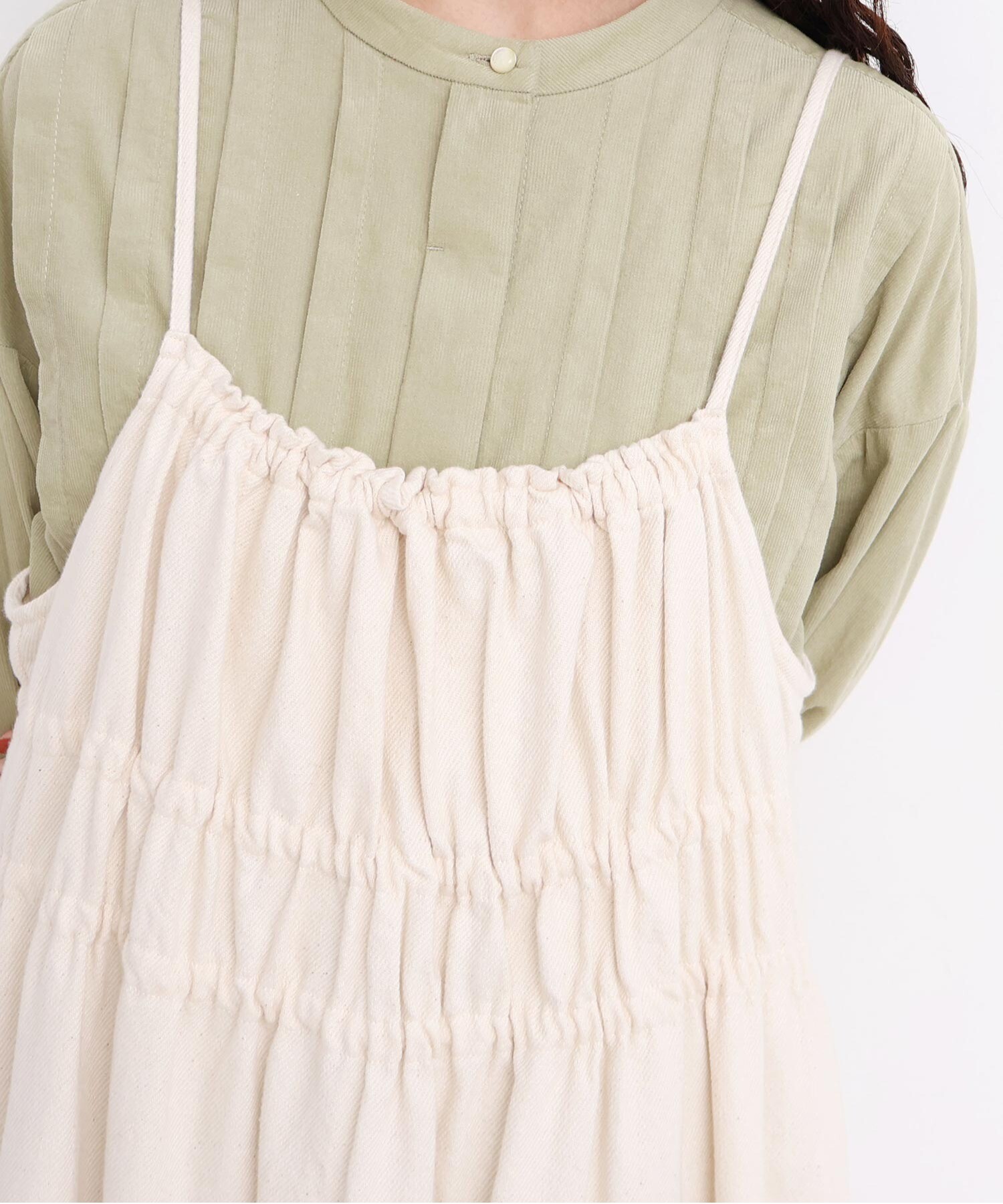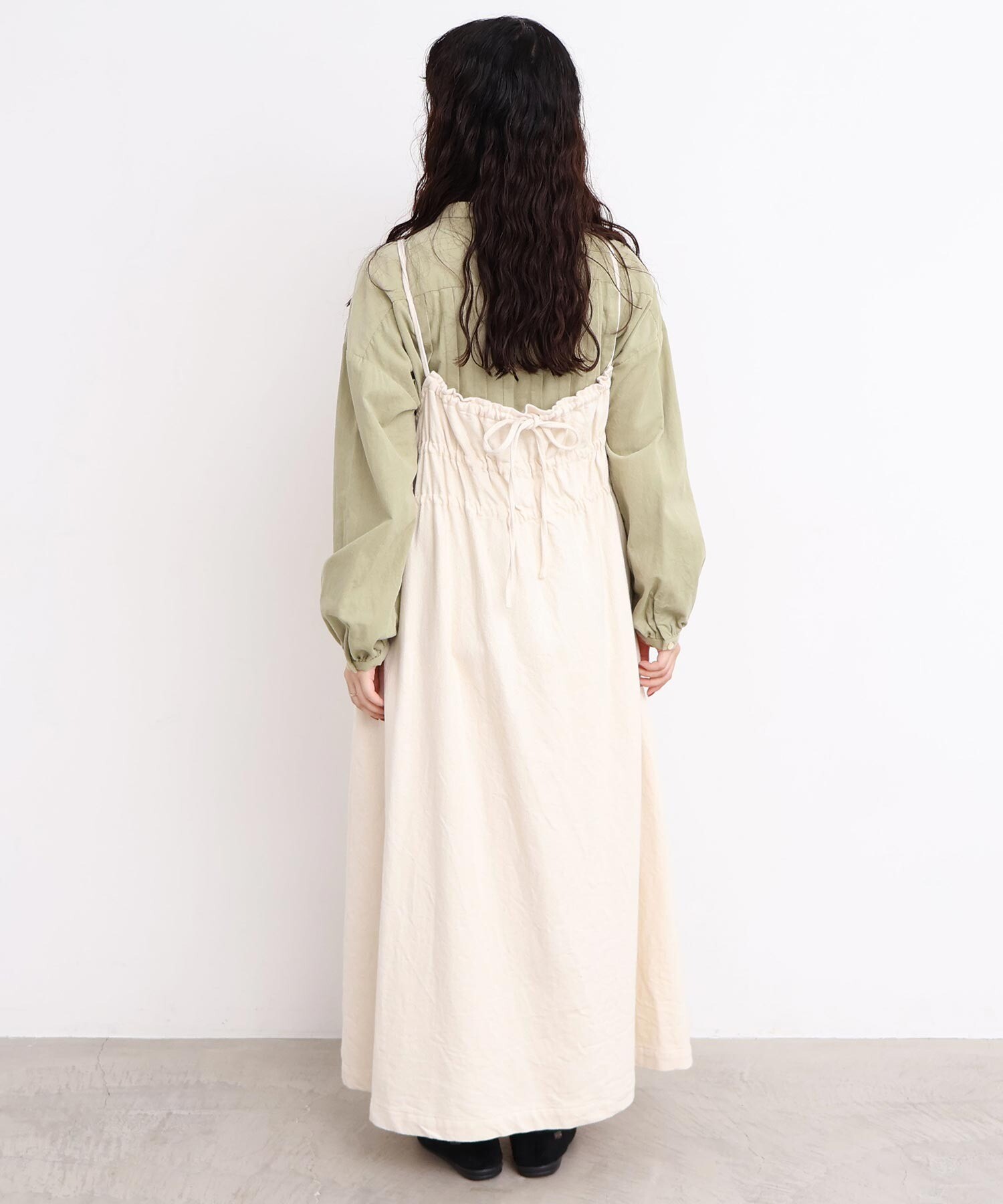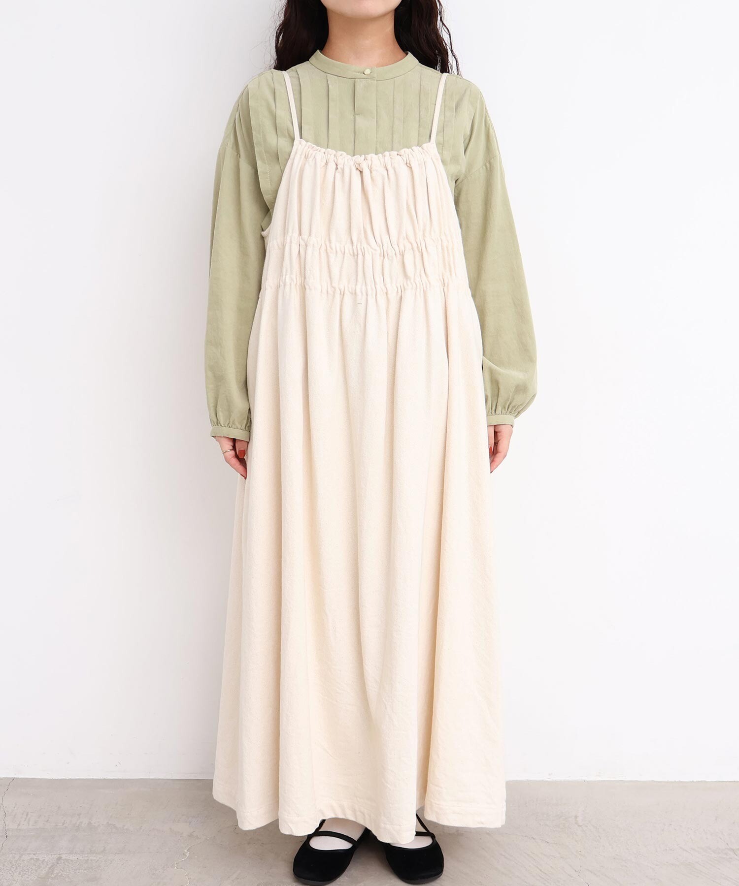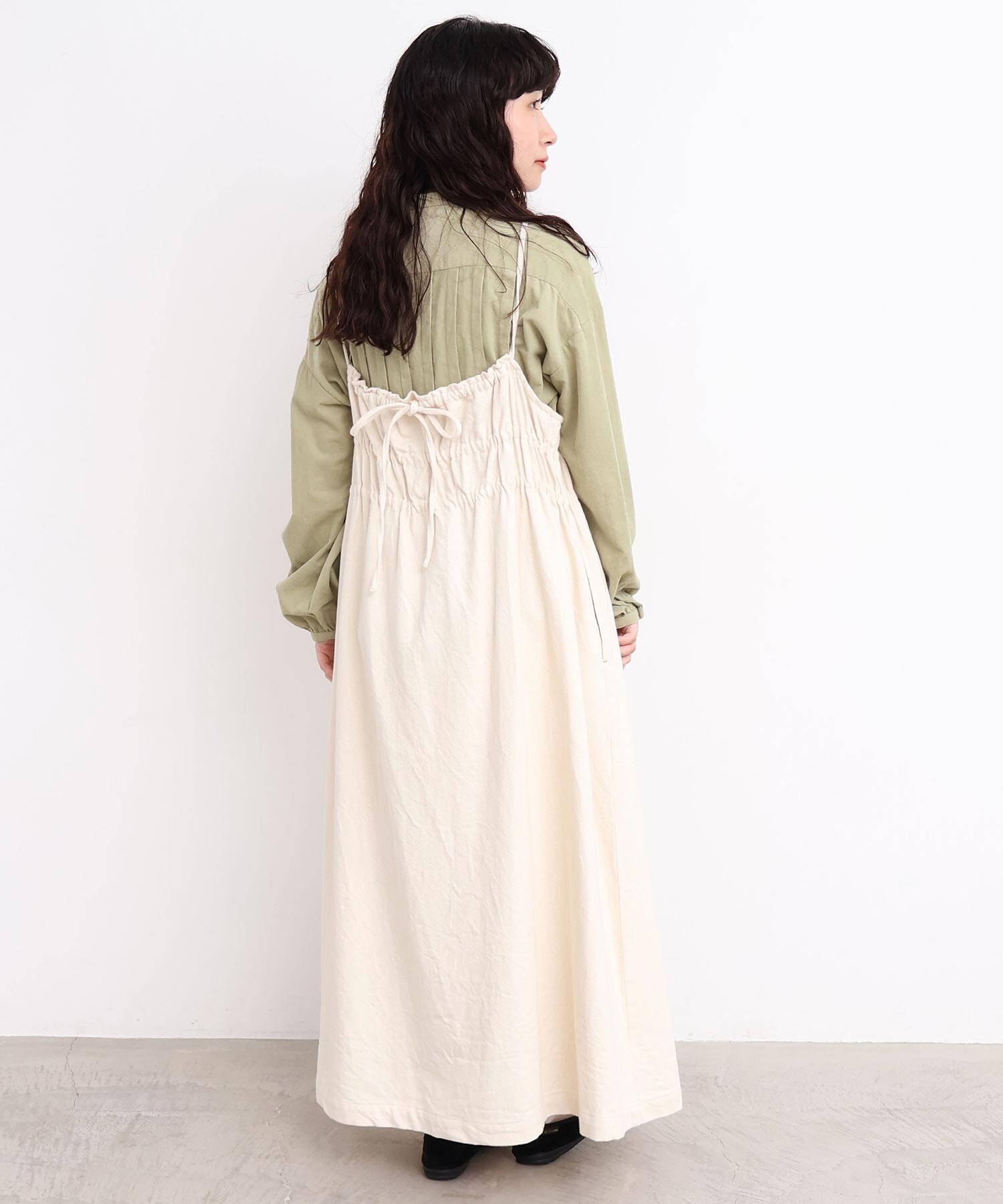 生地のやわらかい質感を生かしたドロストキャミワンピース。