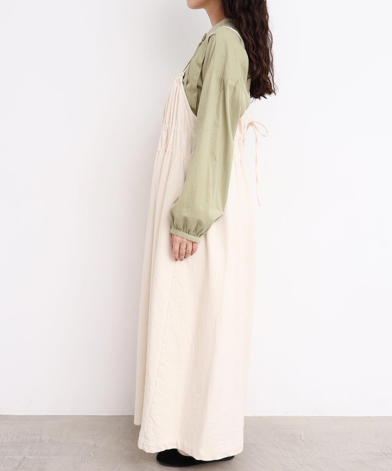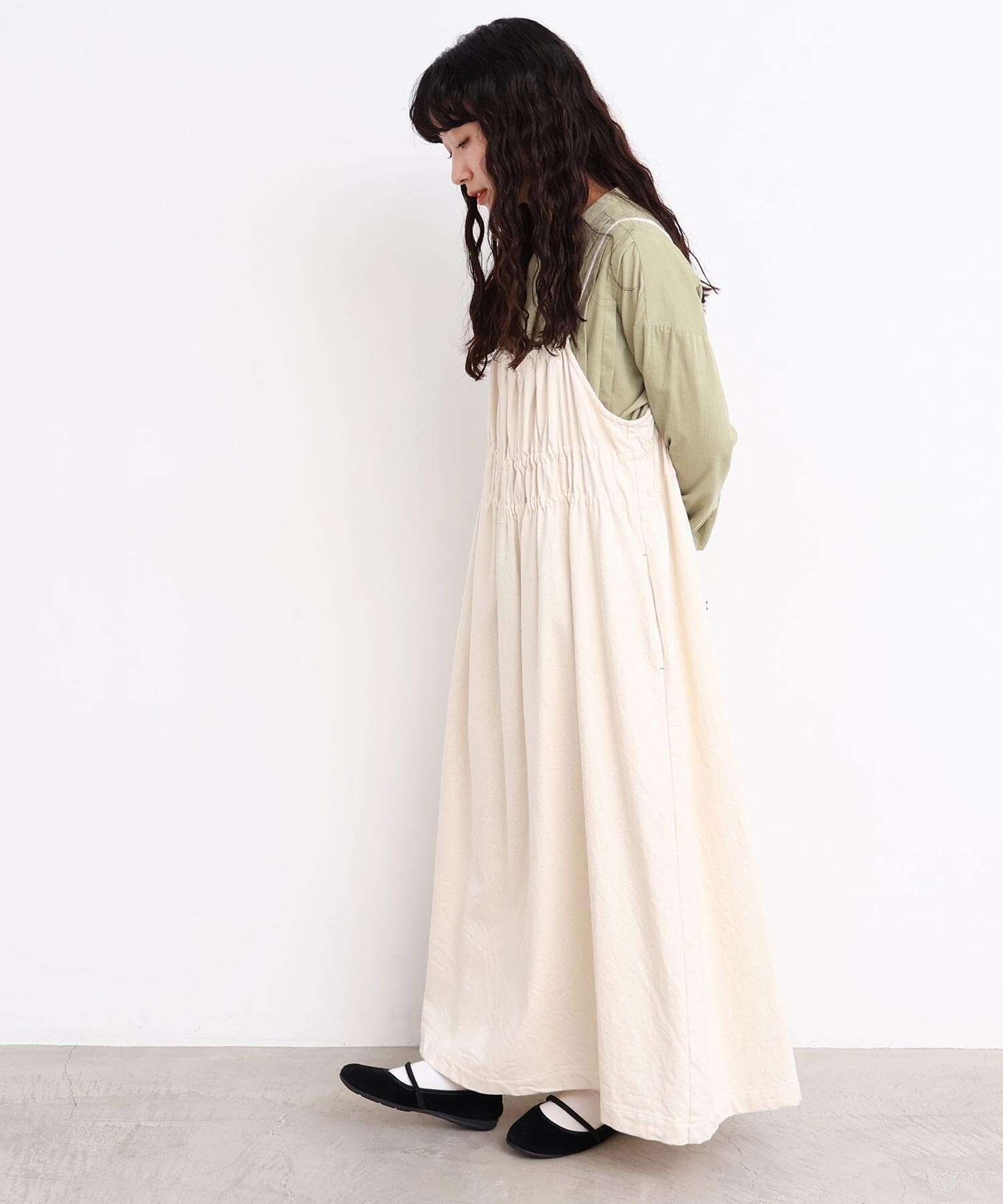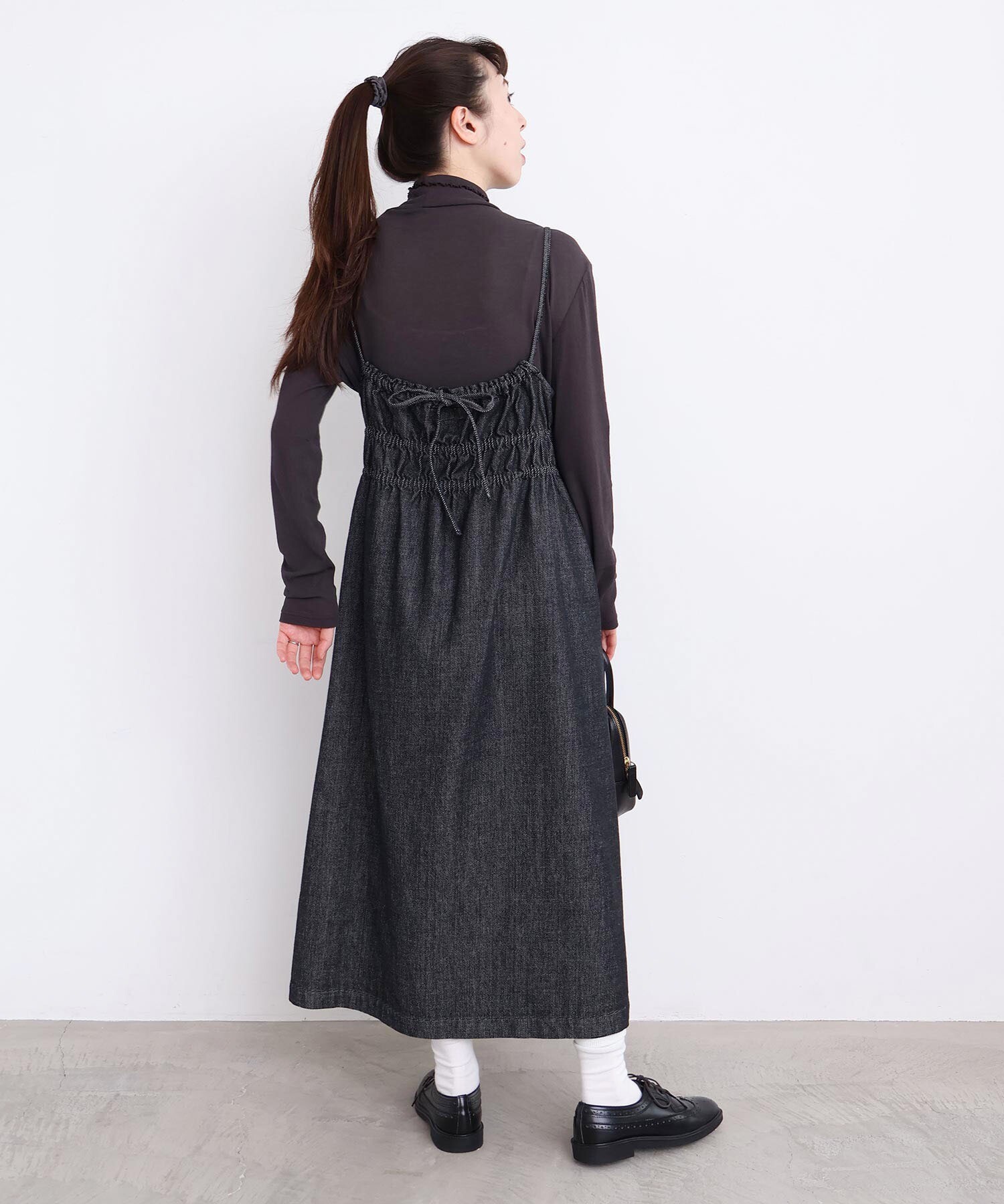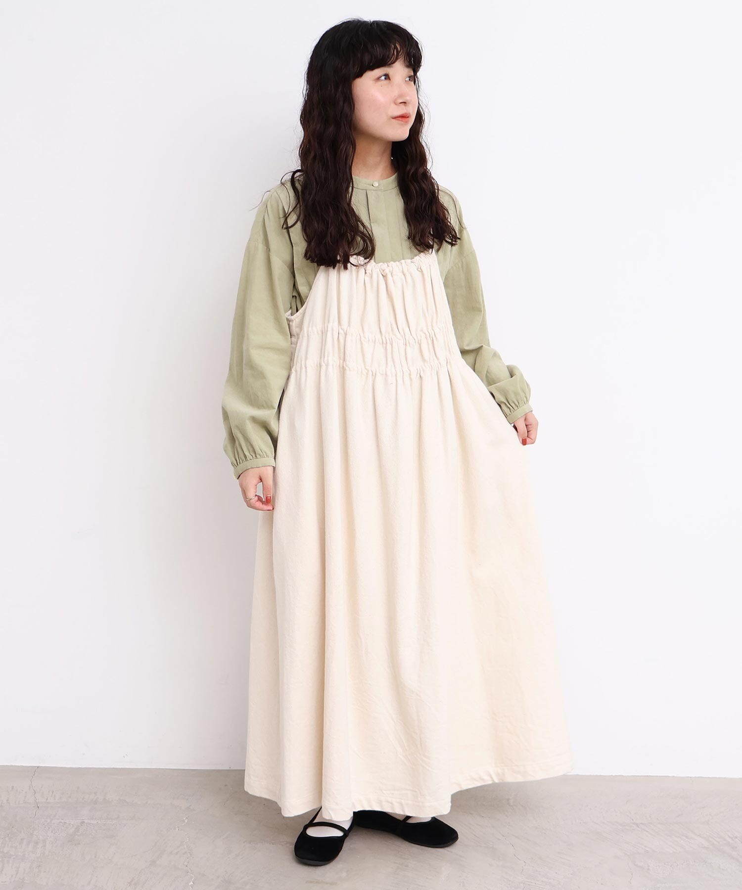 生地のやわらかい質感を生かしたドロストキャミワンピース。