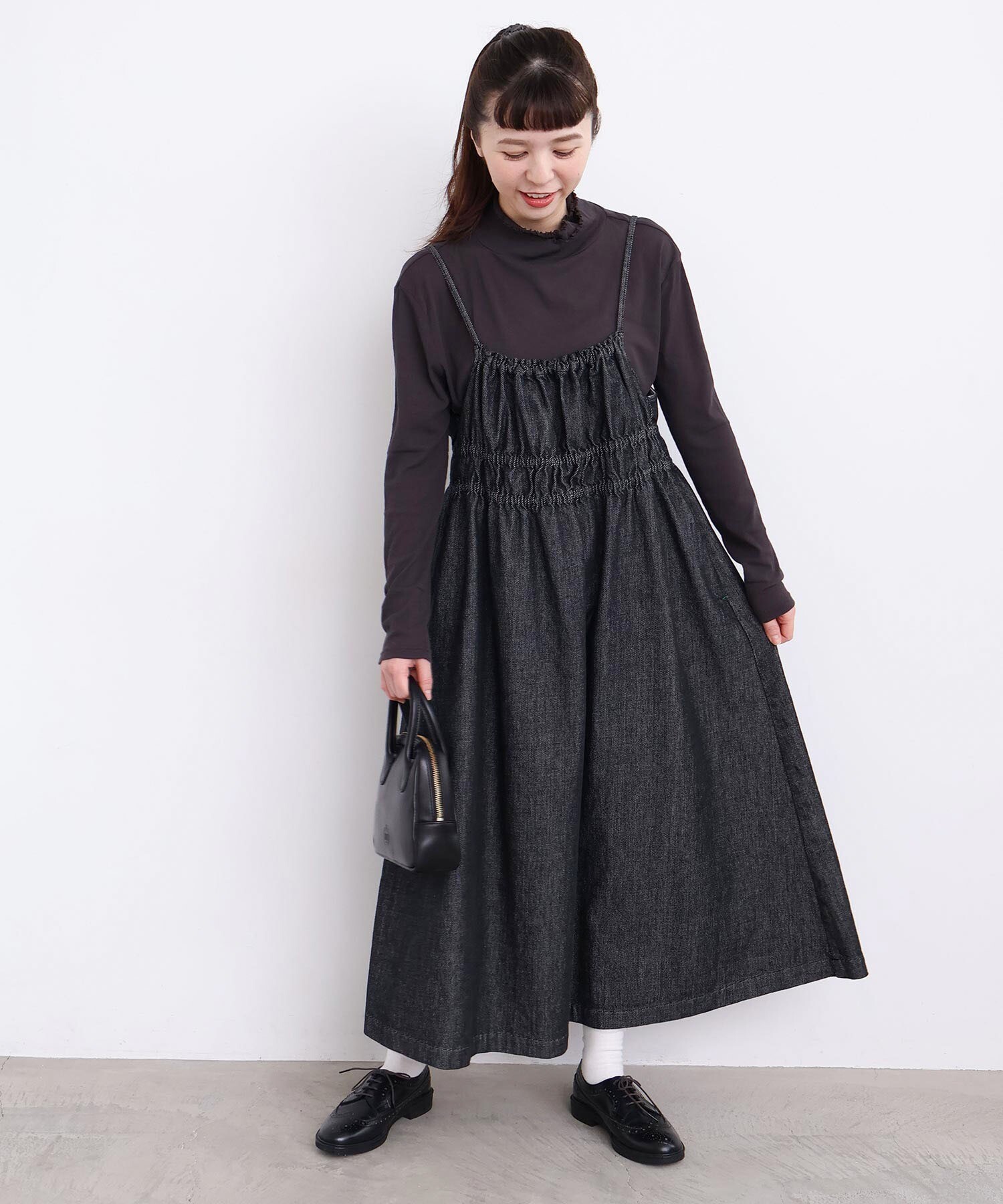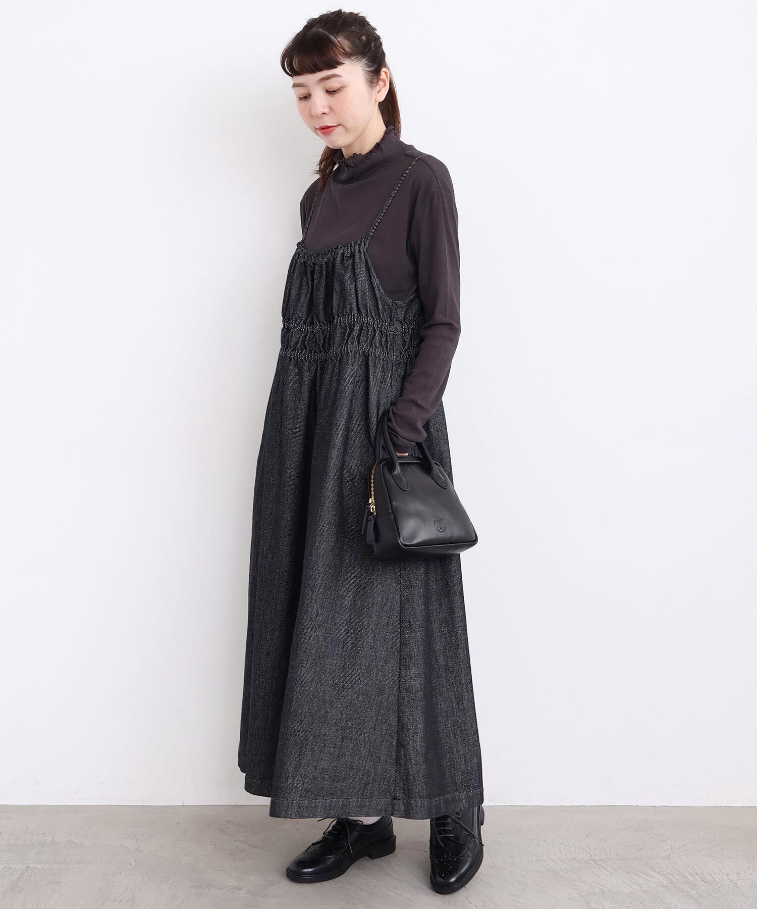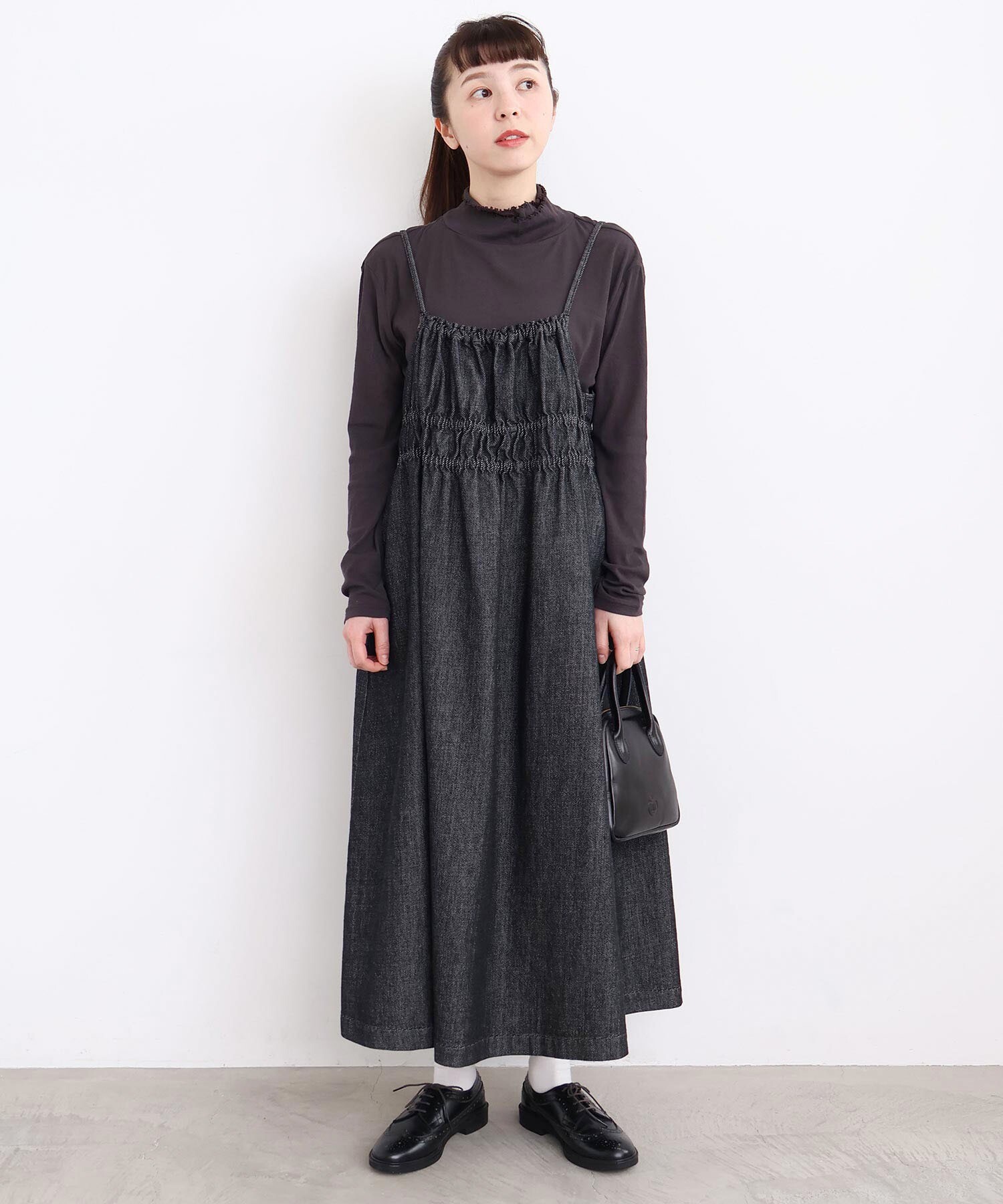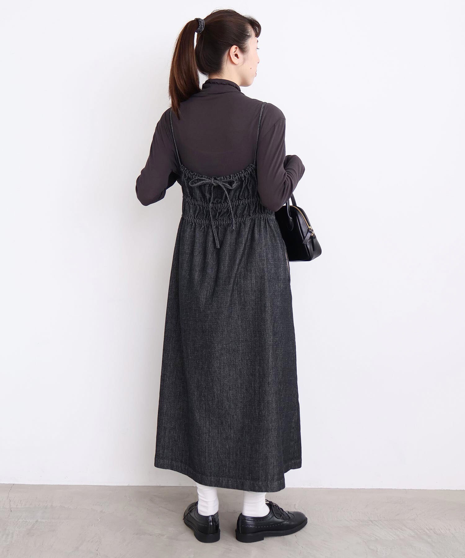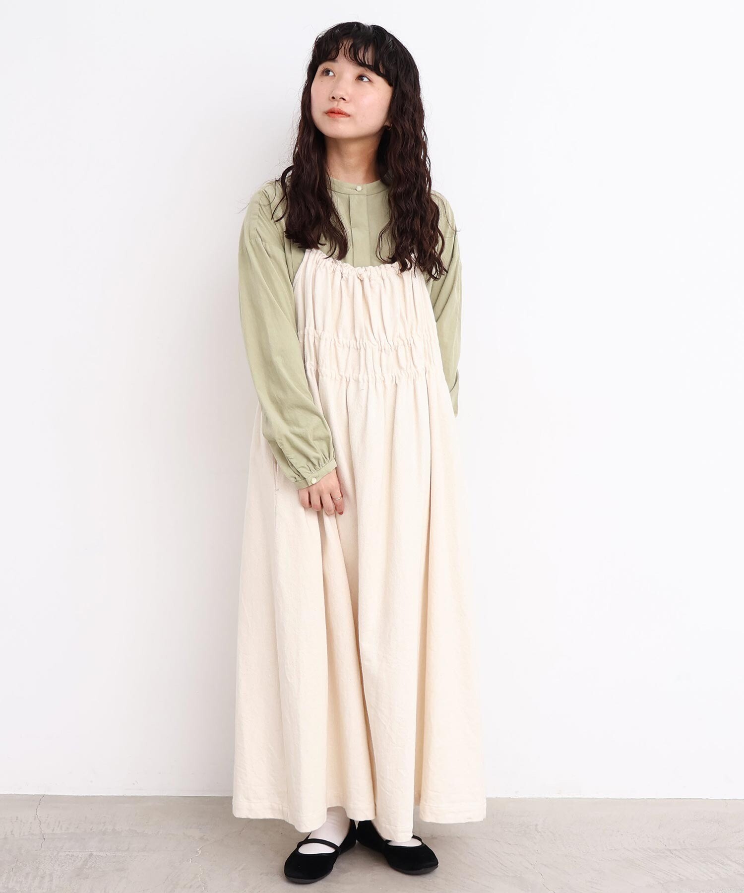生地のやわらかい質感を生かしたドロストキャミワンピース。
