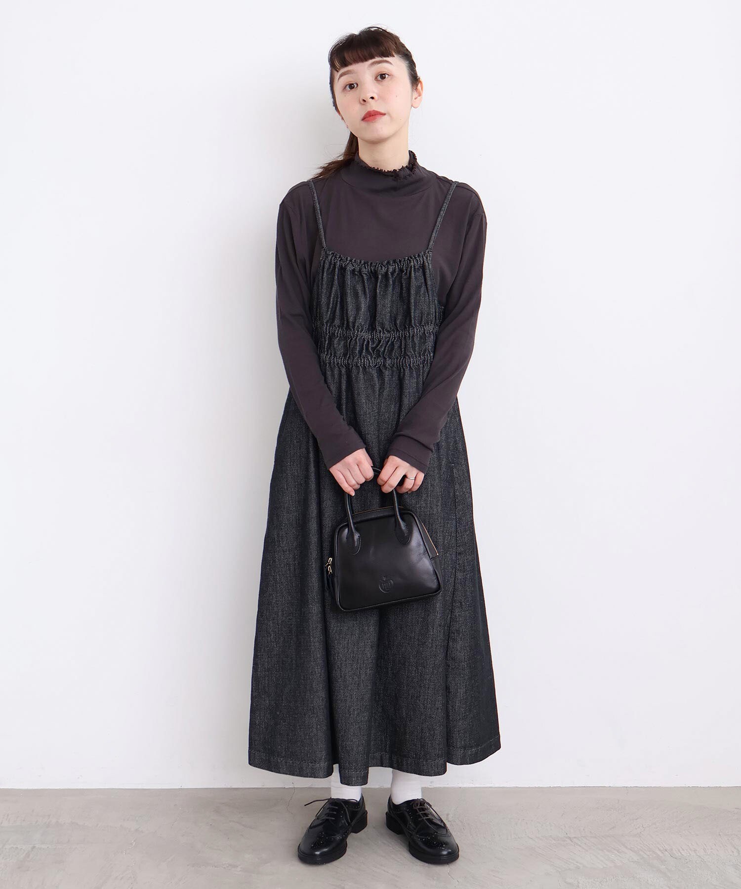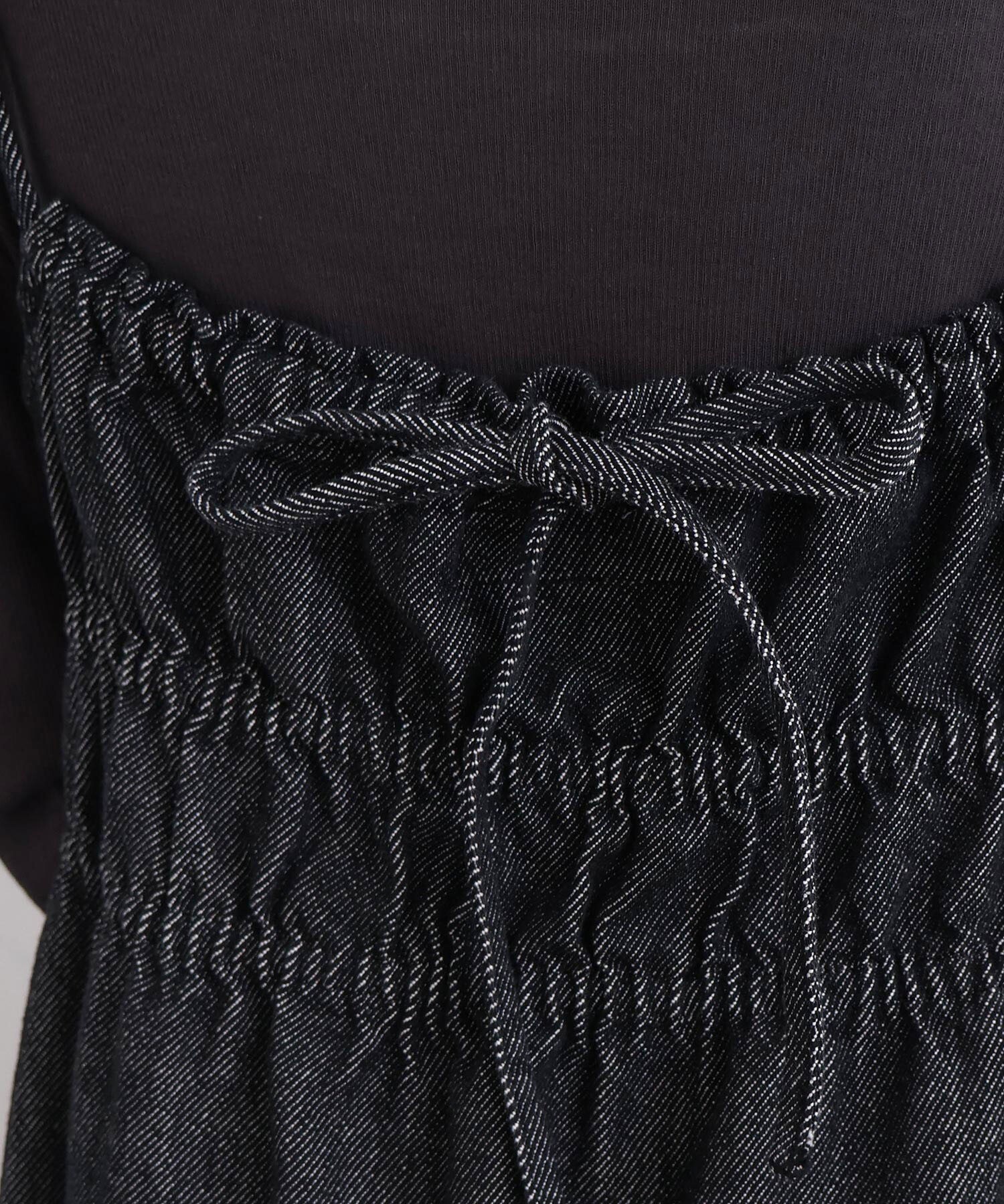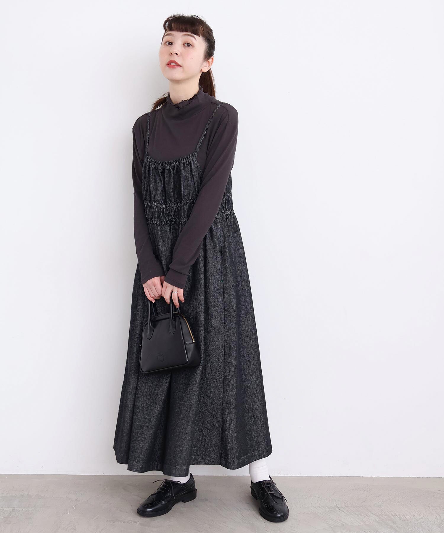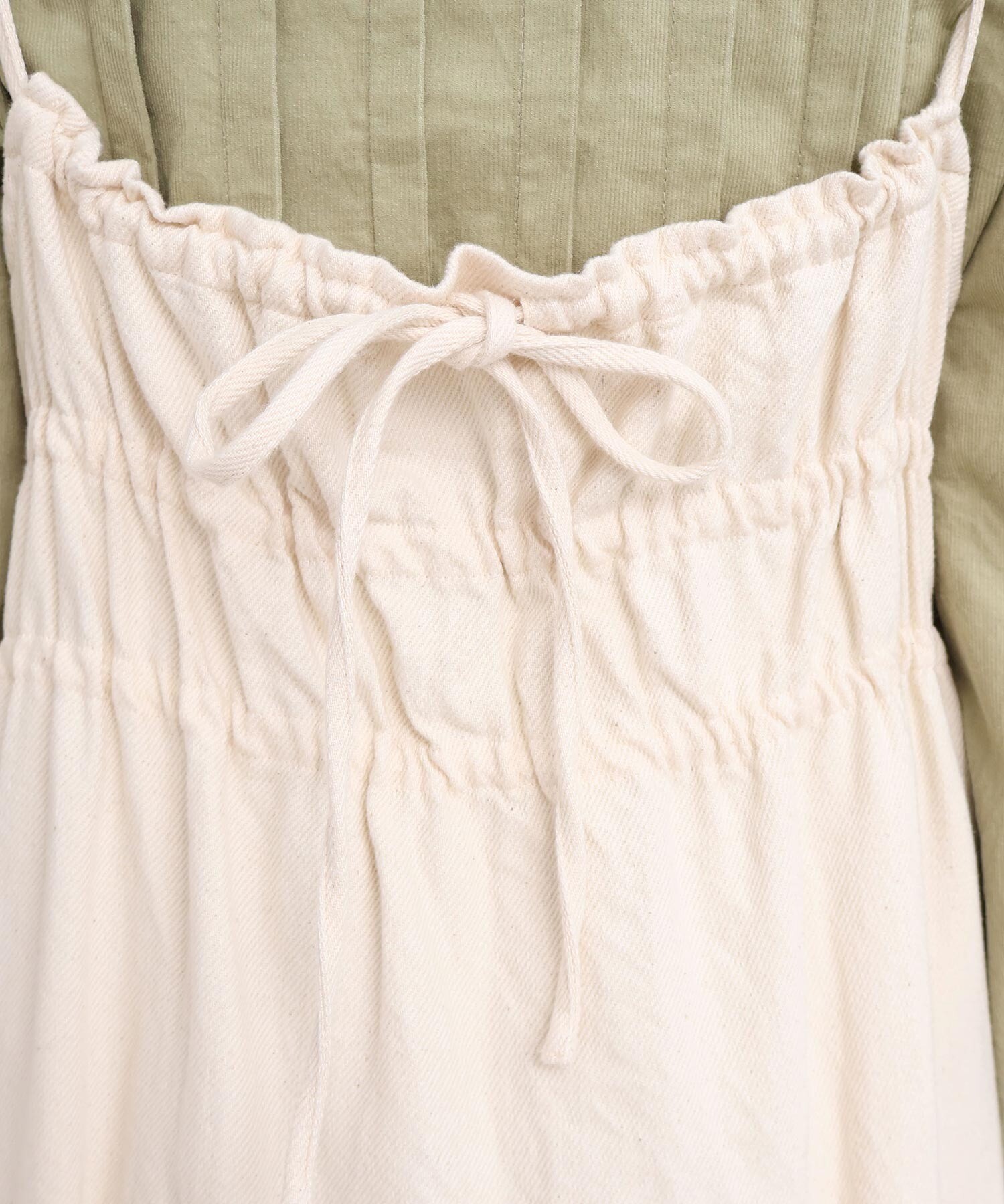 生地のやわらかい質感を生かしたドロストキャミワンピース。
