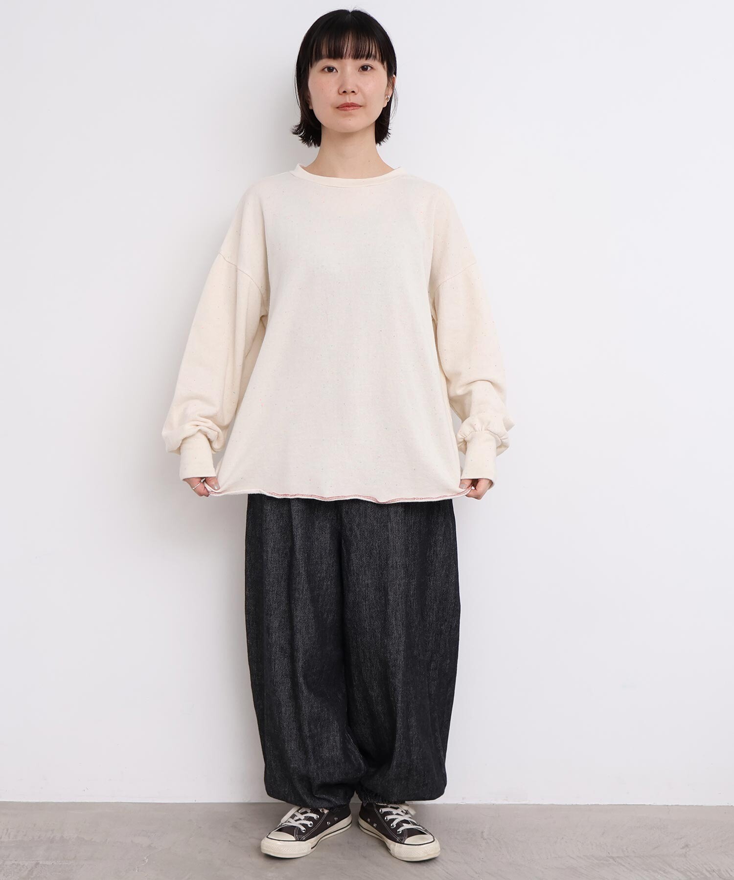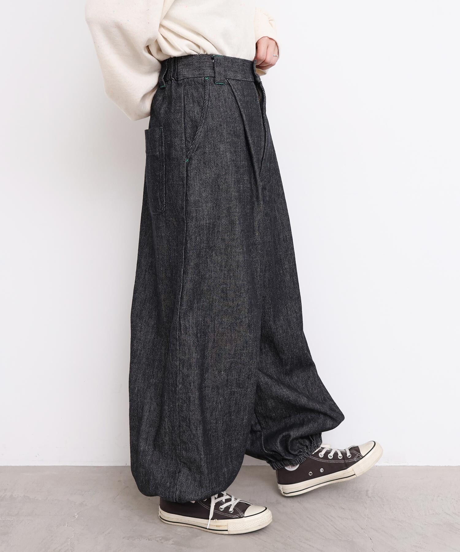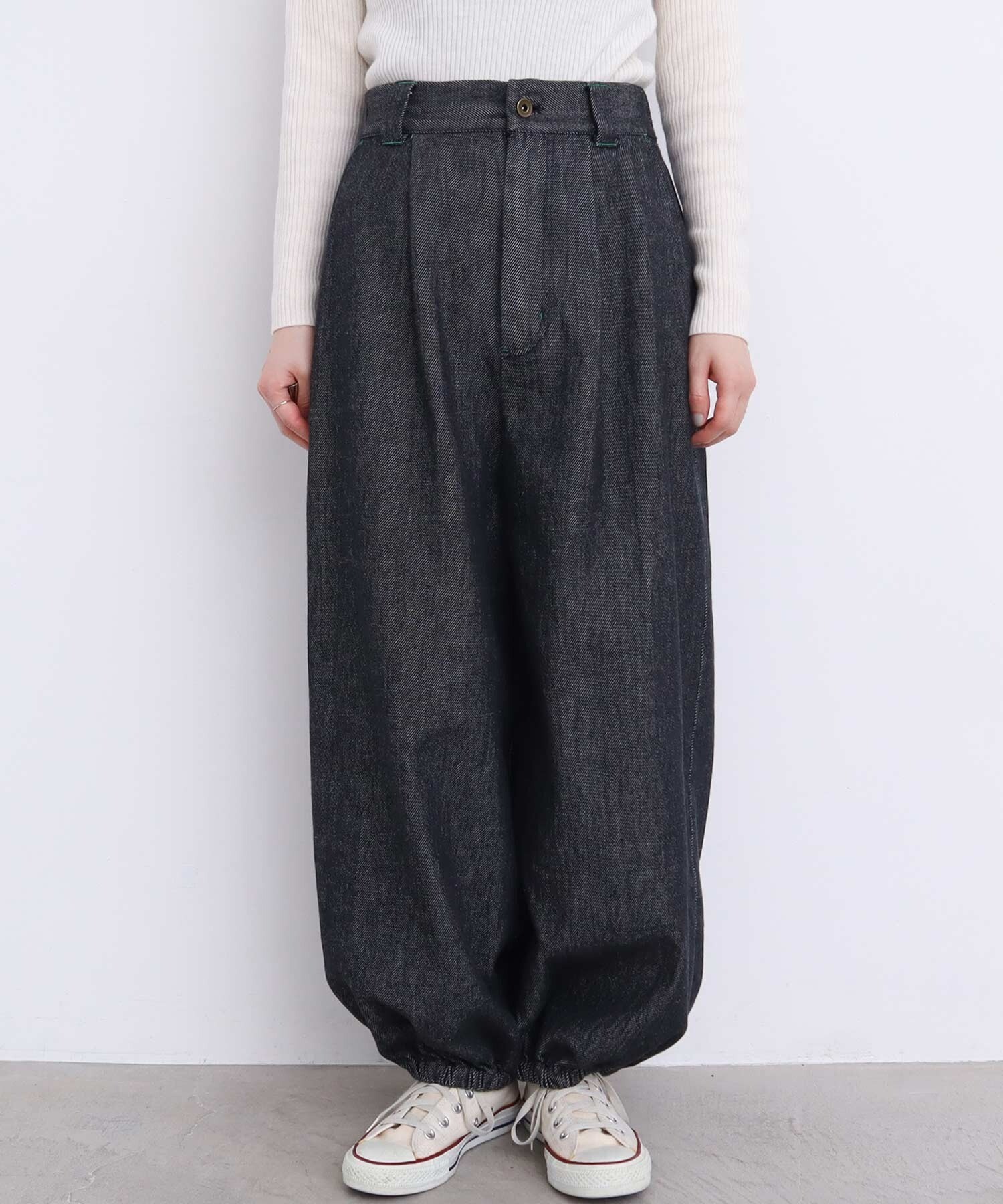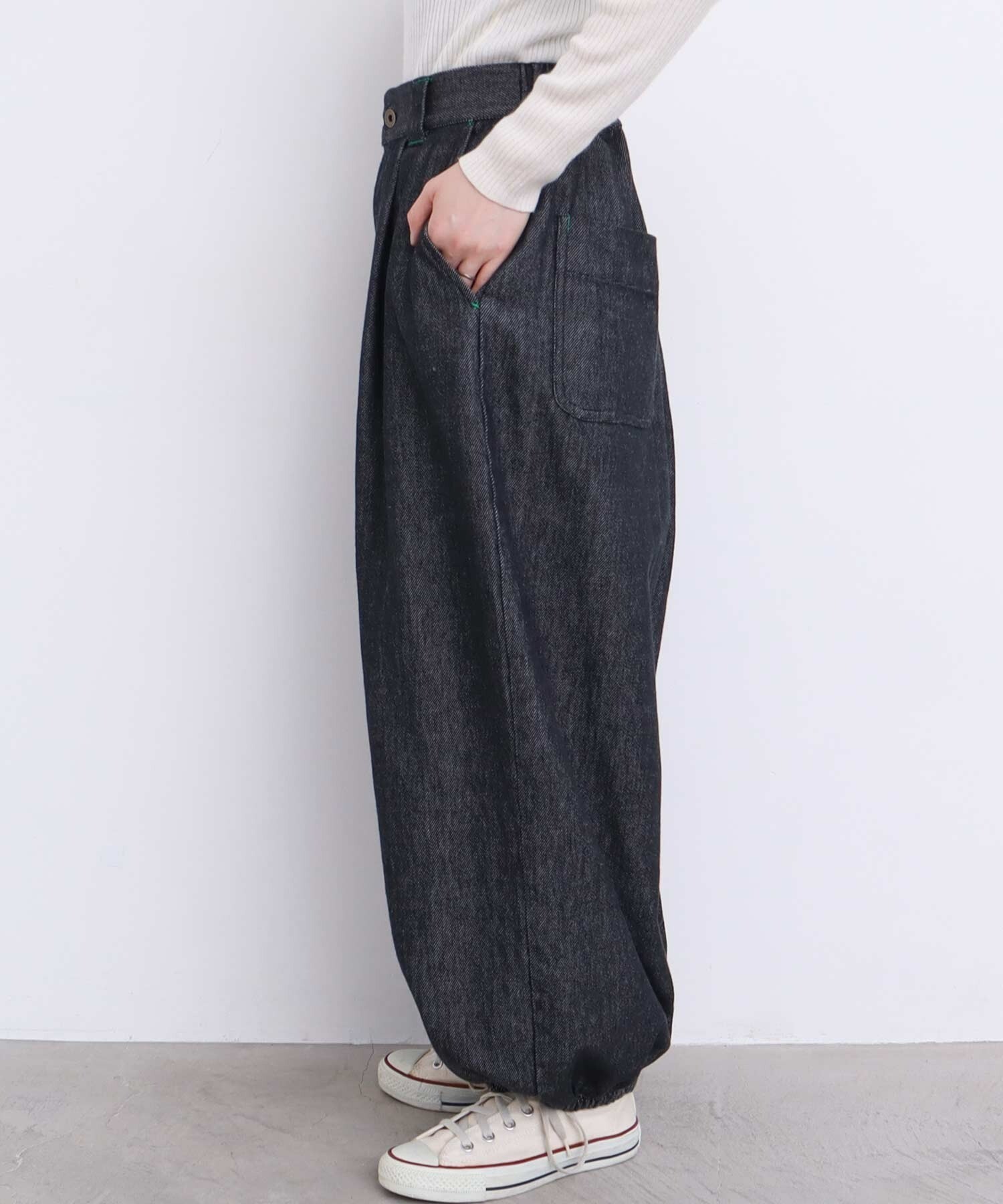 丸みのある裾しぼりやウエストの後ろゴム仕様。