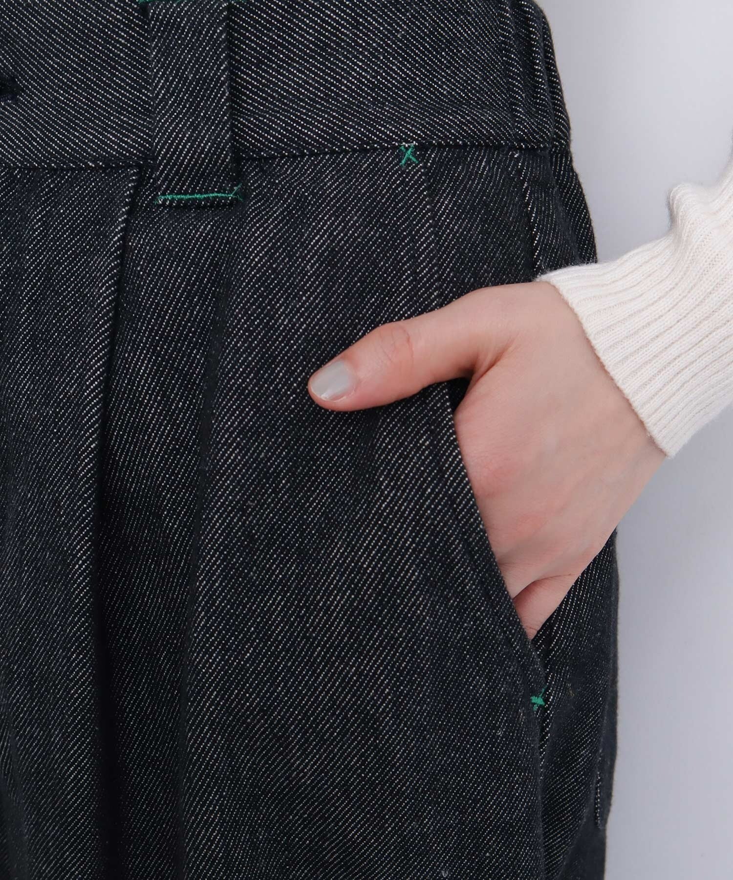 デニムだけど通常のデニムではできないディテールのパンツです。