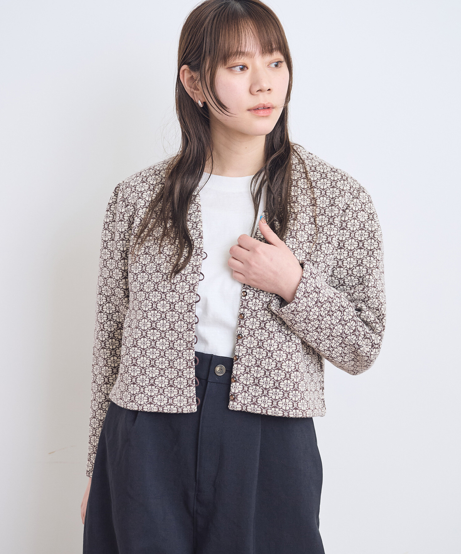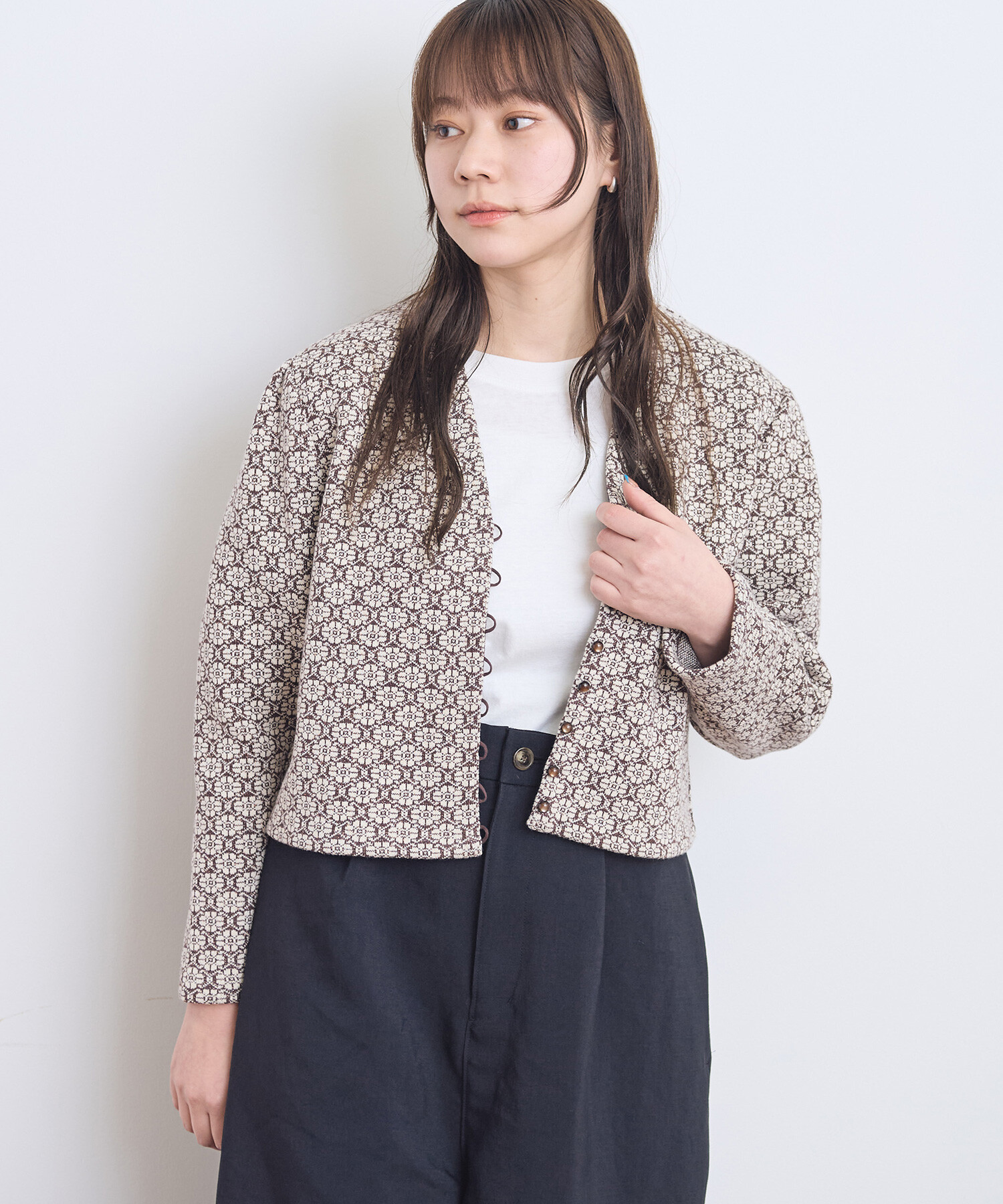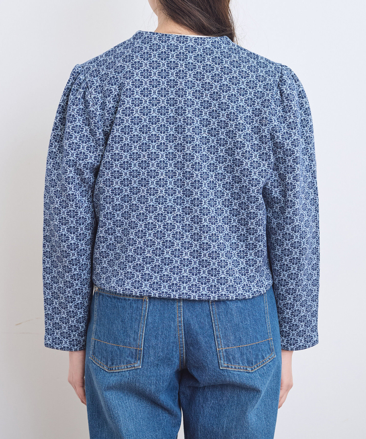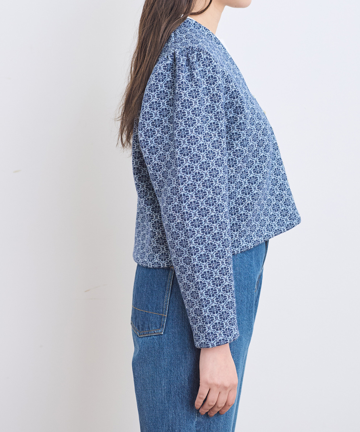 ●〇幾何学フラワージャカード ジャケットカーディガン
