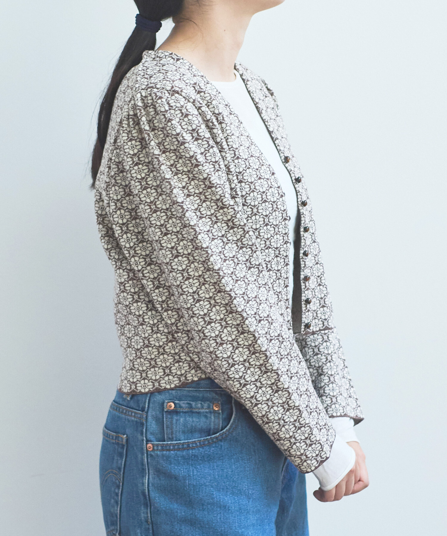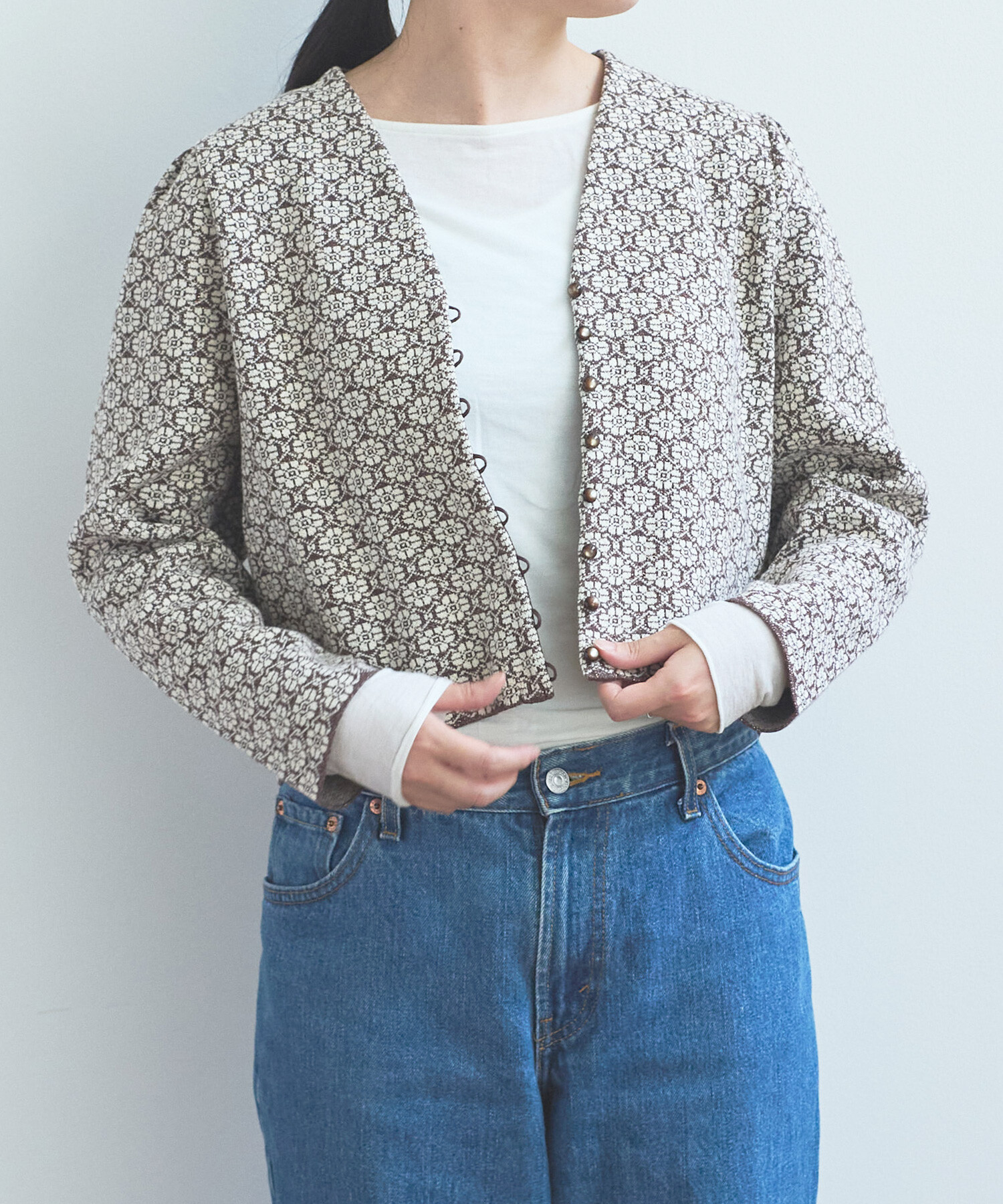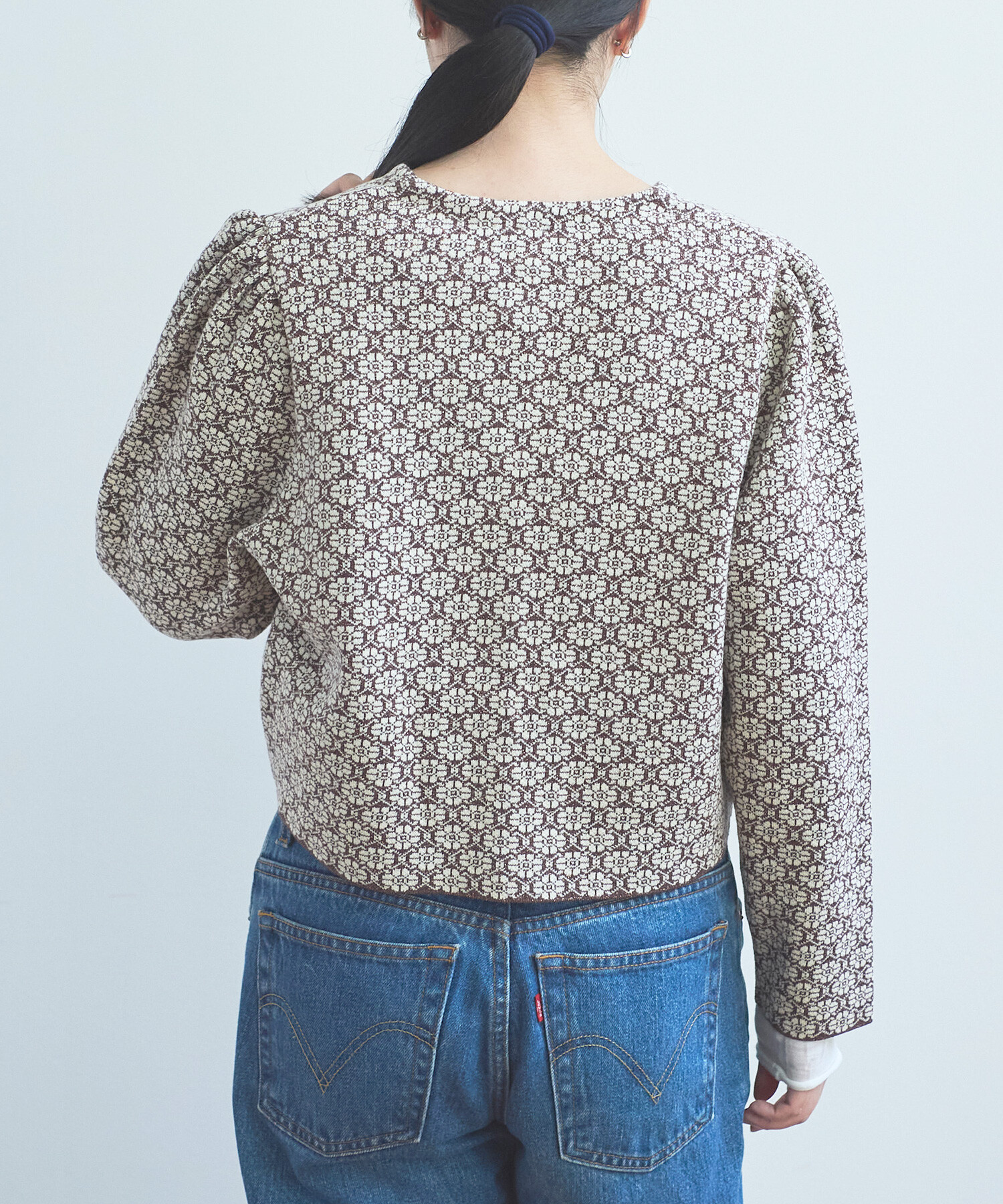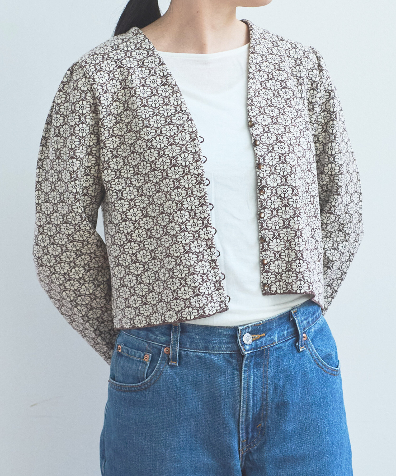 ●〇幾何学フラワージャカード ジャケットカーディガン