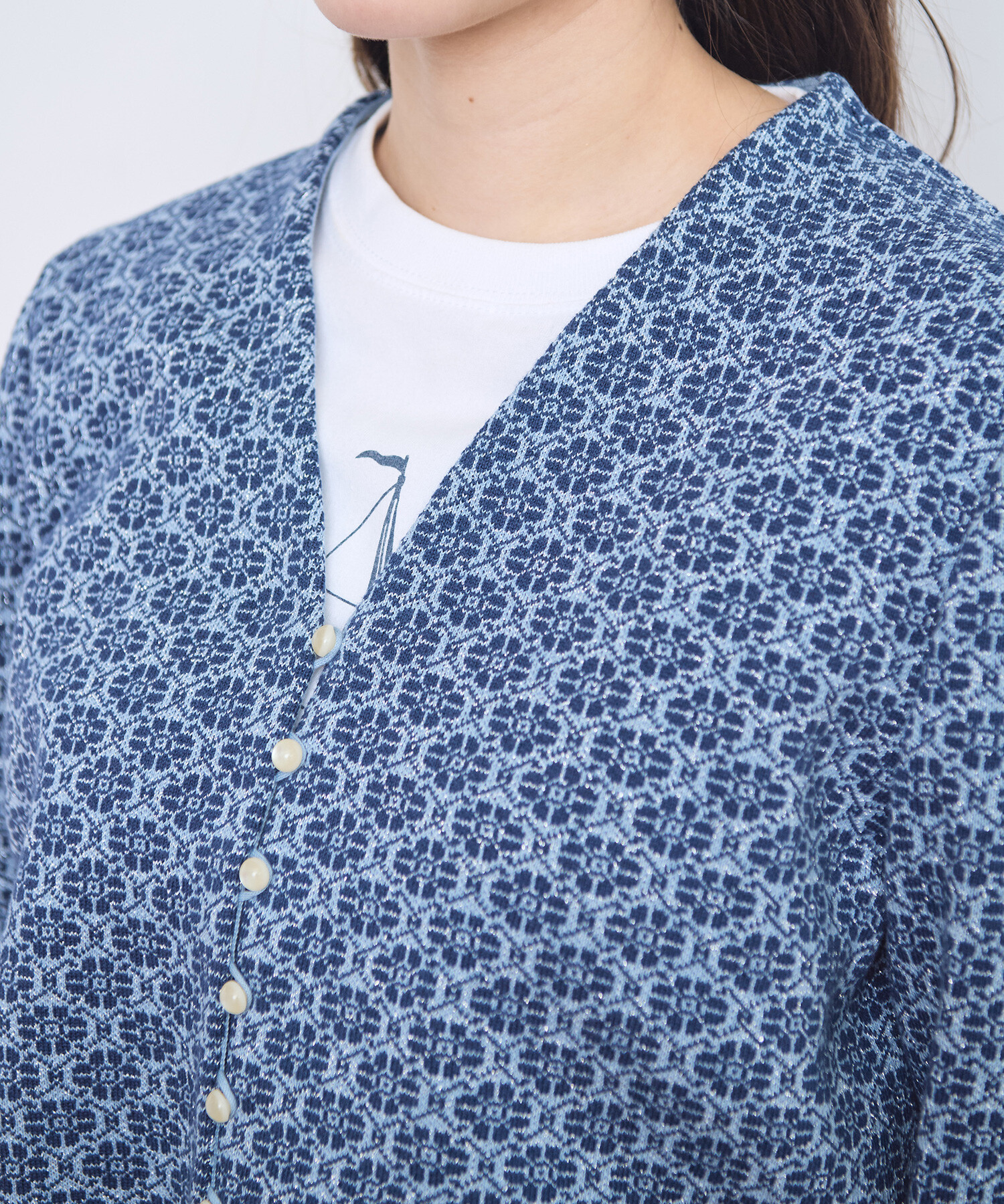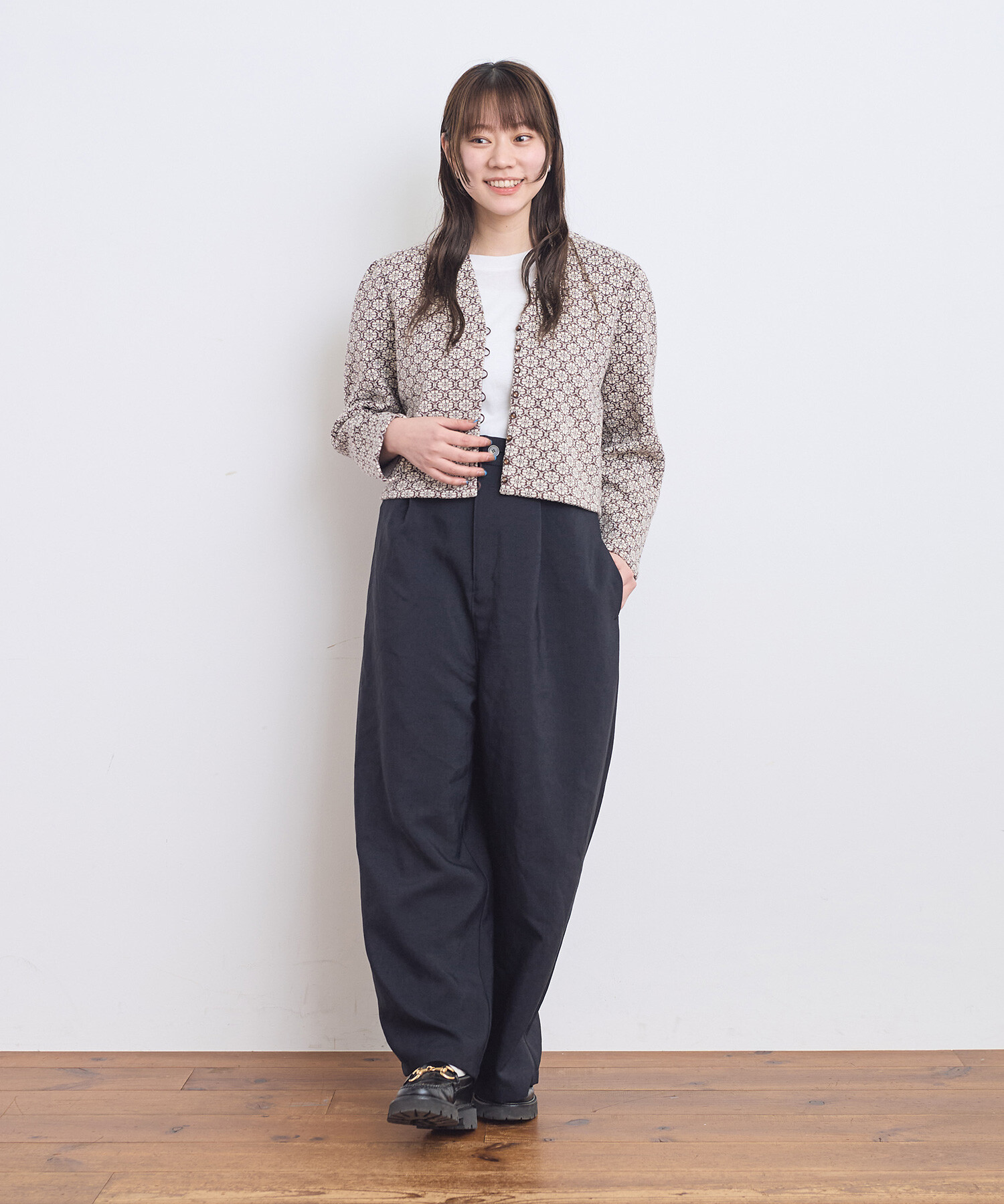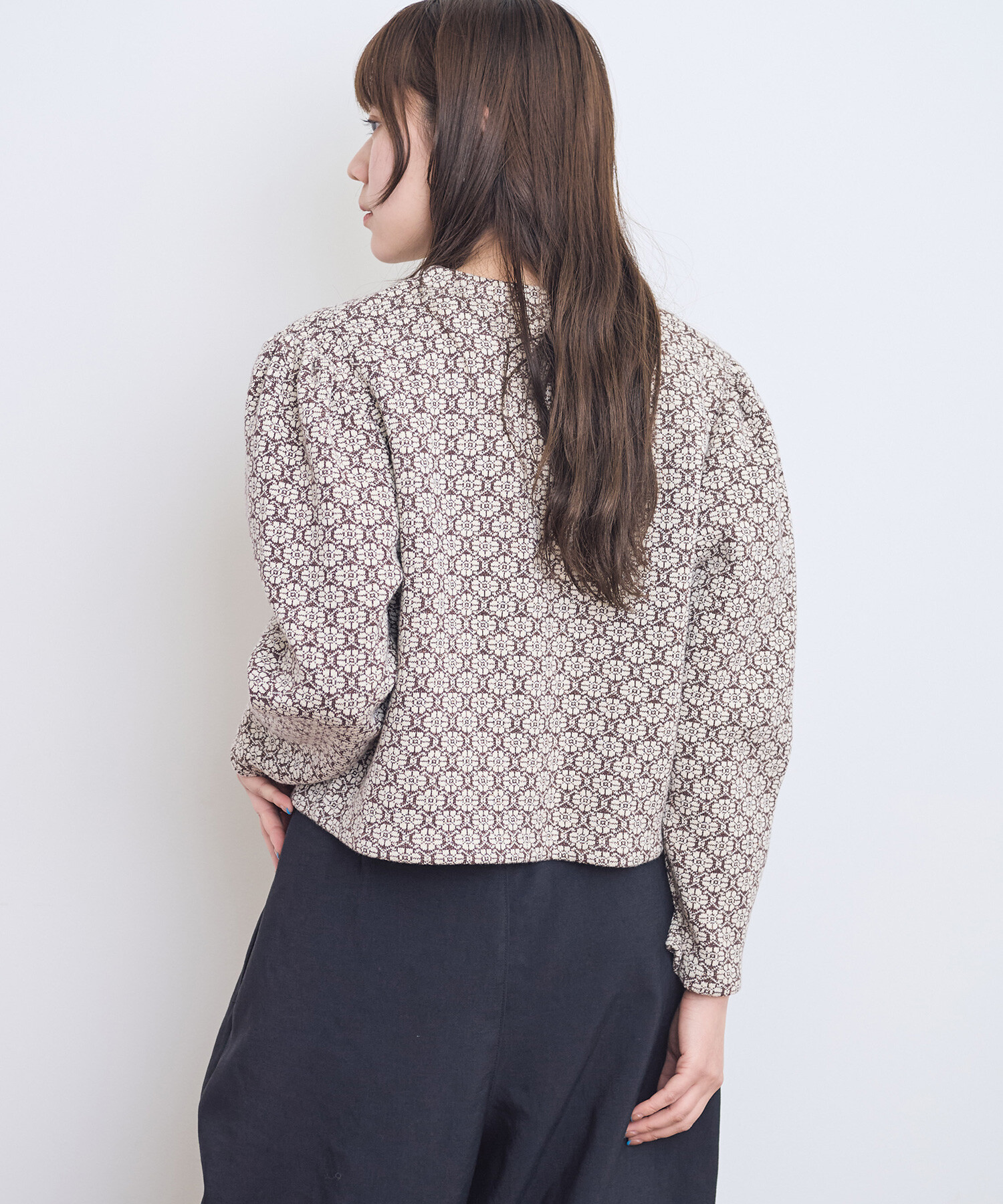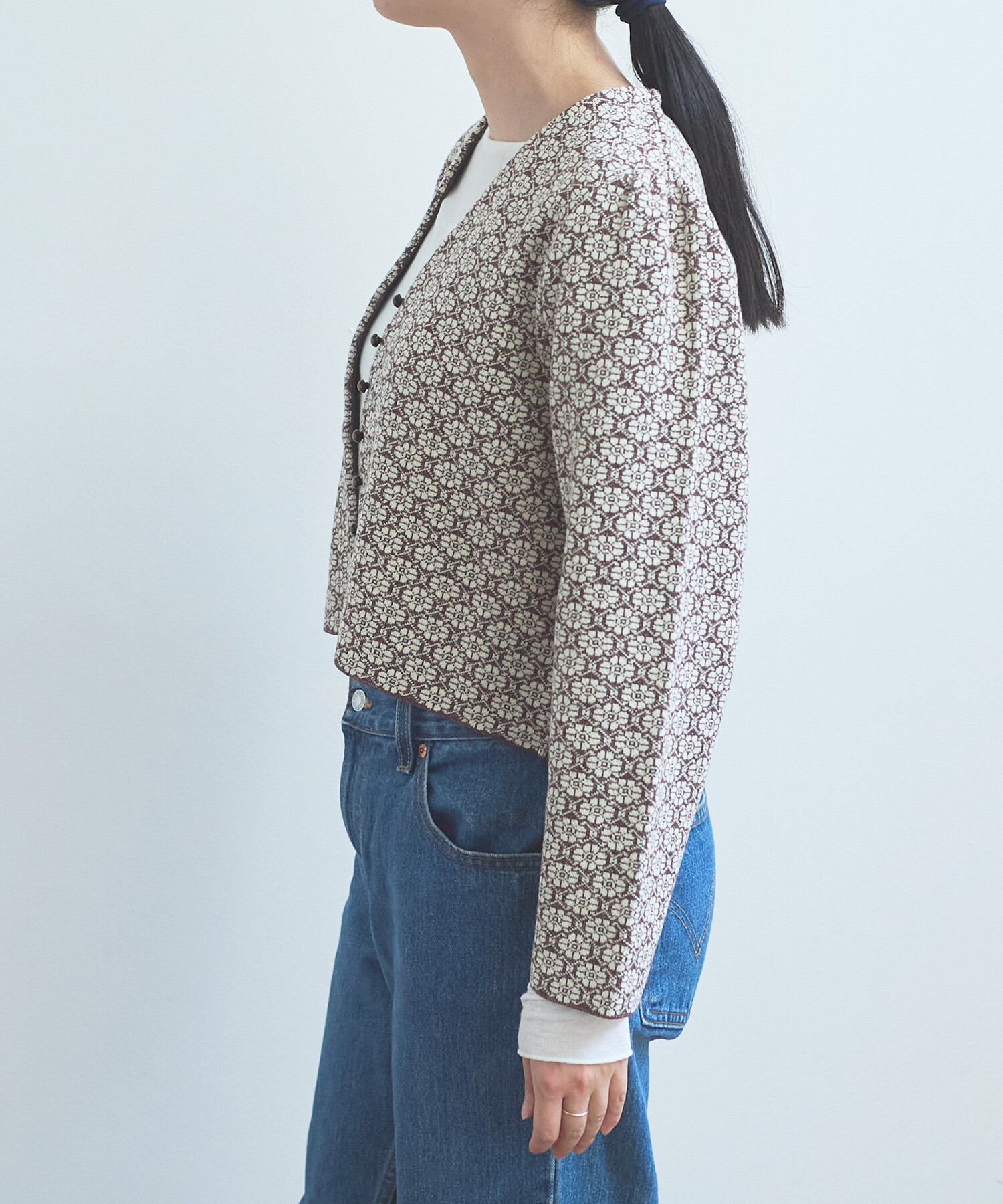 ●〇幾何学フラワージャカード ジャケットカーディガン