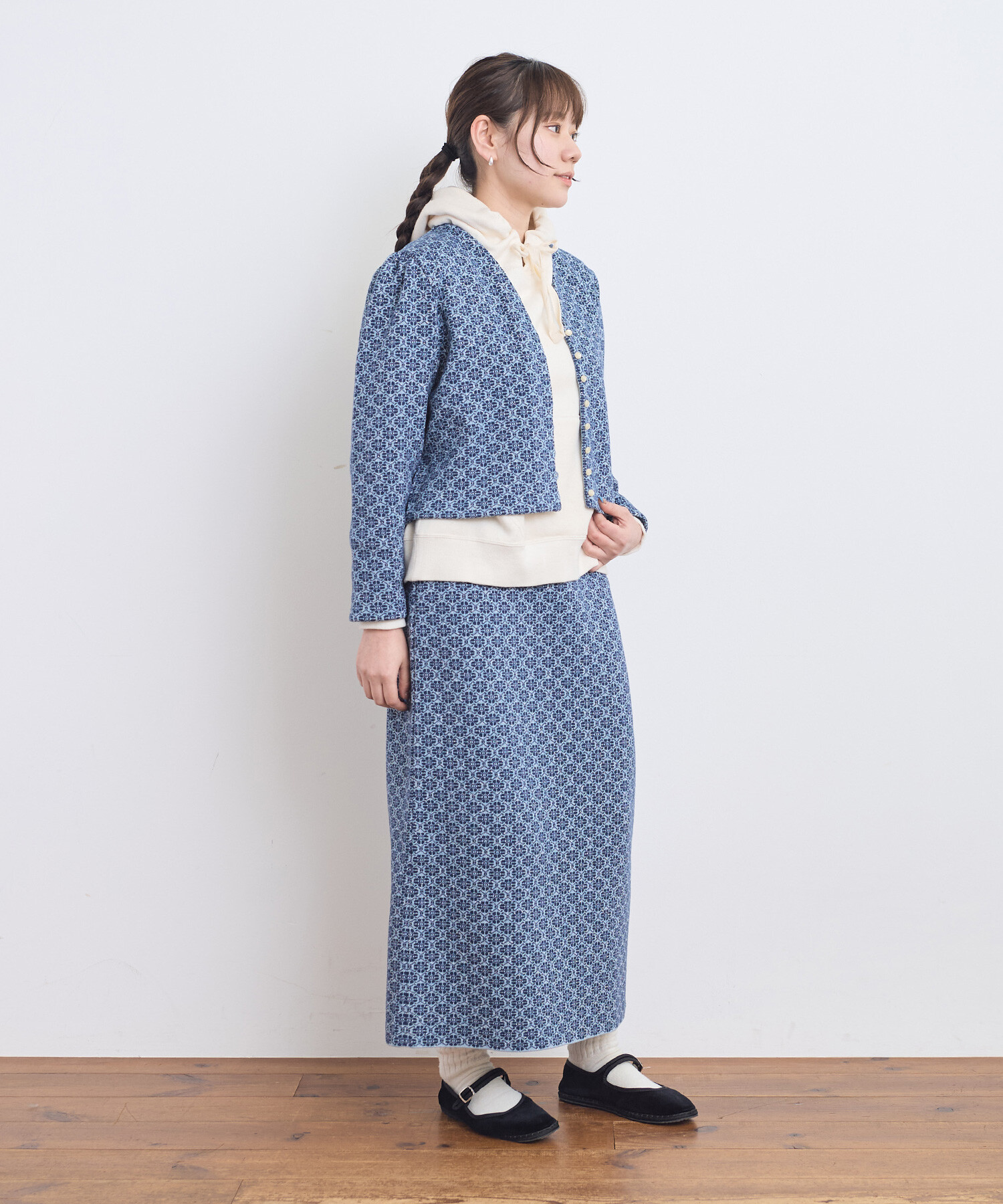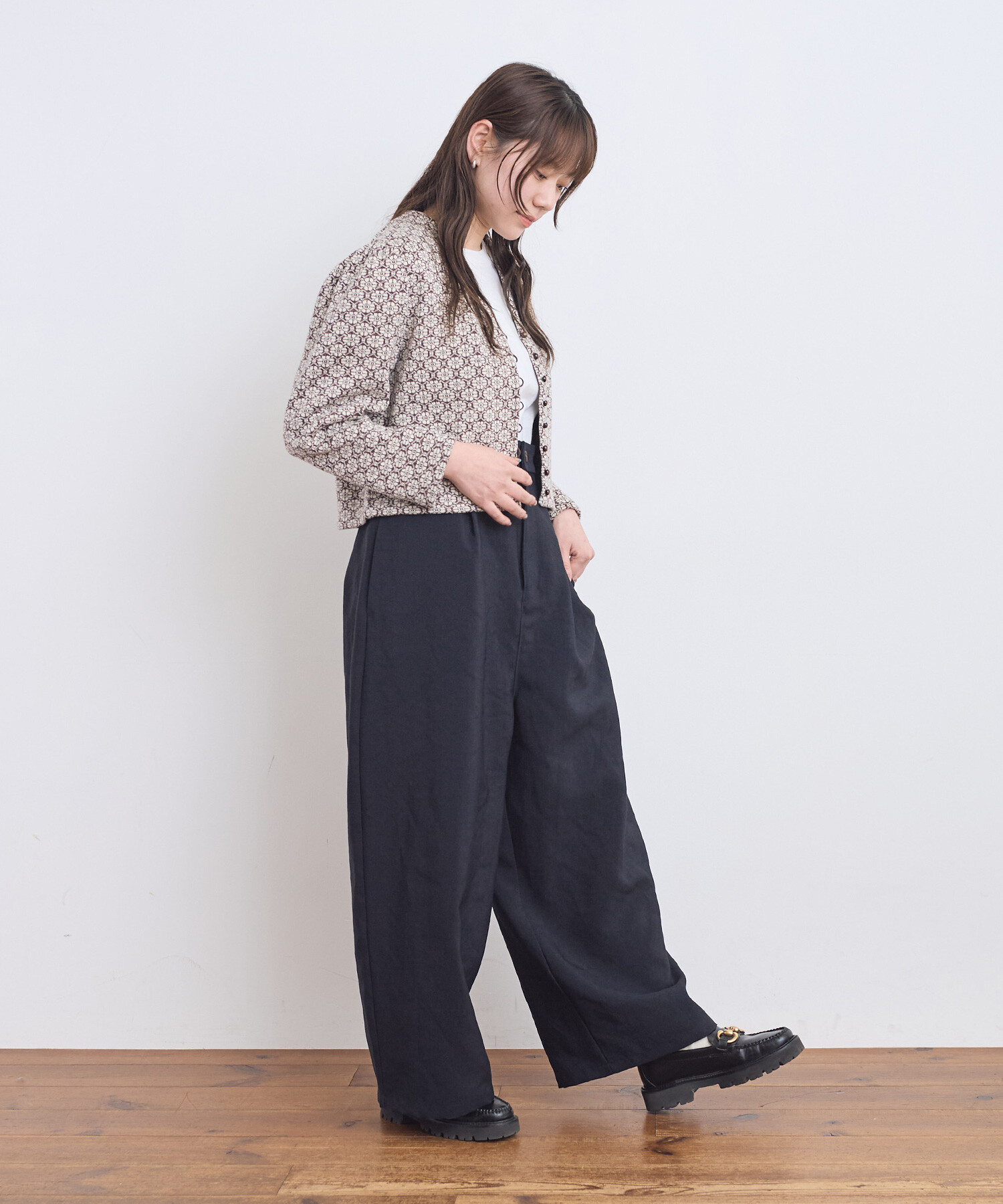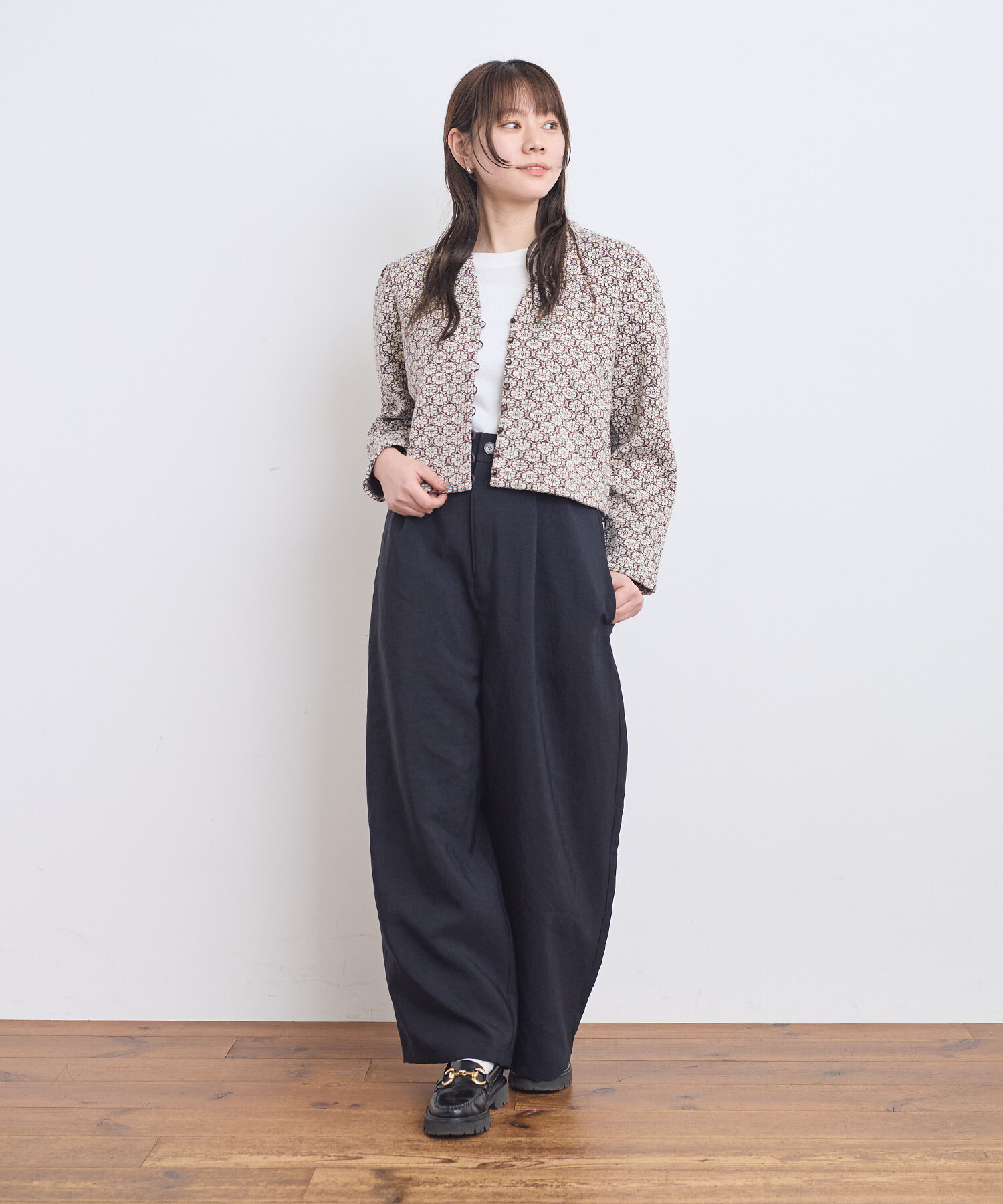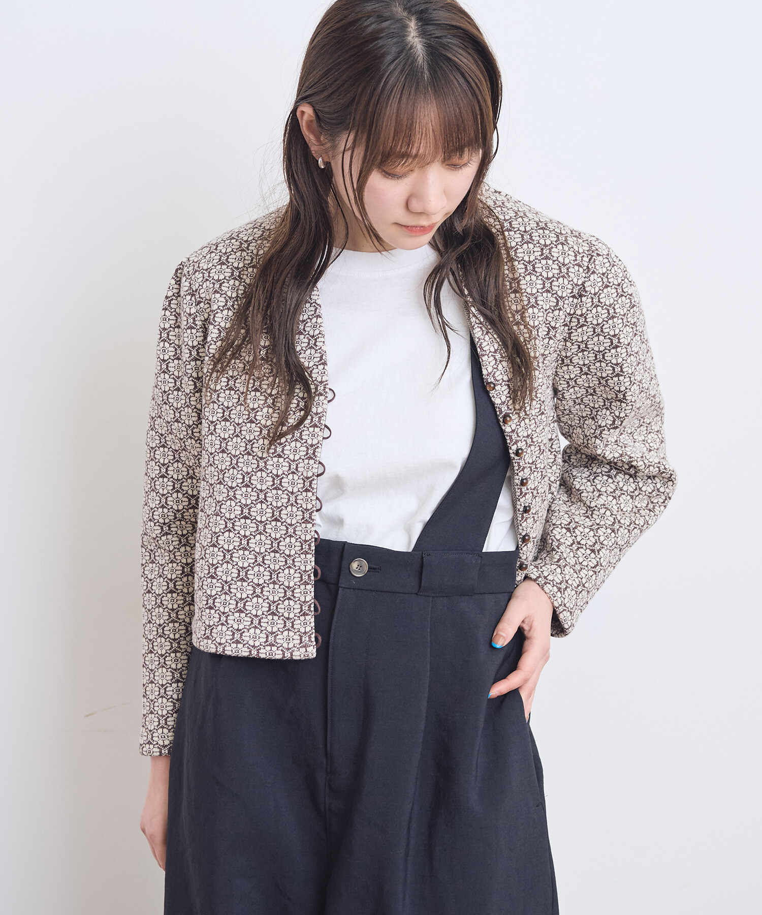 ●〇幾何学フラワージャカード ジャケットカーディガン