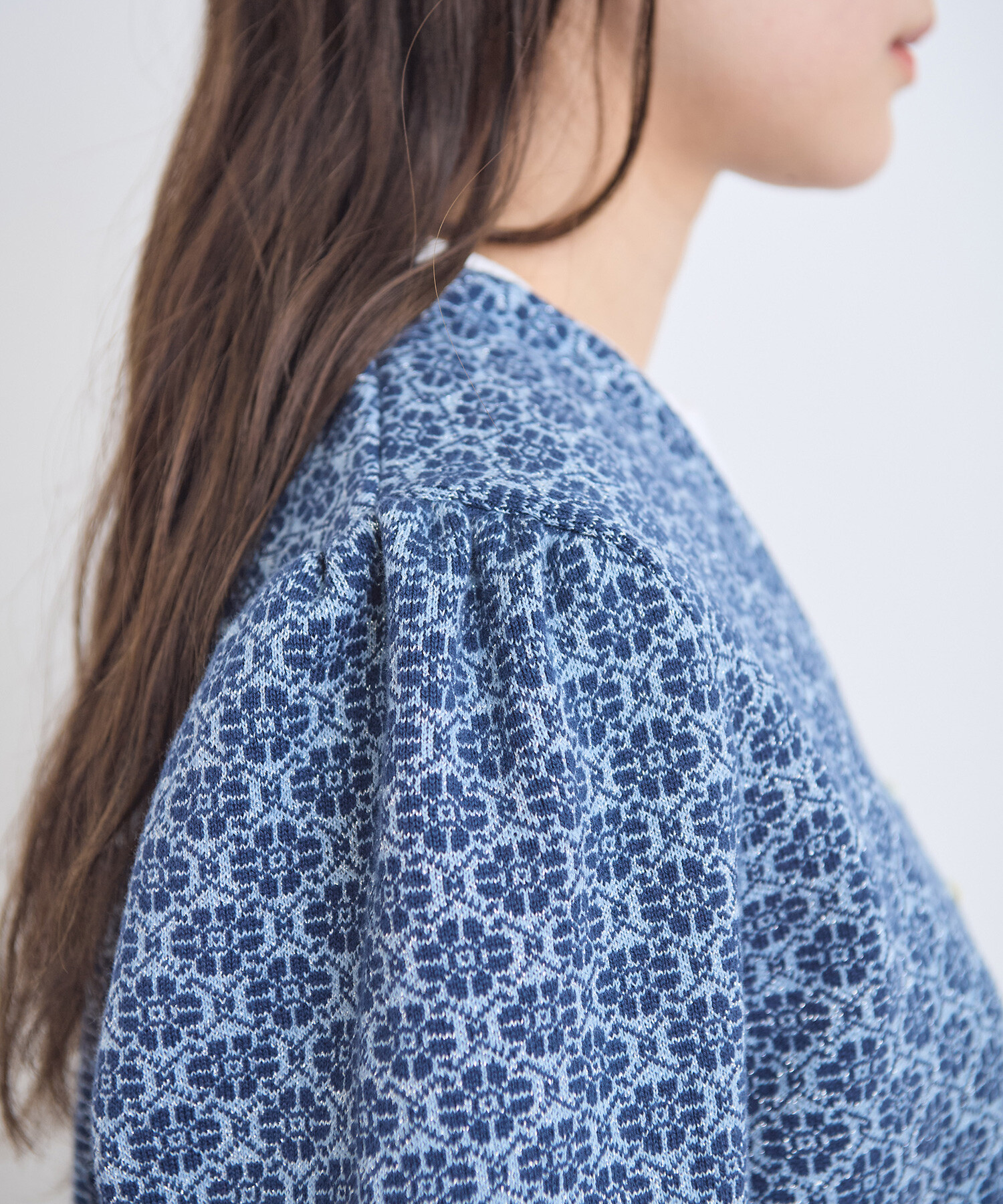 ベースにはラメ糸を引き揃え、さり気ない光沢感を表現しました。