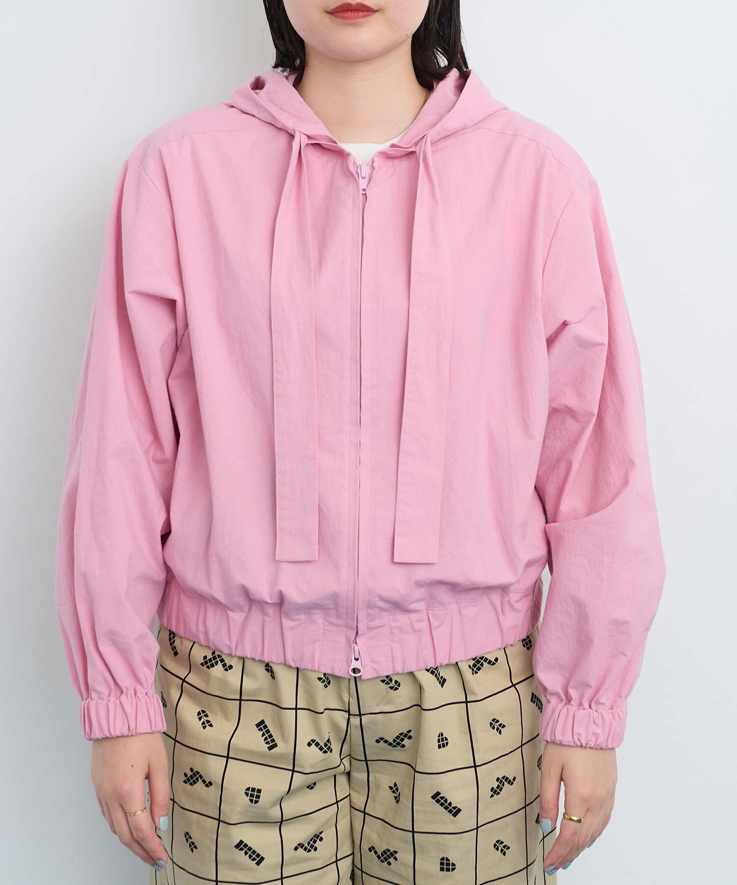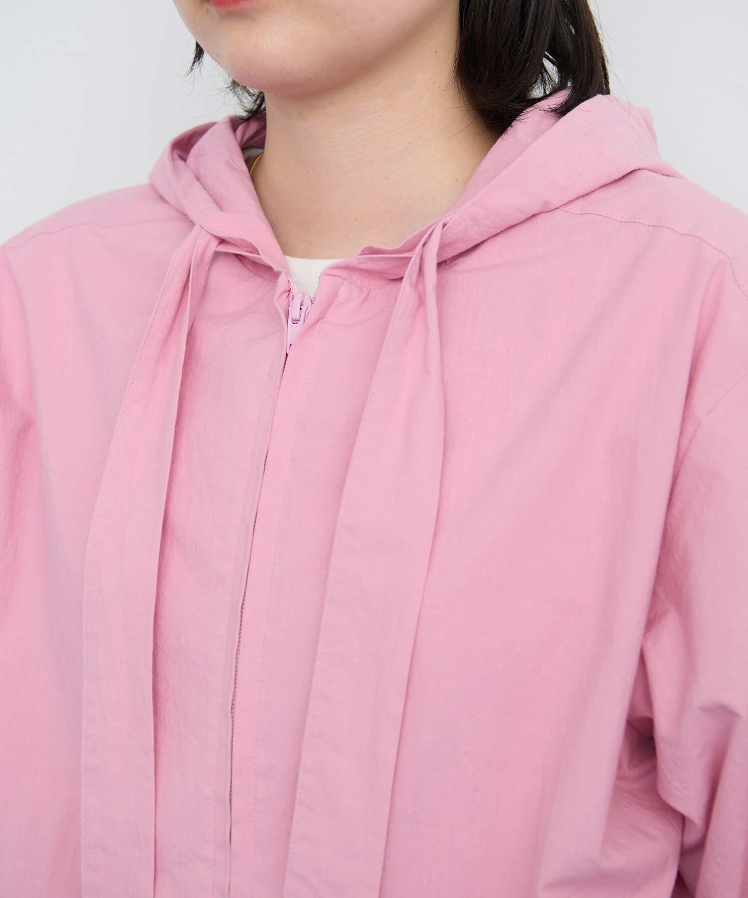 カジュアルなフードパーカーを布帛素材に落とし込みました。