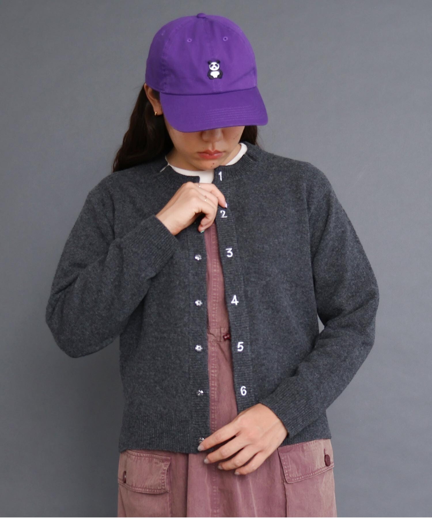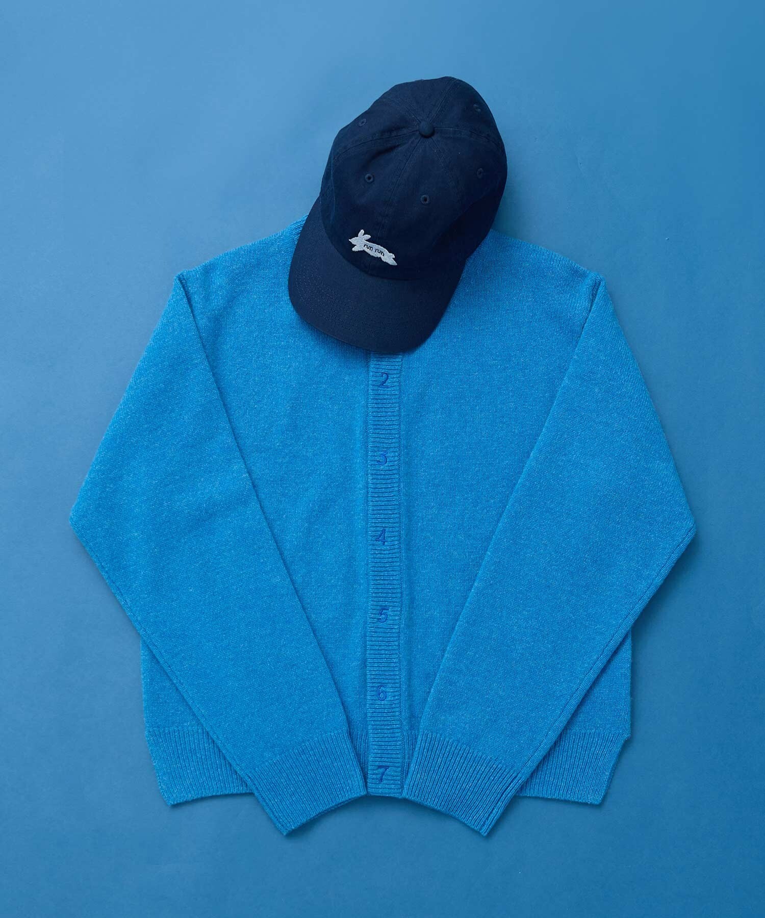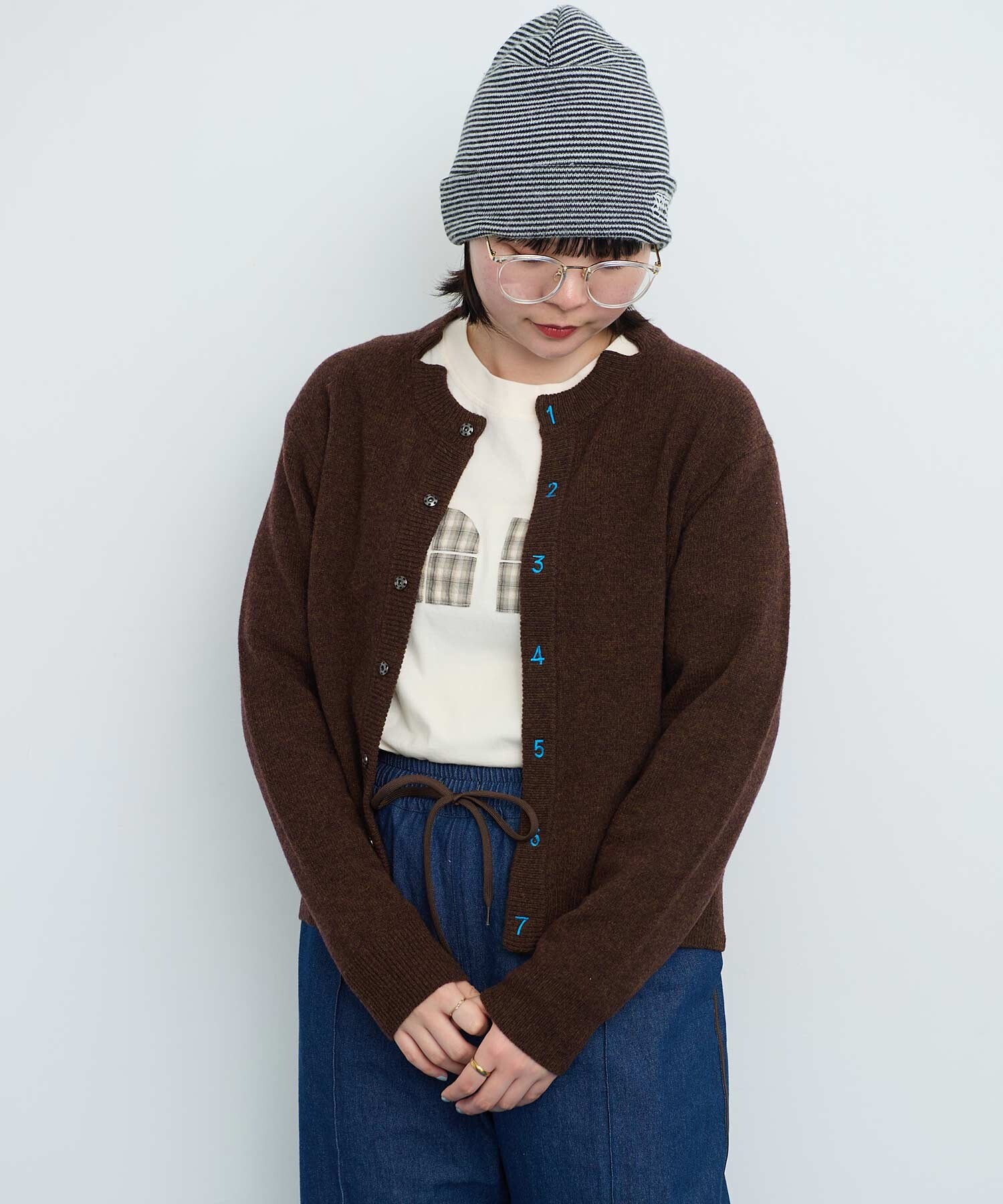 IAMI 定番の数字刺繍カーディガン。