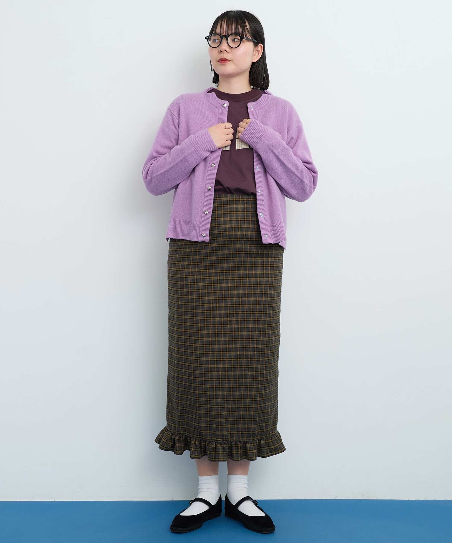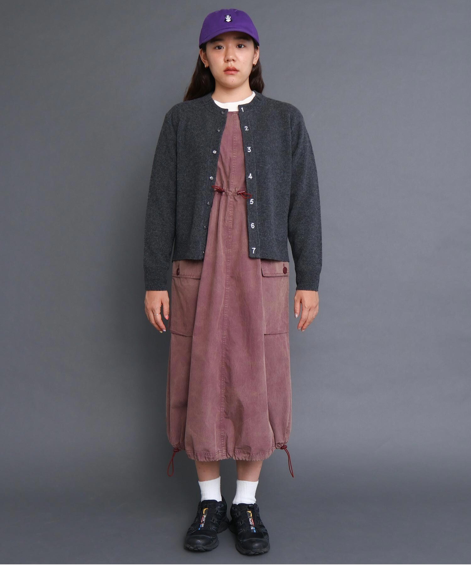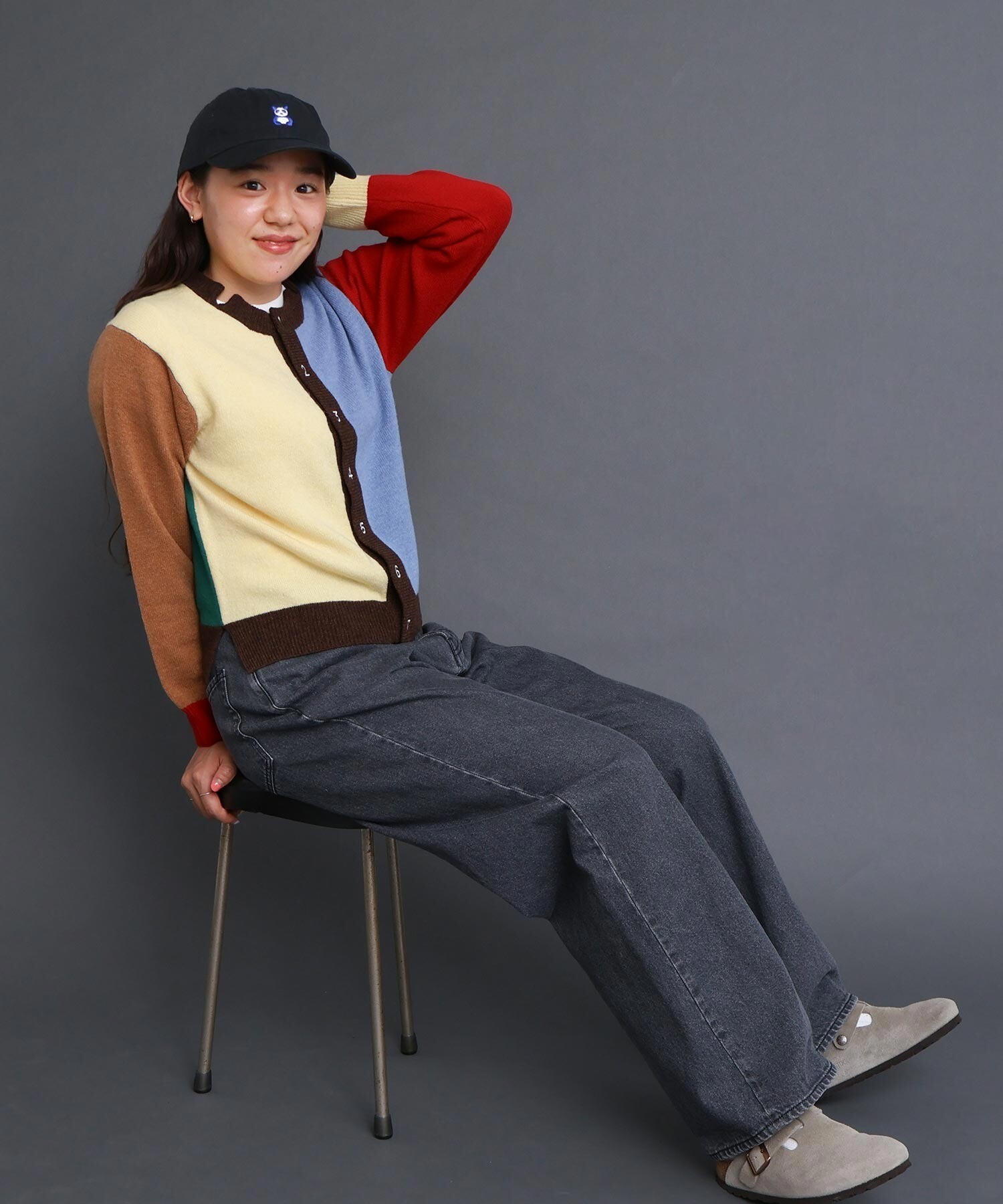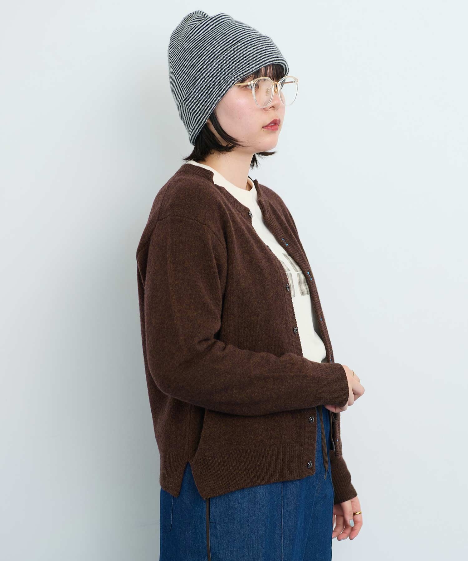 IAMI 定番の数字刺繍カーディガン。