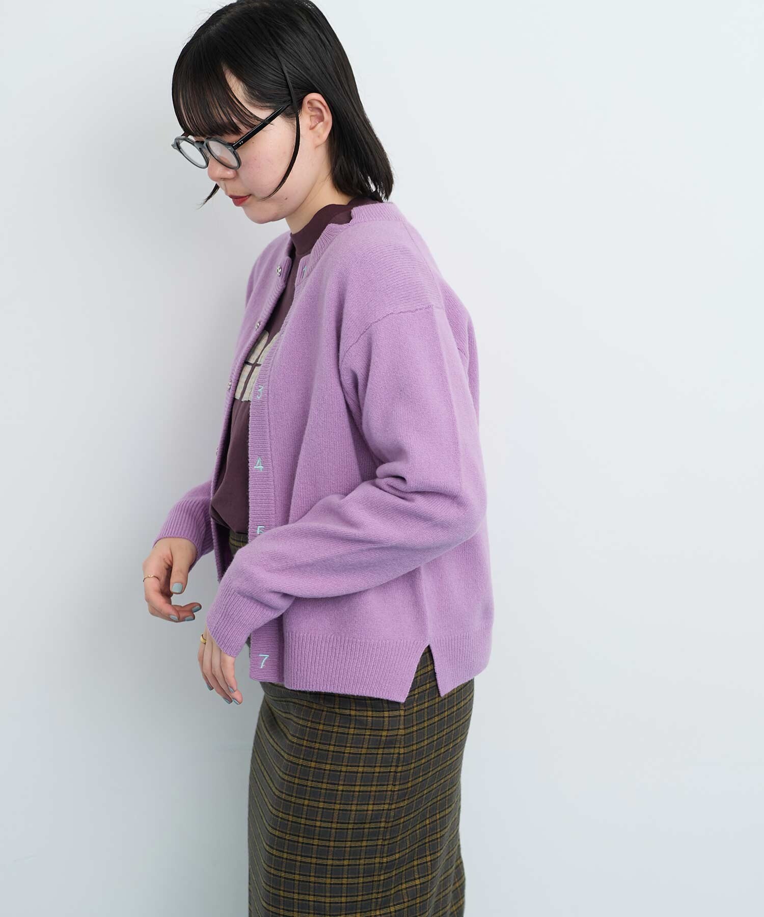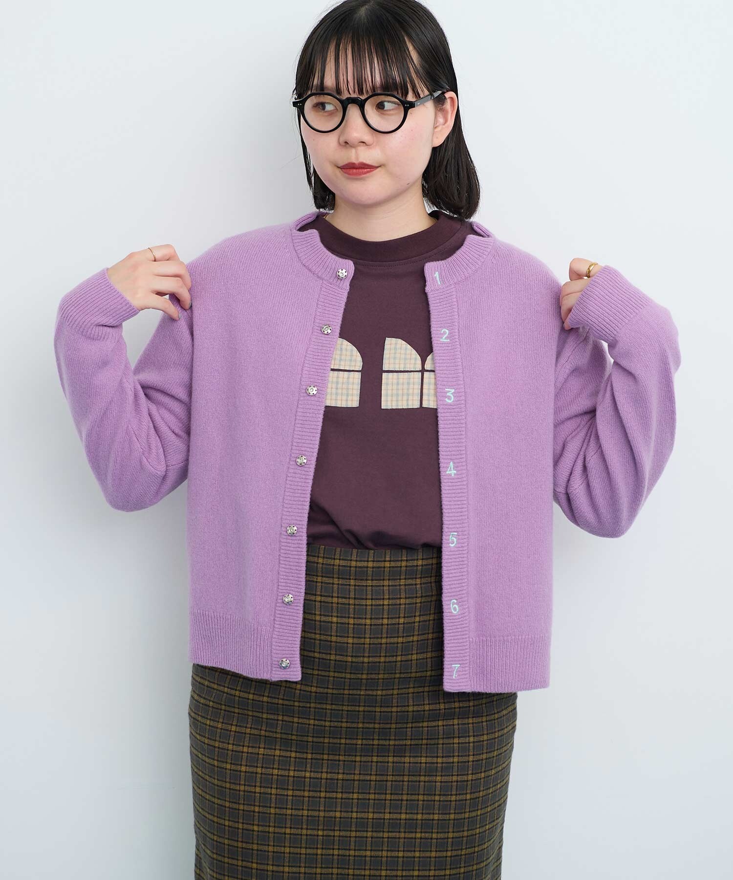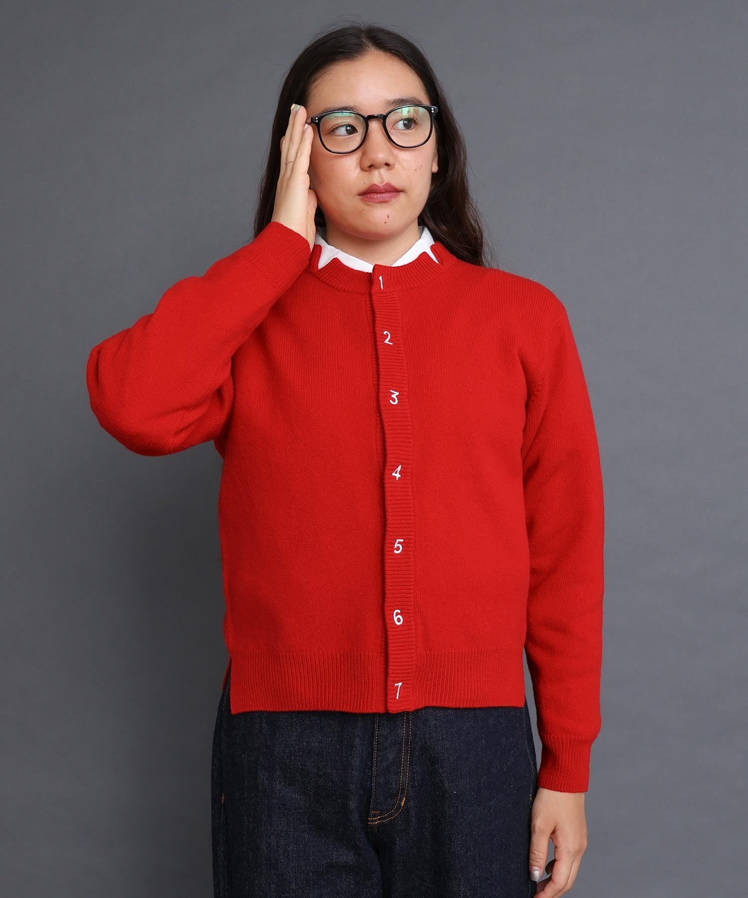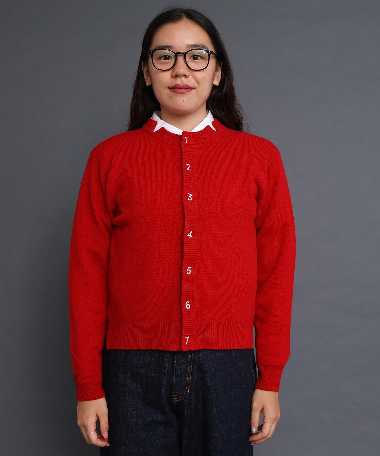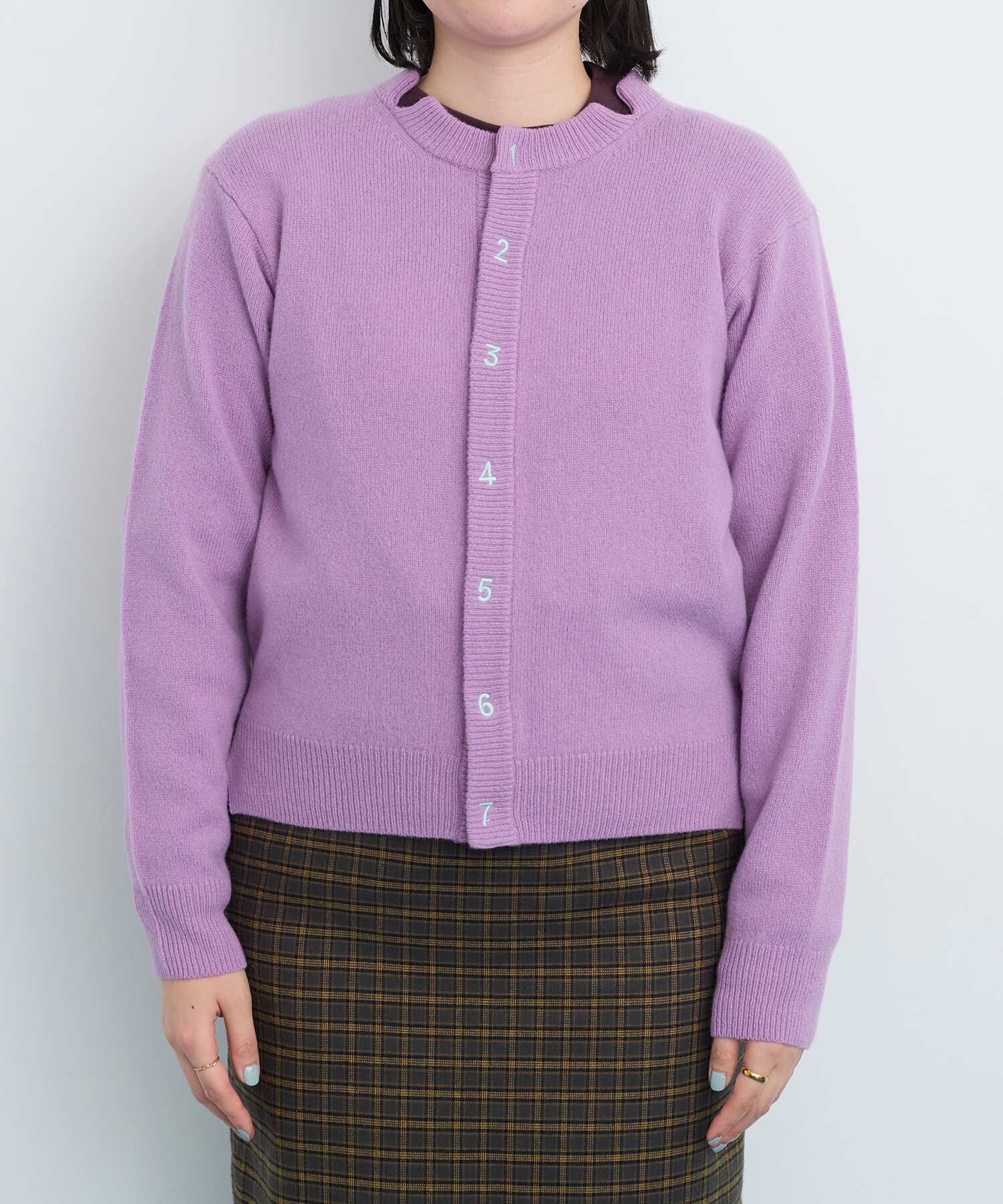 〇UPW数字刺繍クルーカーディガン