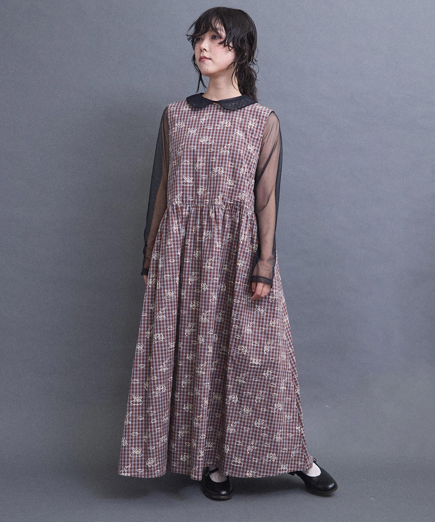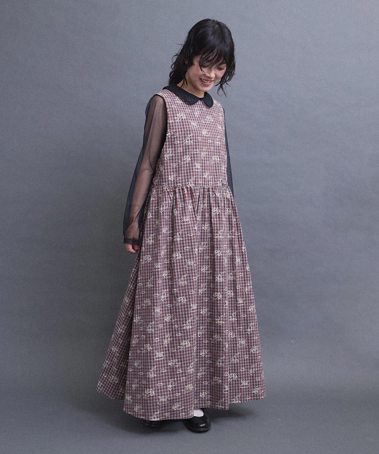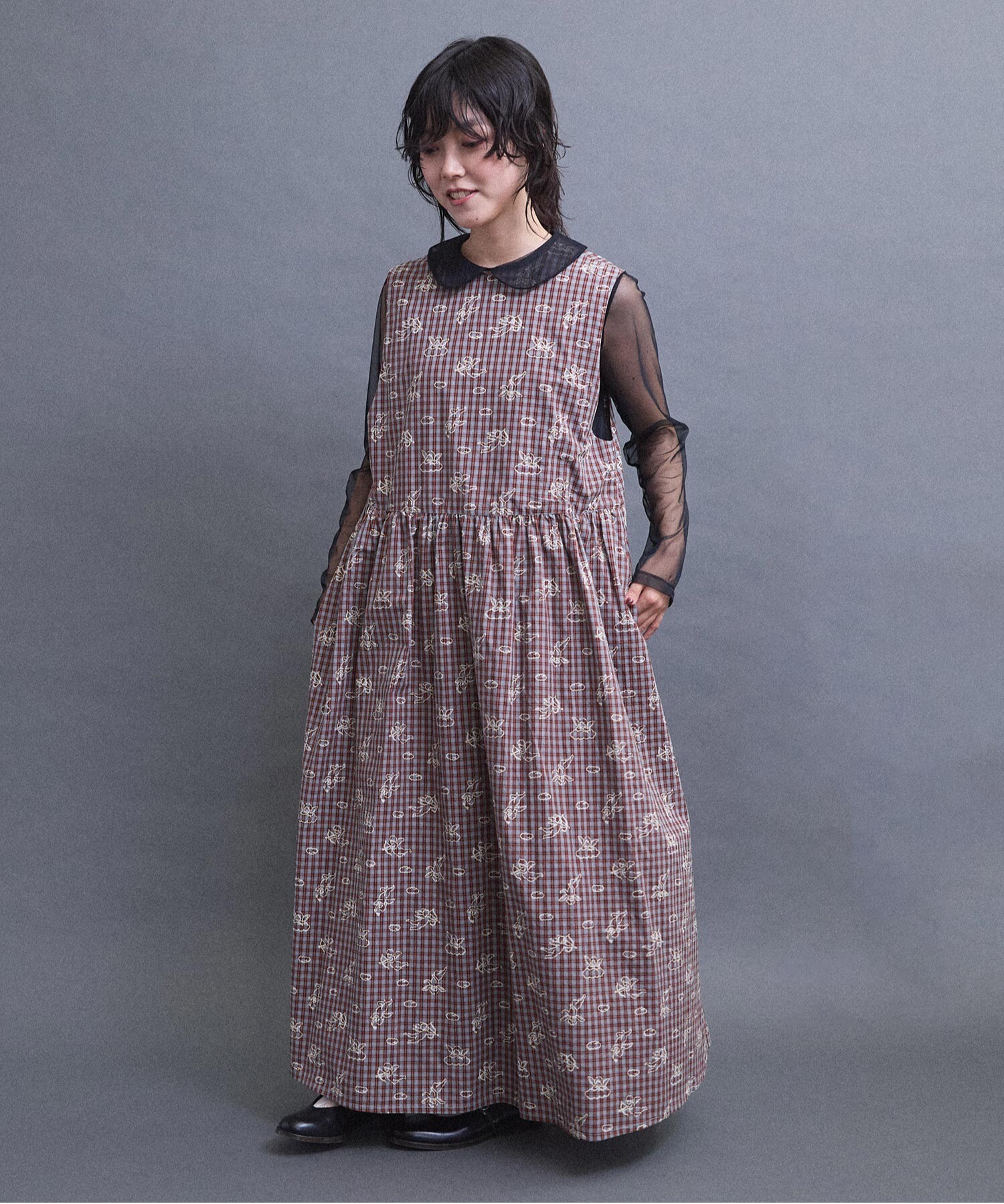 柄を活かしたシンプルな形のワンピース。