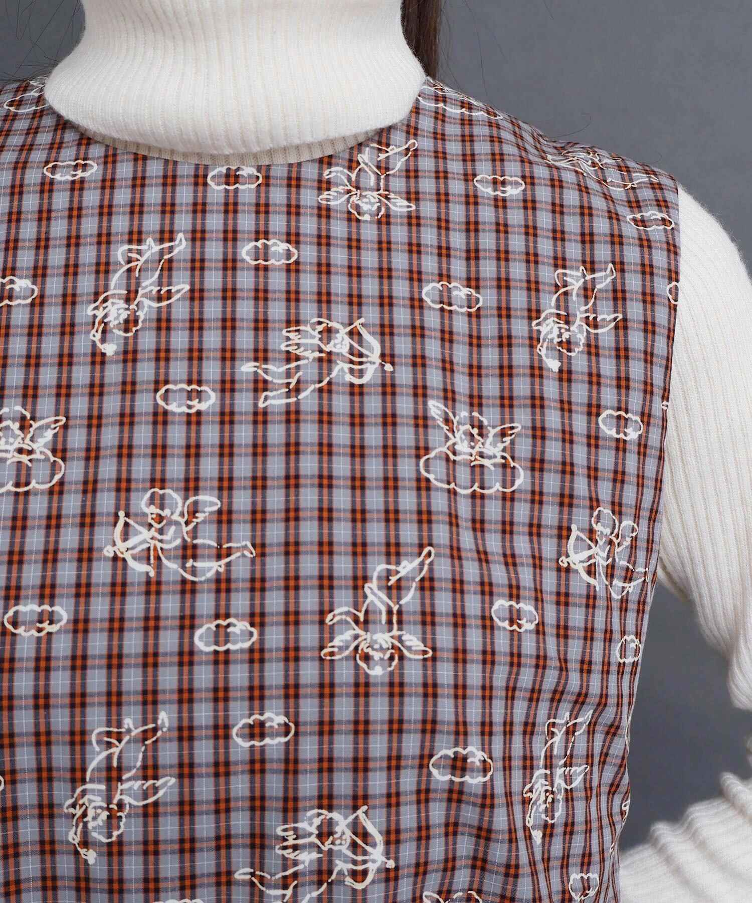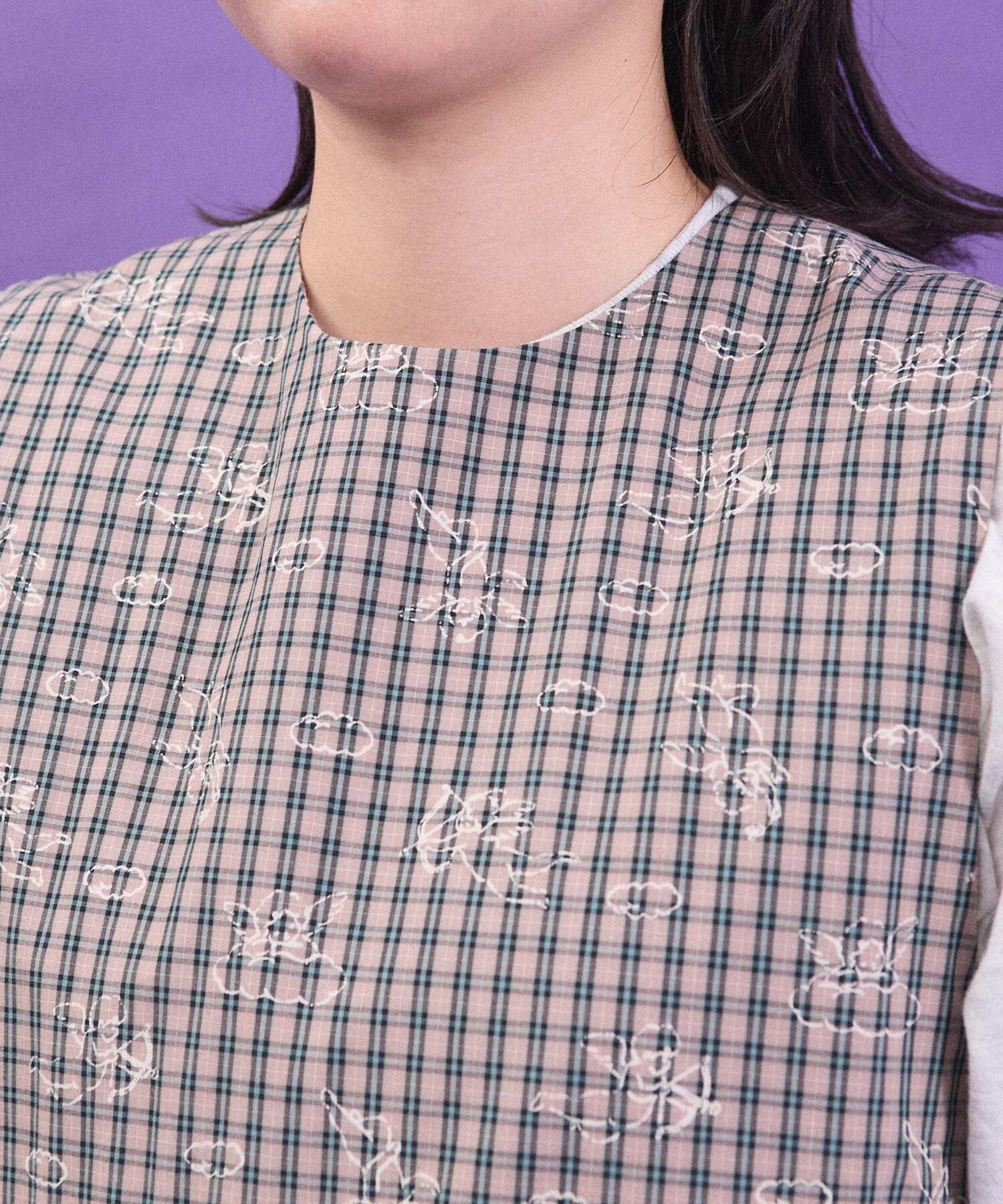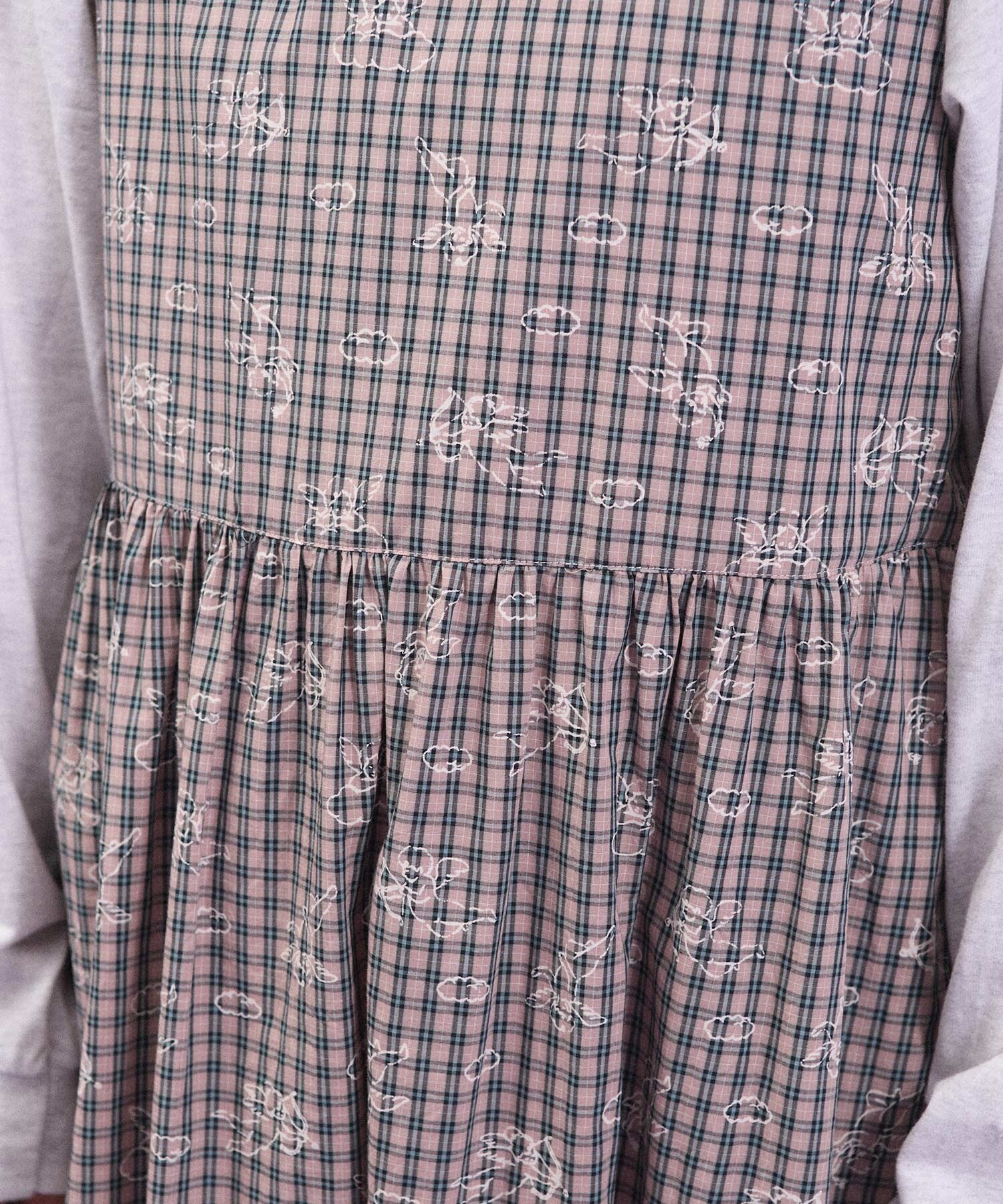 チェックの生地にプリントしました。