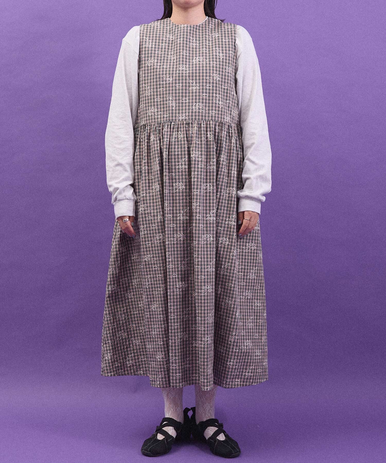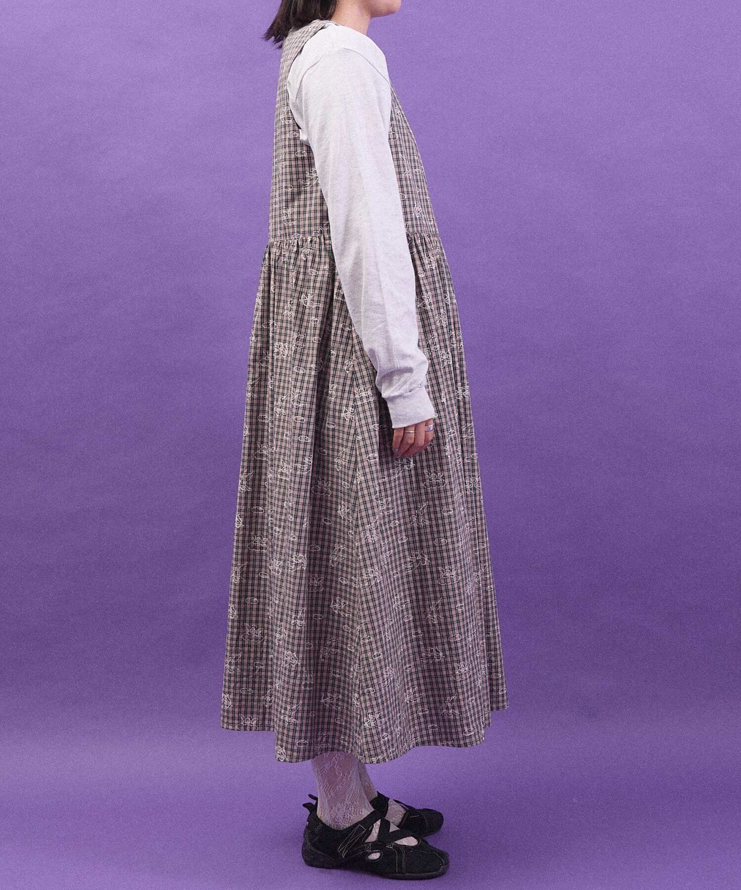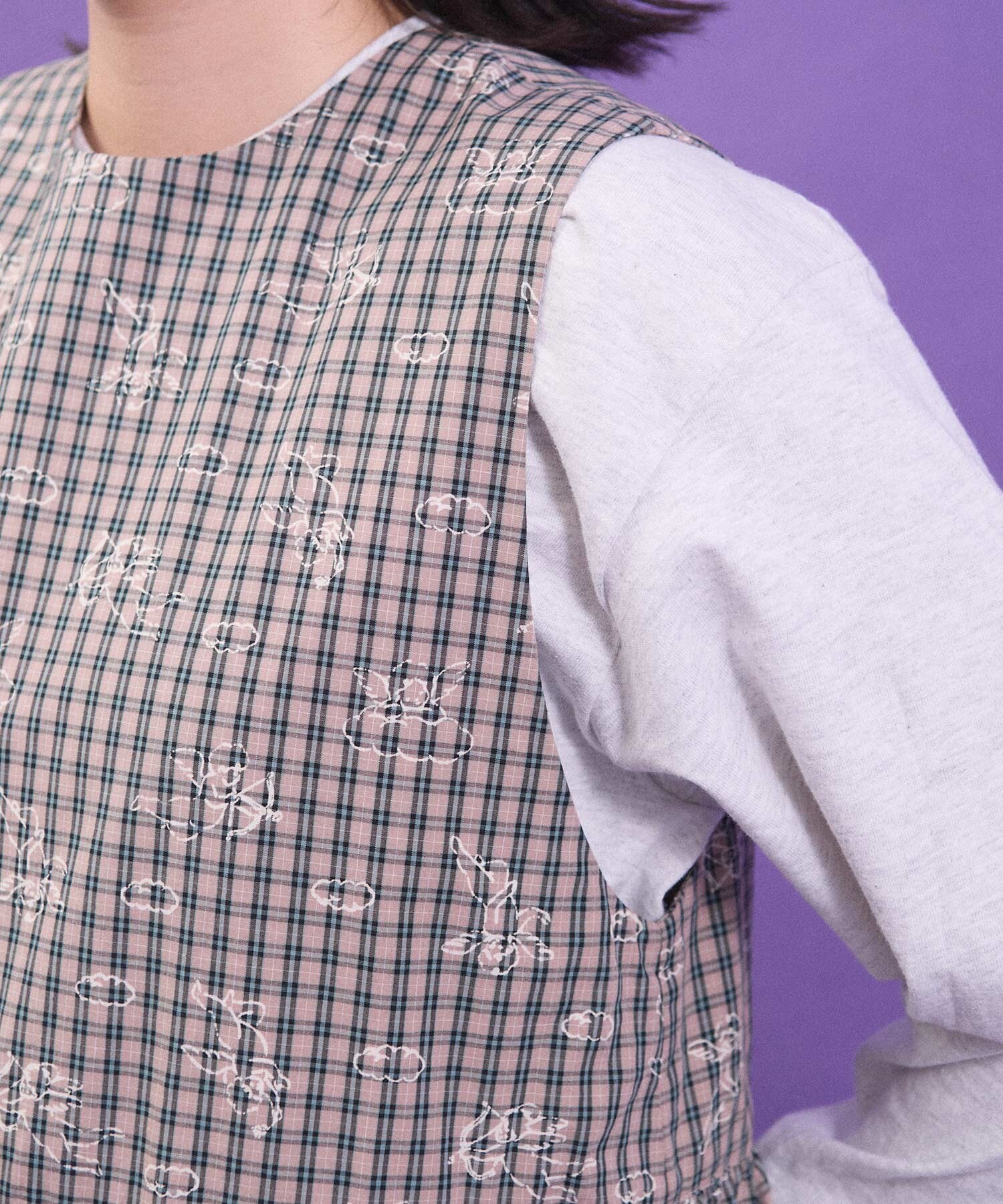 チェックの生地にプリントしました。